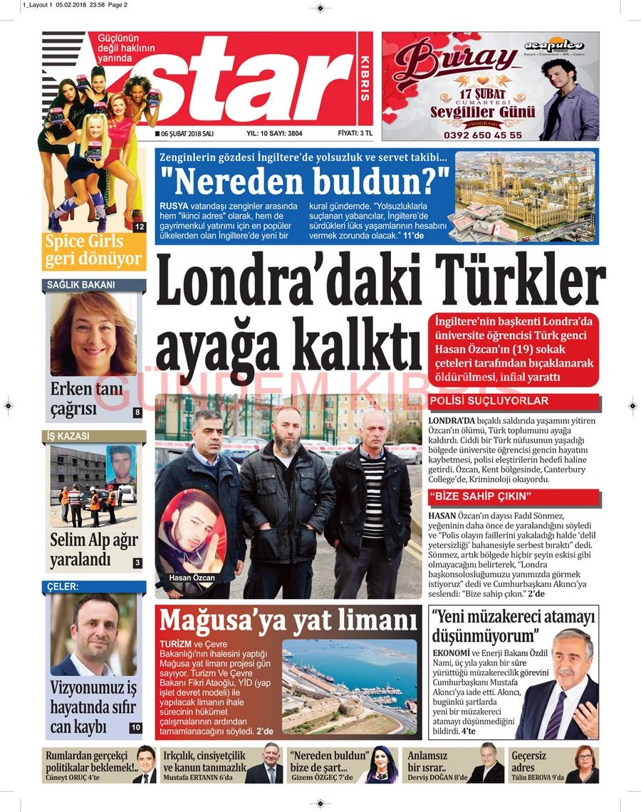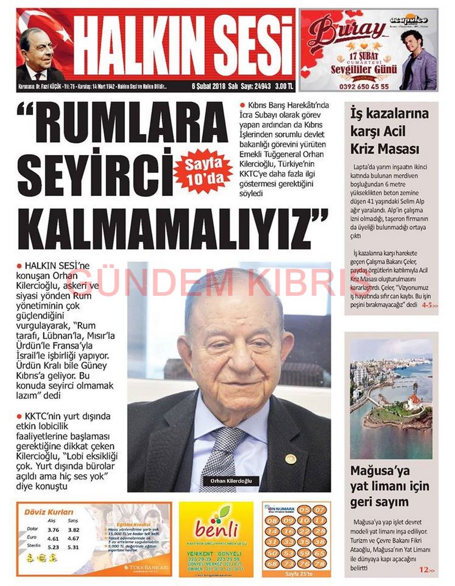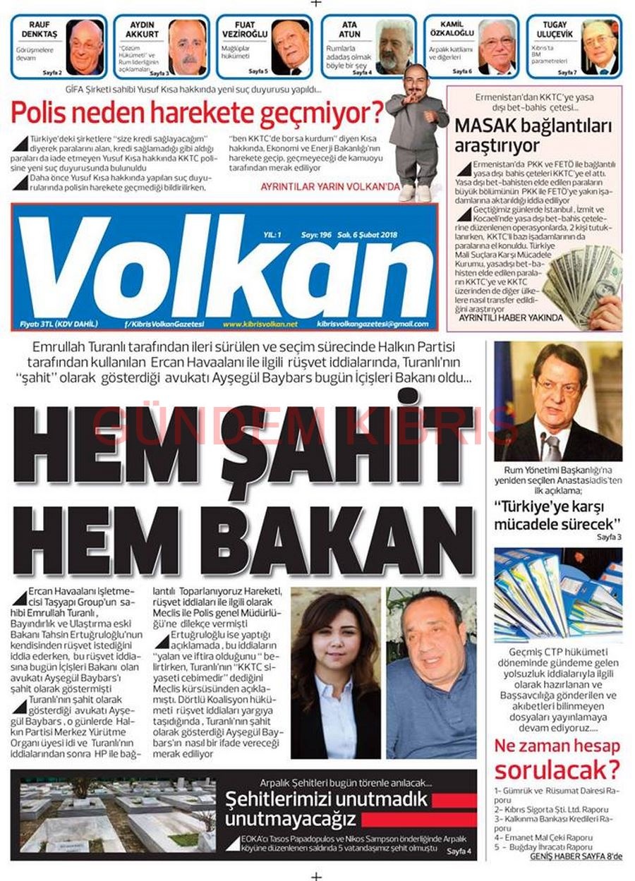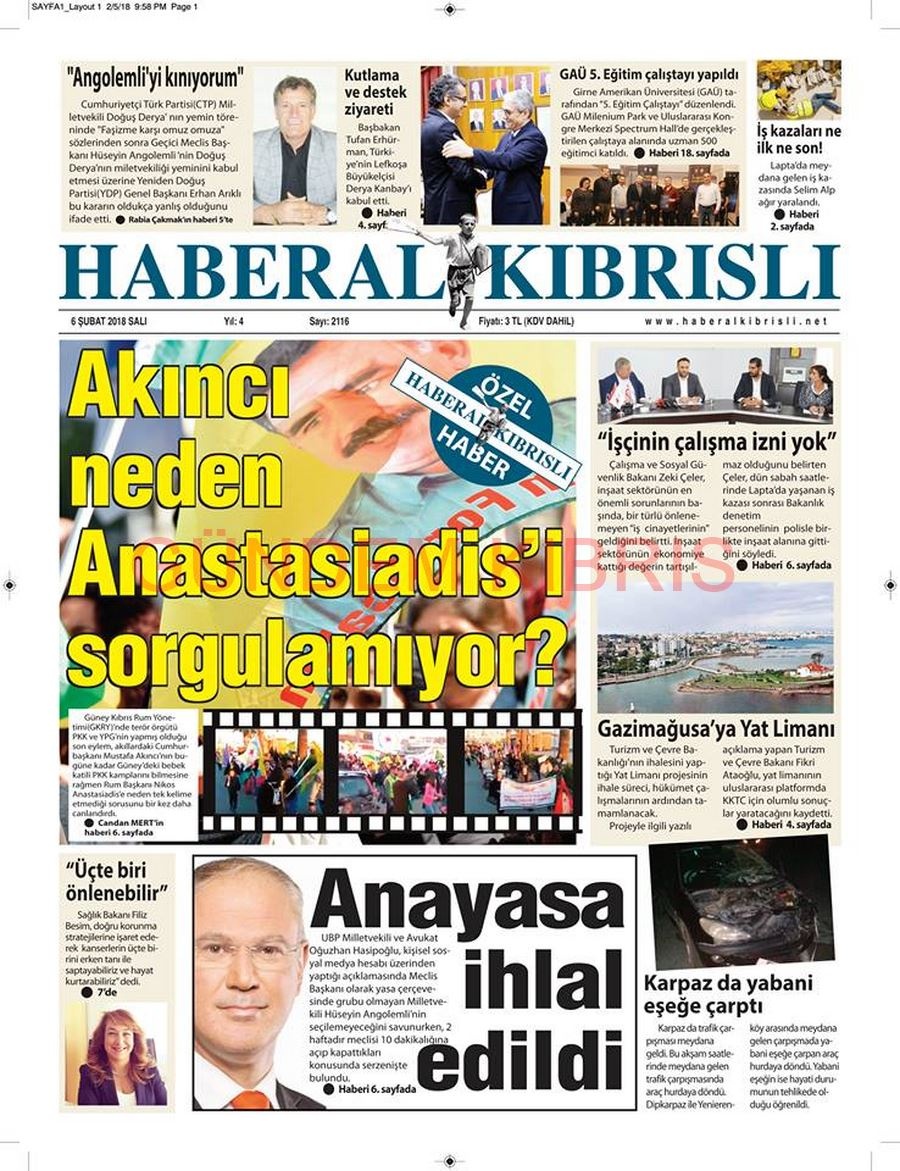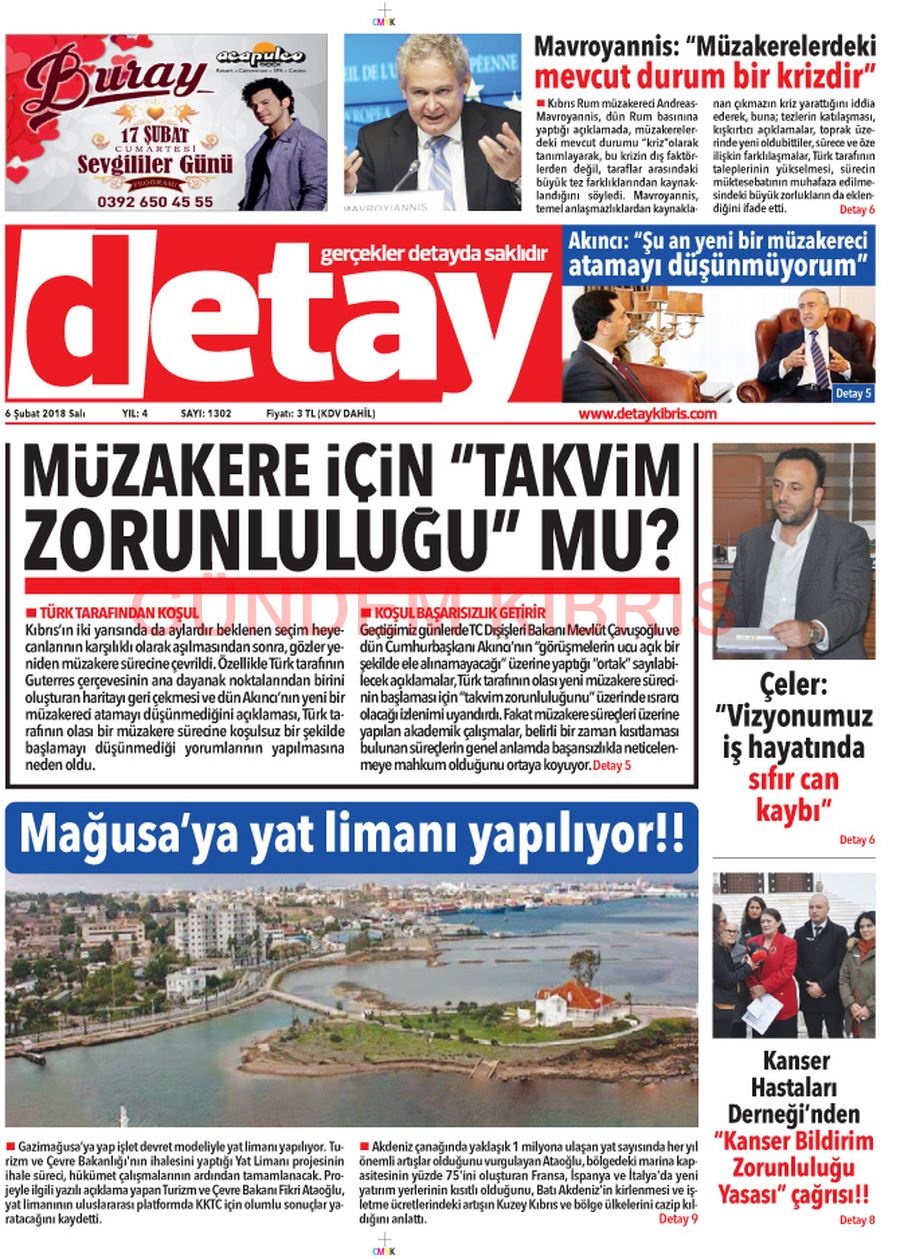 KKTC Gazete Manşetleri 6 Şubat 2018