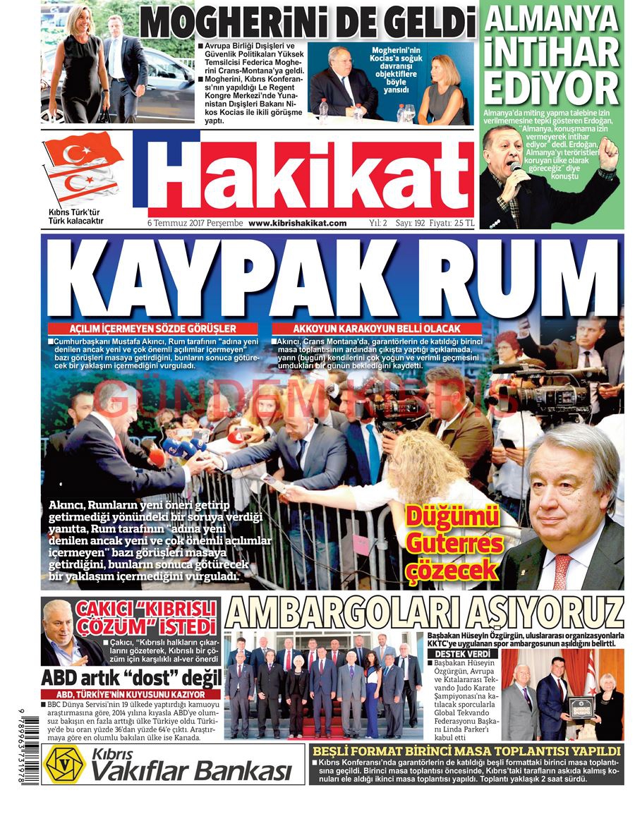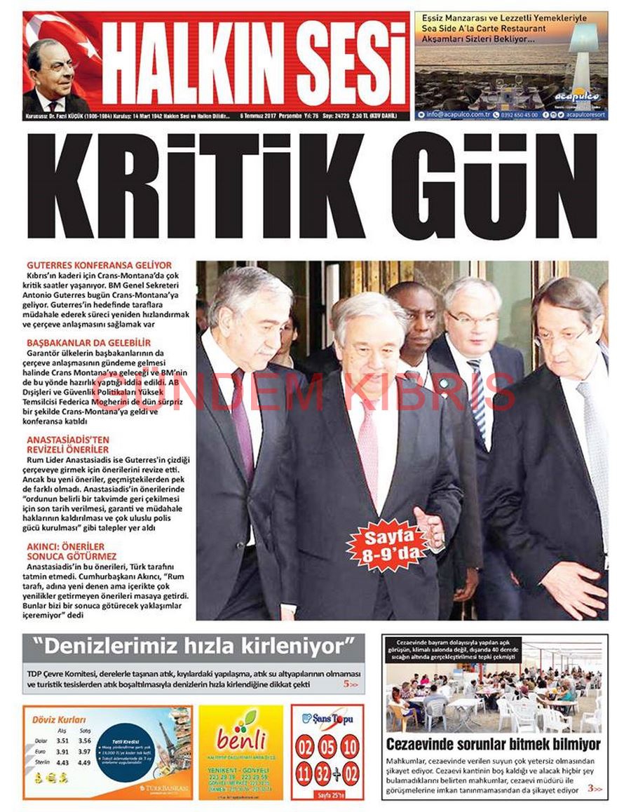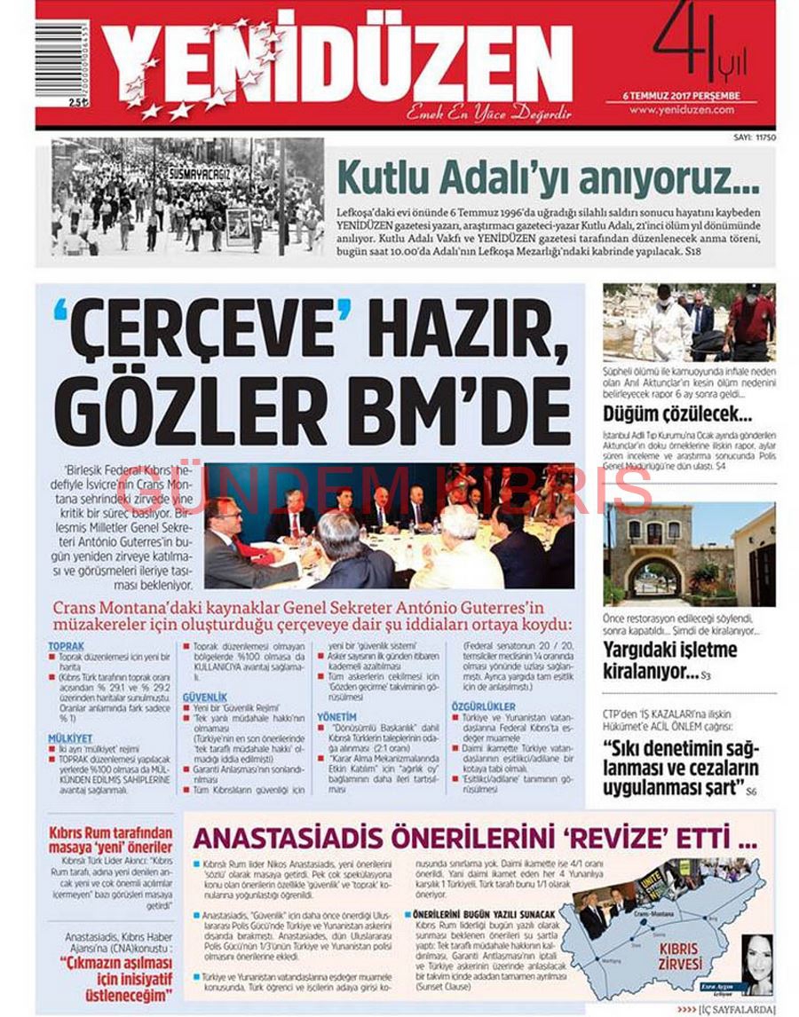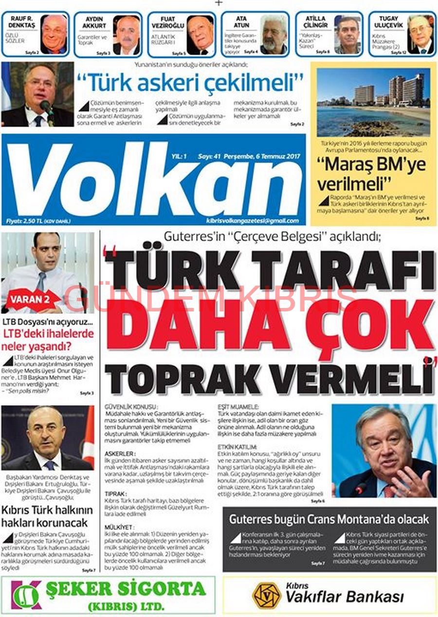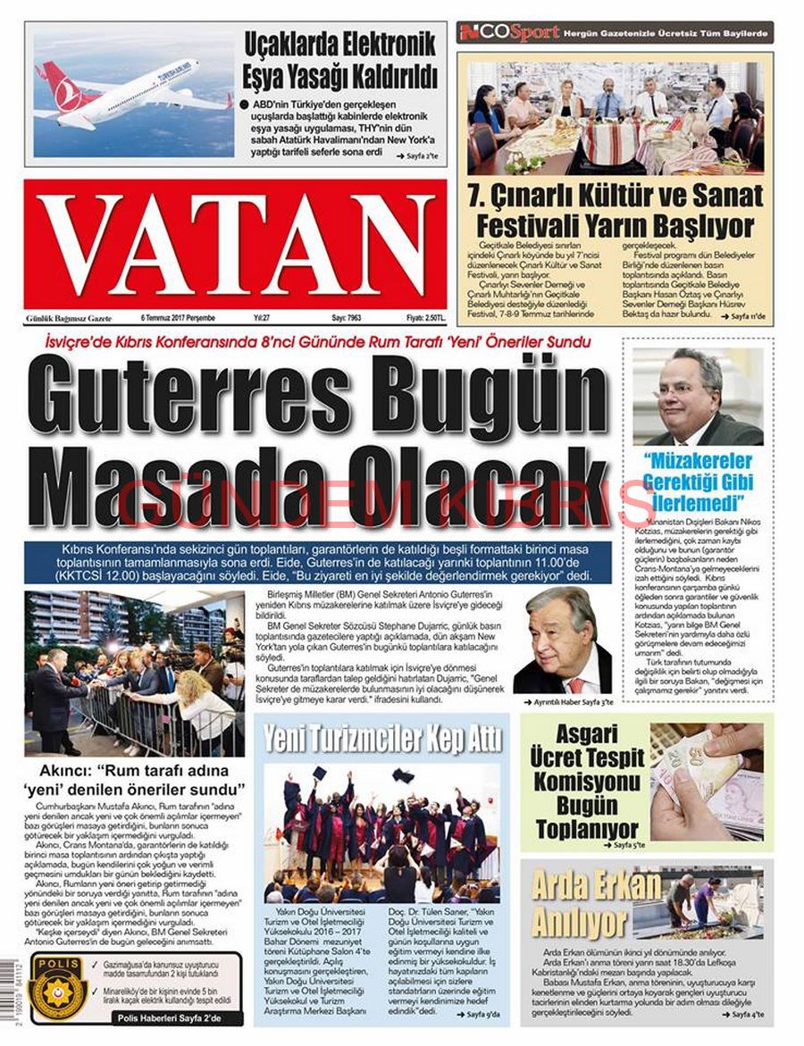 KKTC Gazete Manşetleri 6 Temmuz 2017