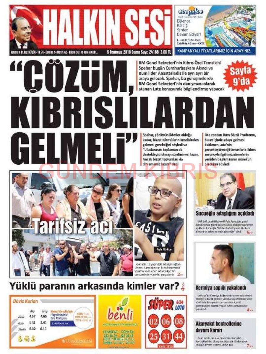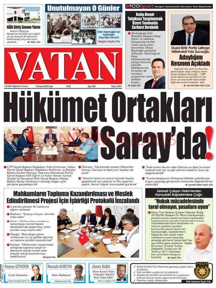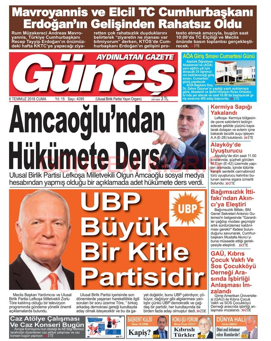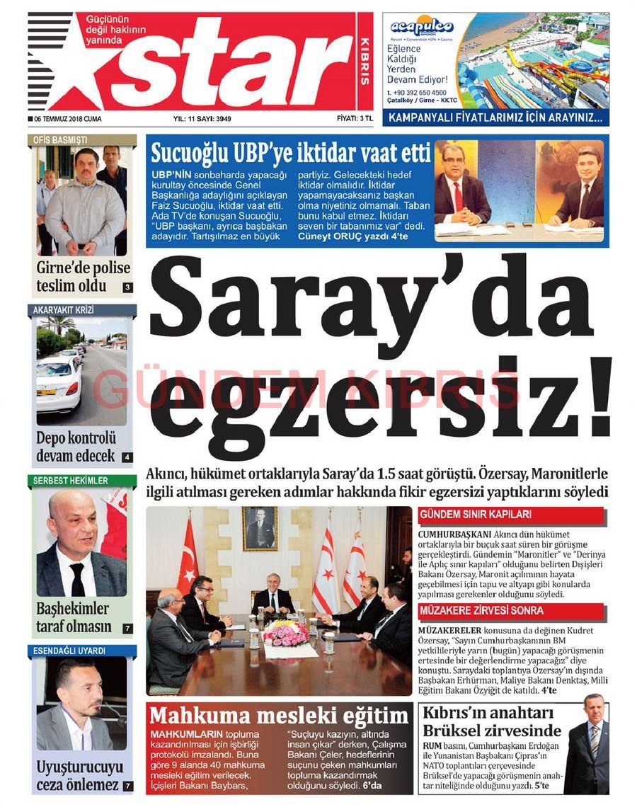KKTC Gazete Manşetleri 6 Temmuz 2018