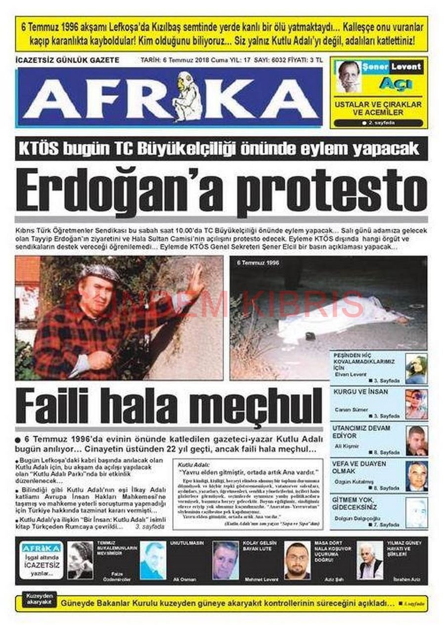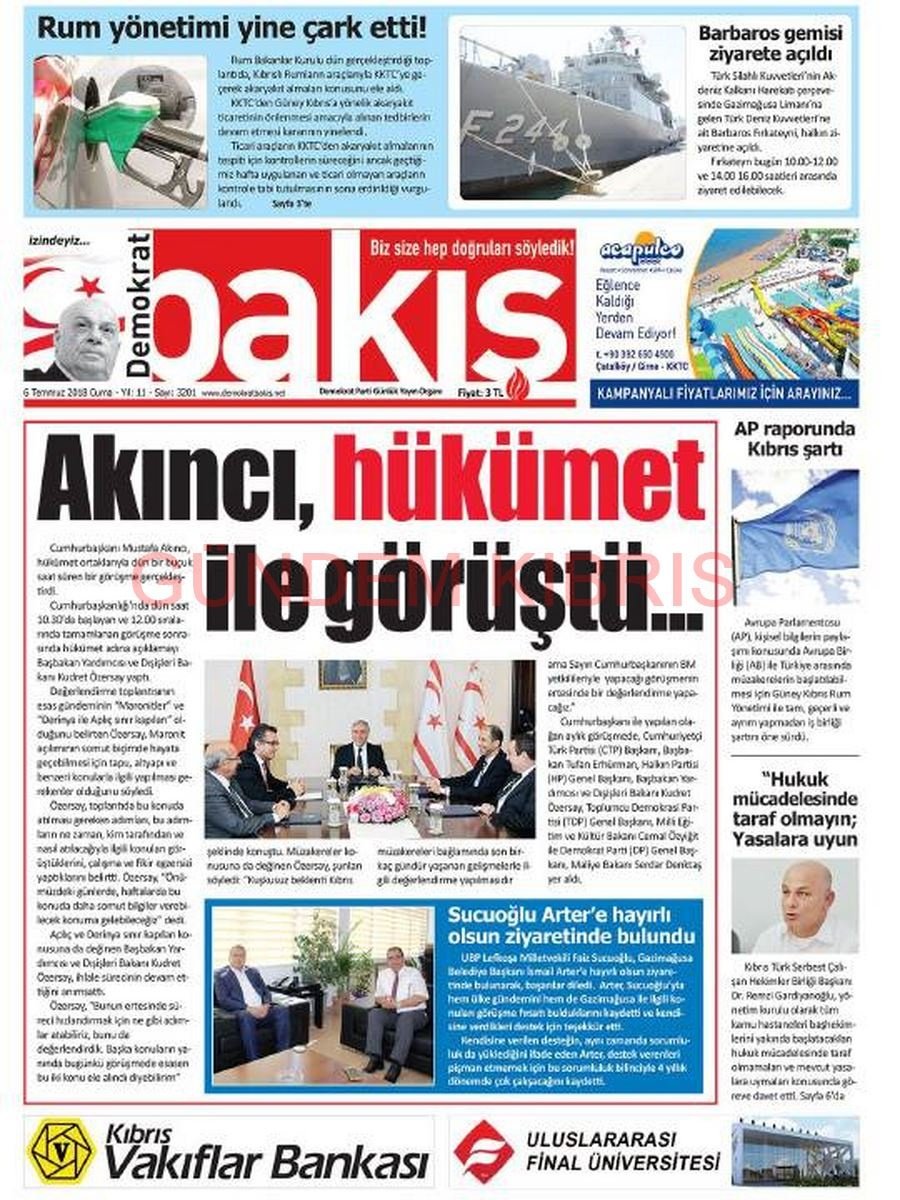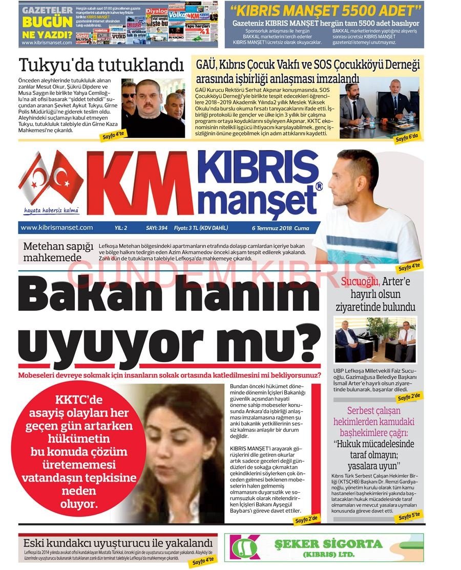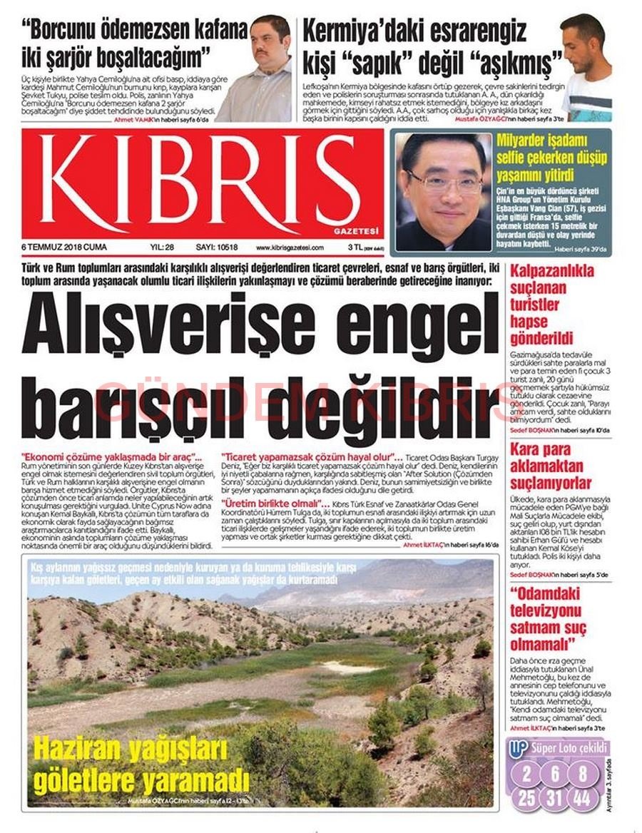 KKTC Gazete Manşetleri 6 Temmuz 2018