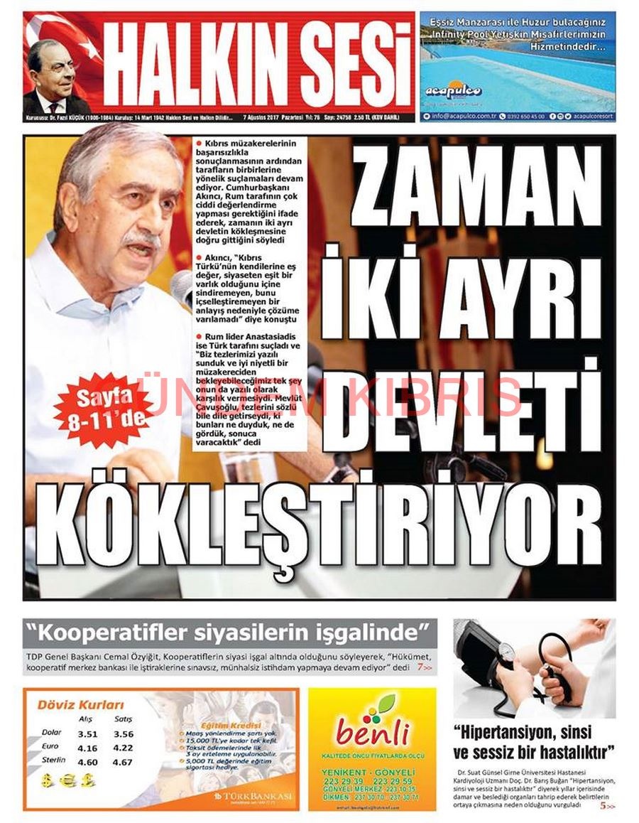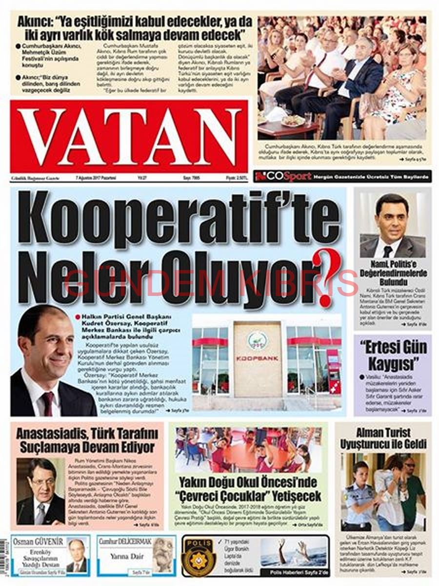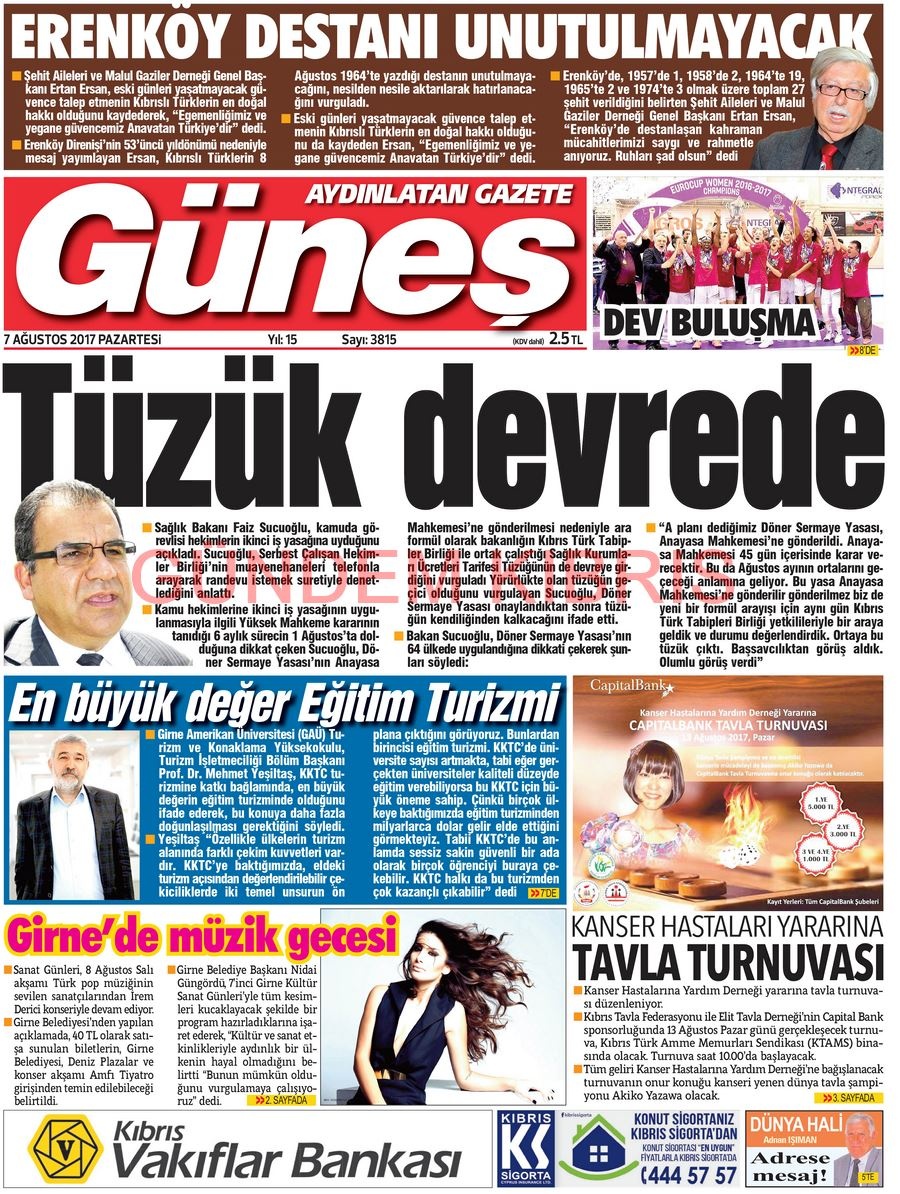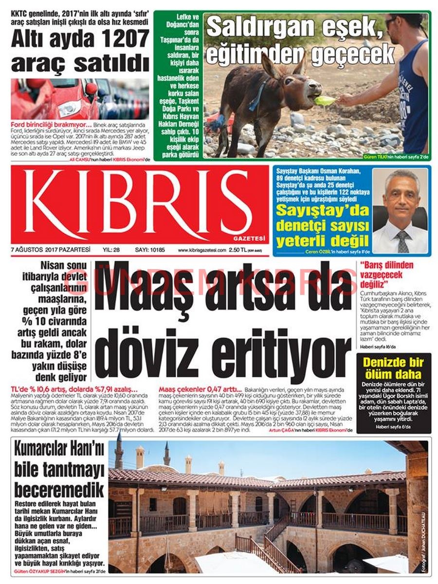 KKTC Gazete Manşetleri 7 Ağustos 2017