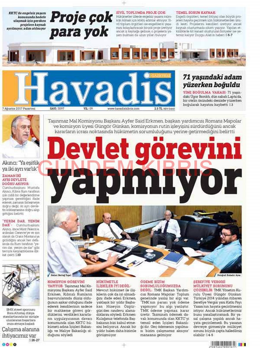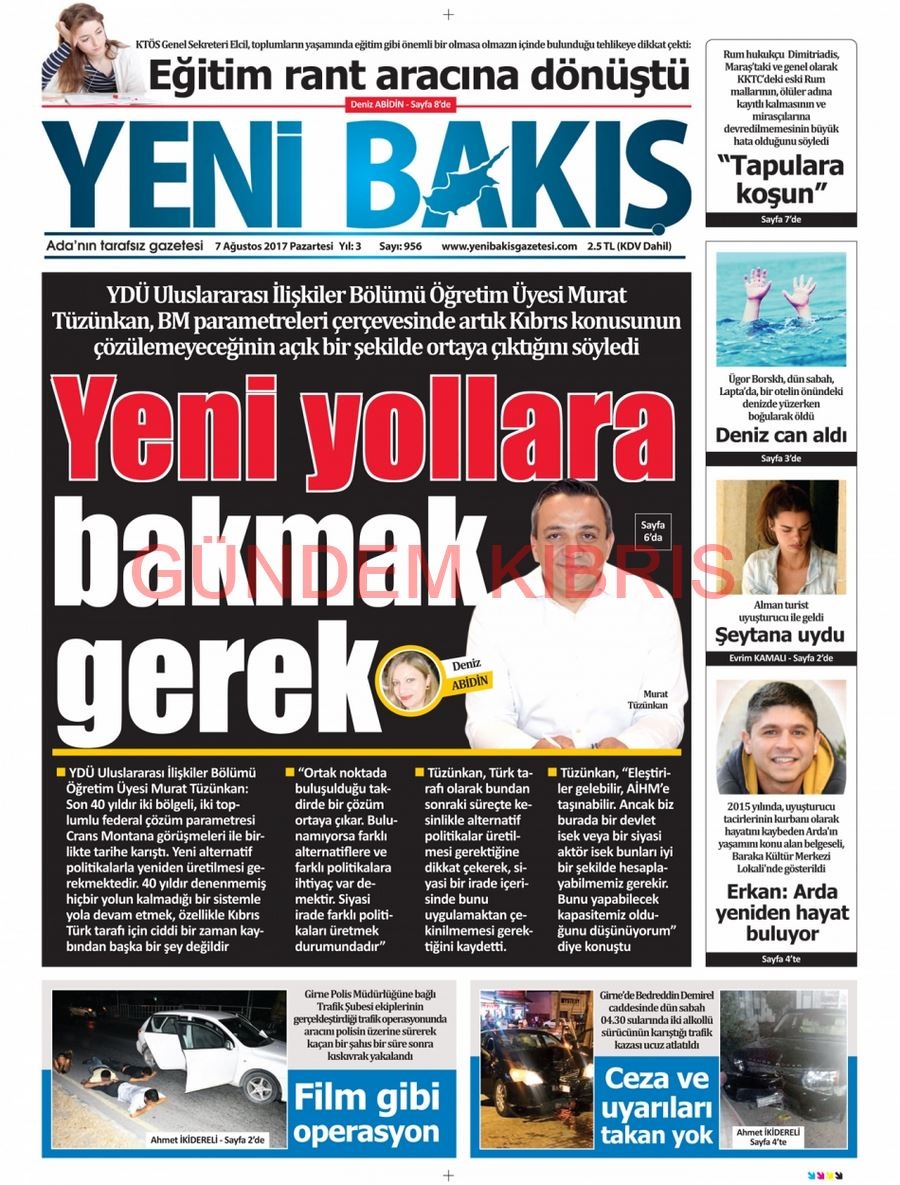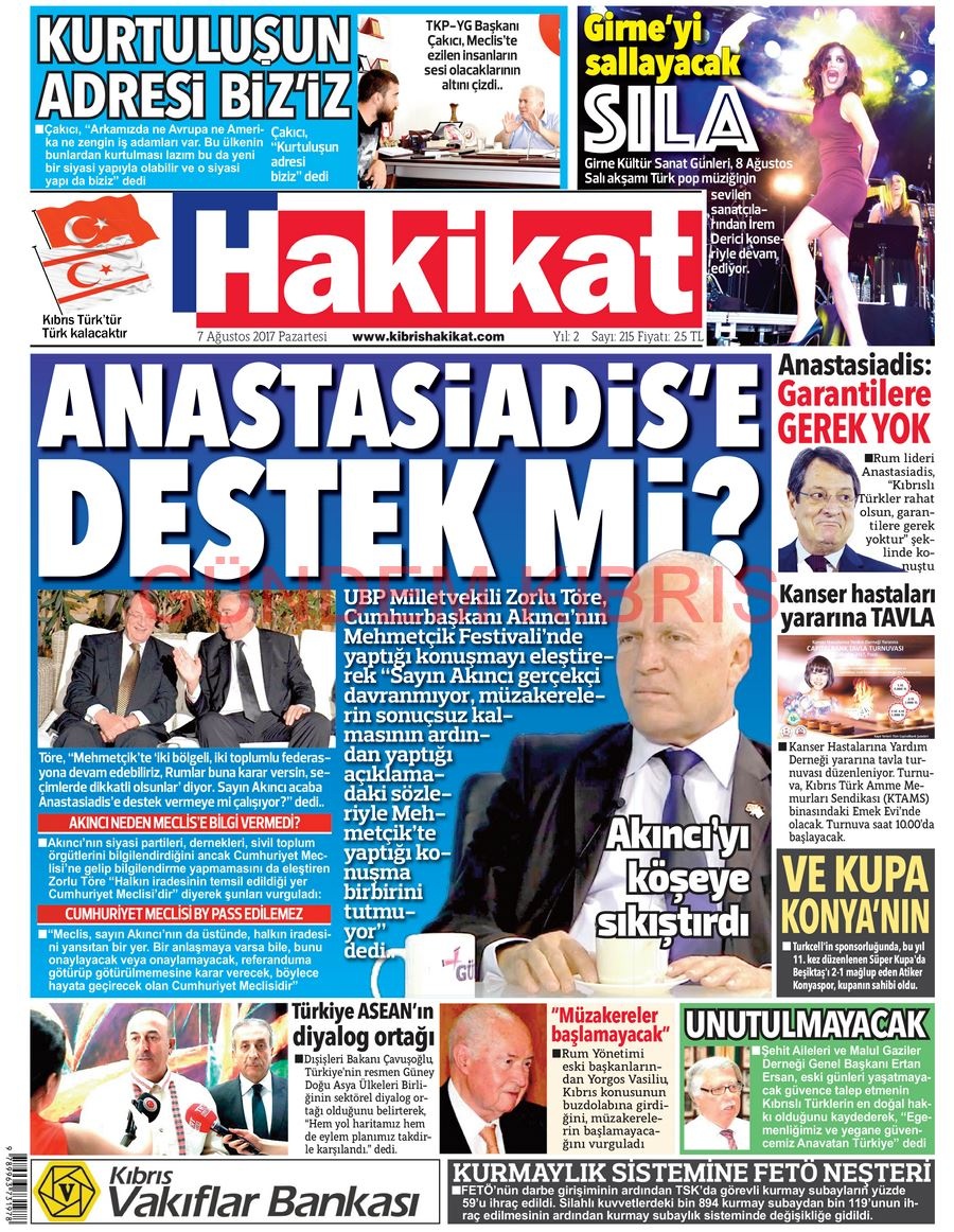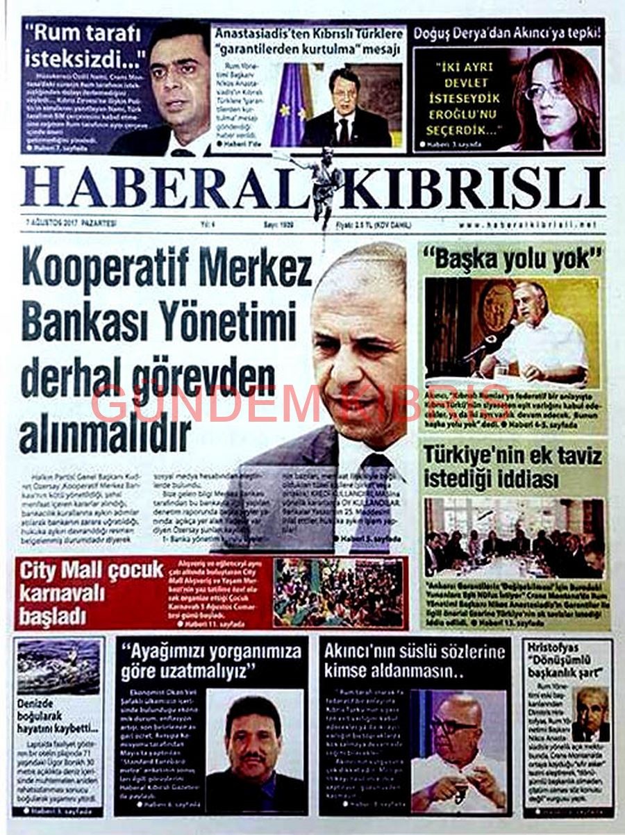 KKTC Gazete Manşetleri 7 Ağustos 2017