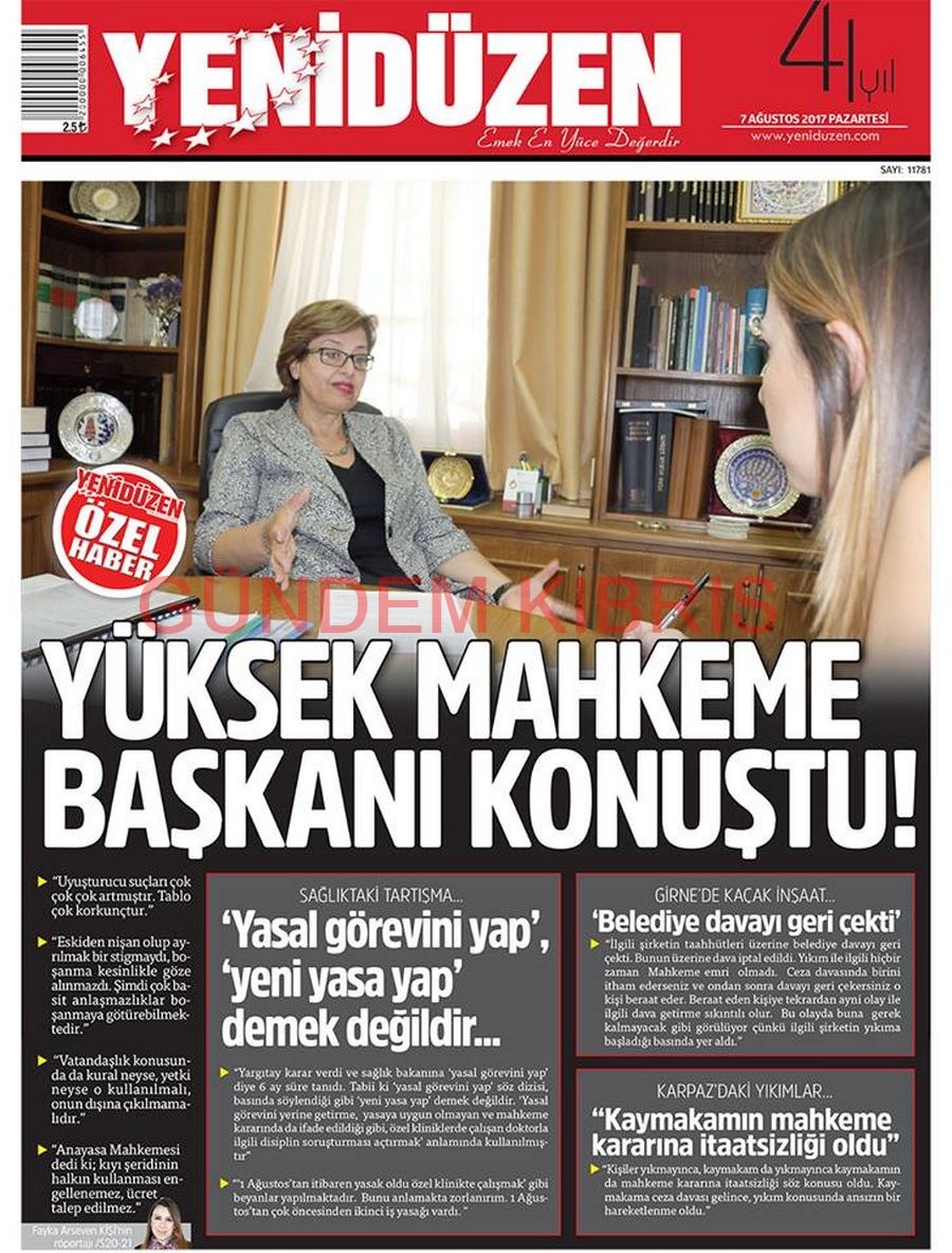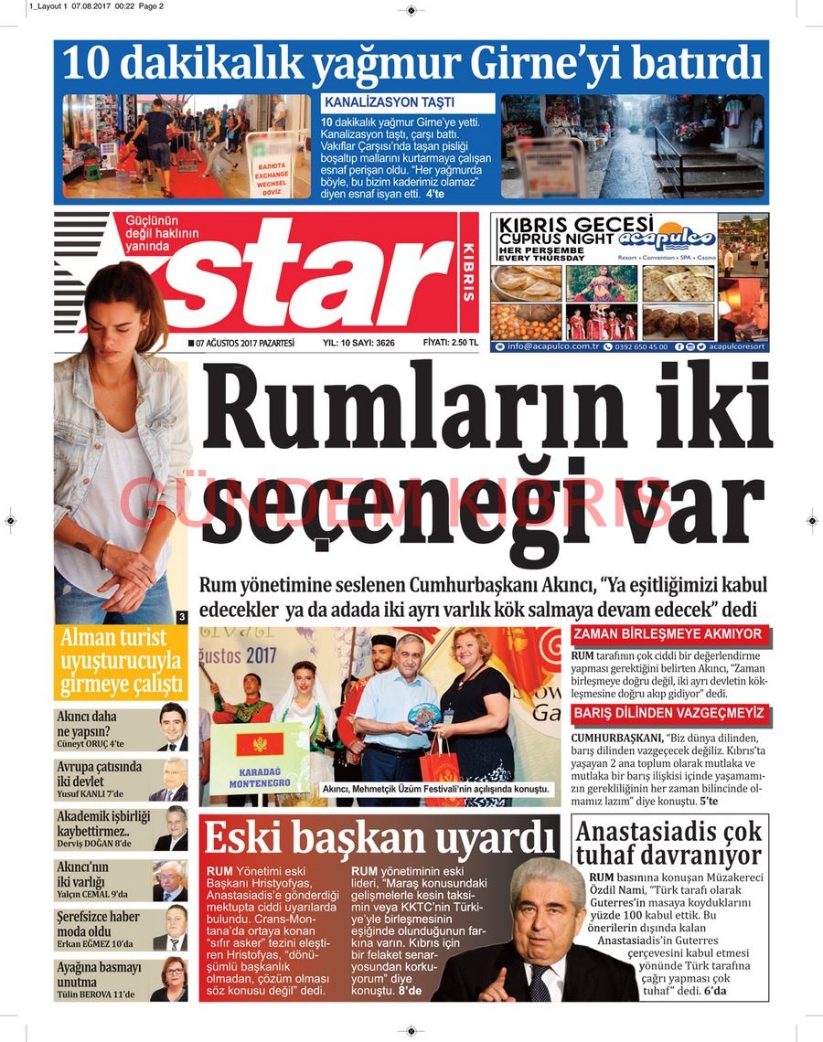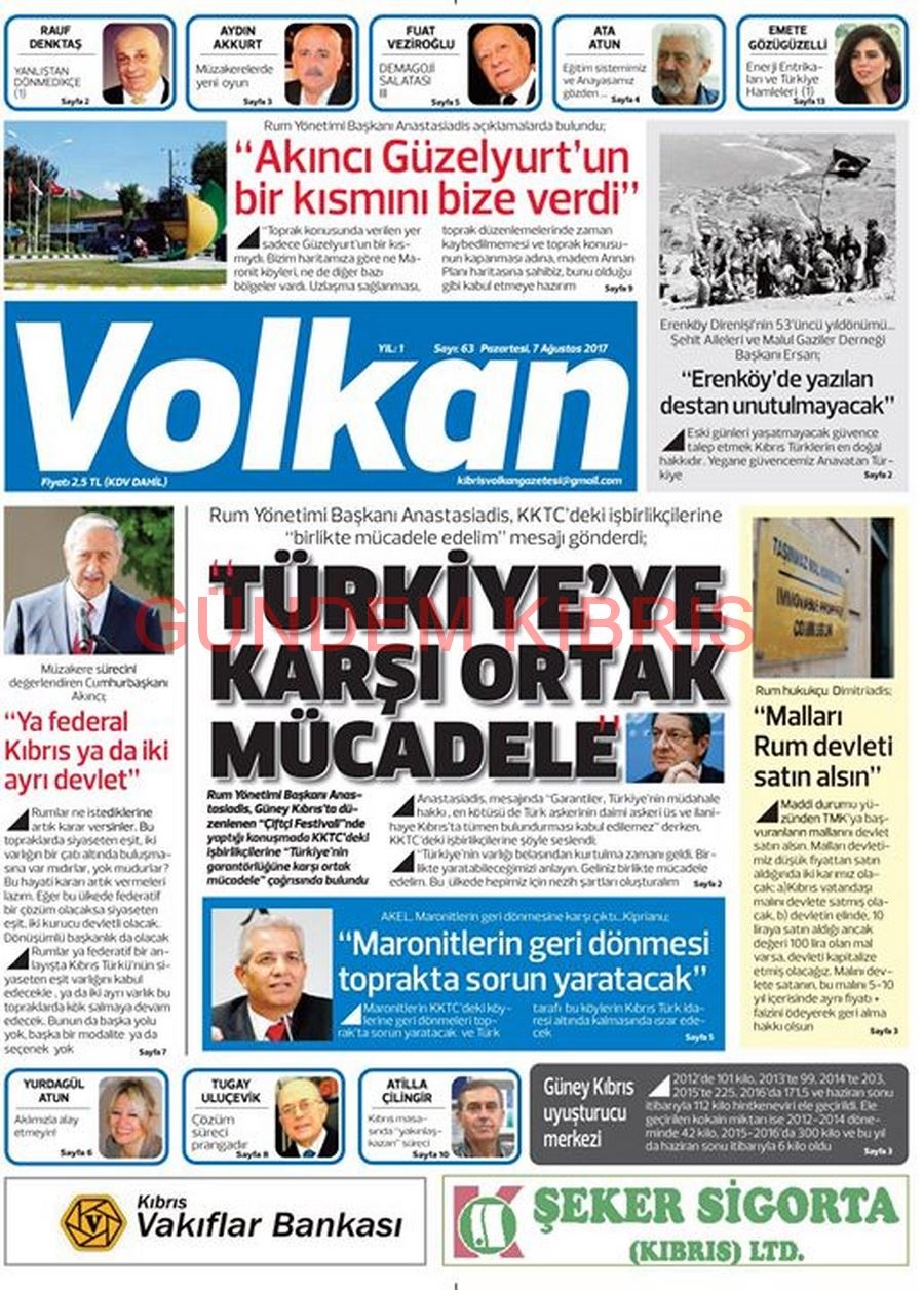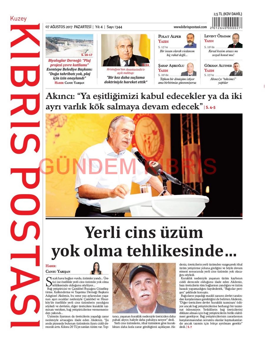 KKTC Gazete Manşetleri 7 Ağustos 2017