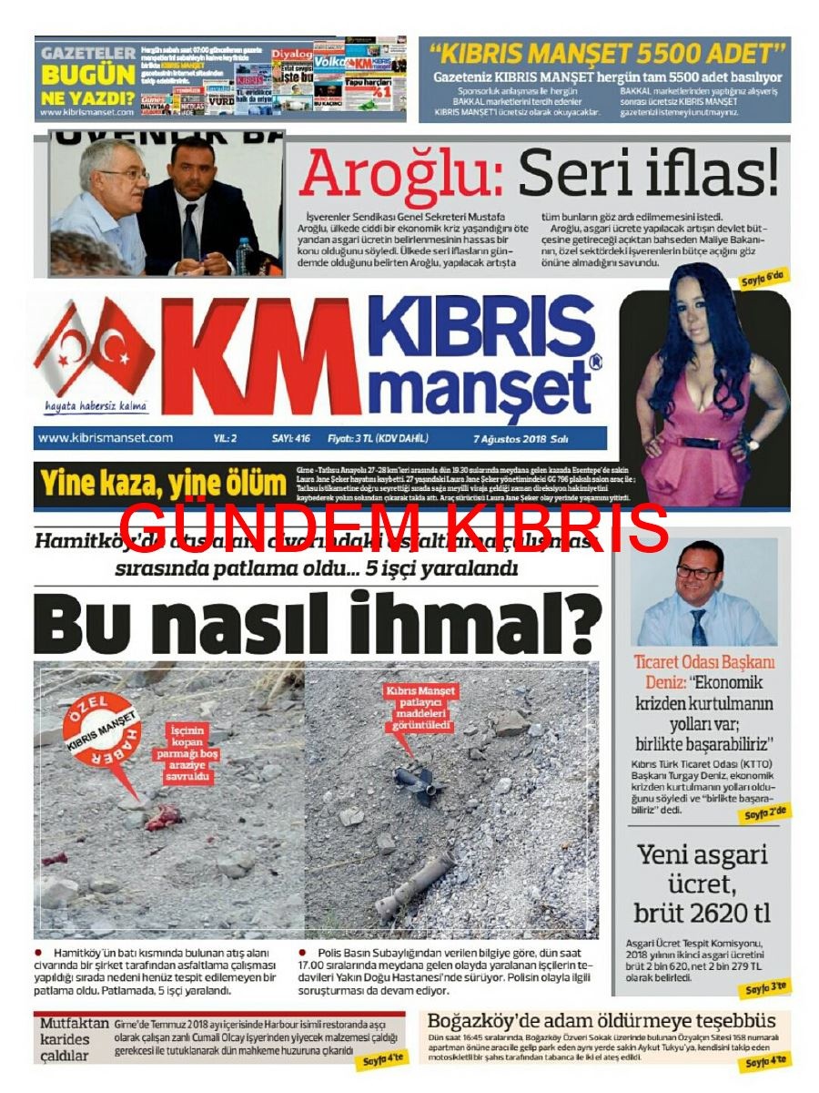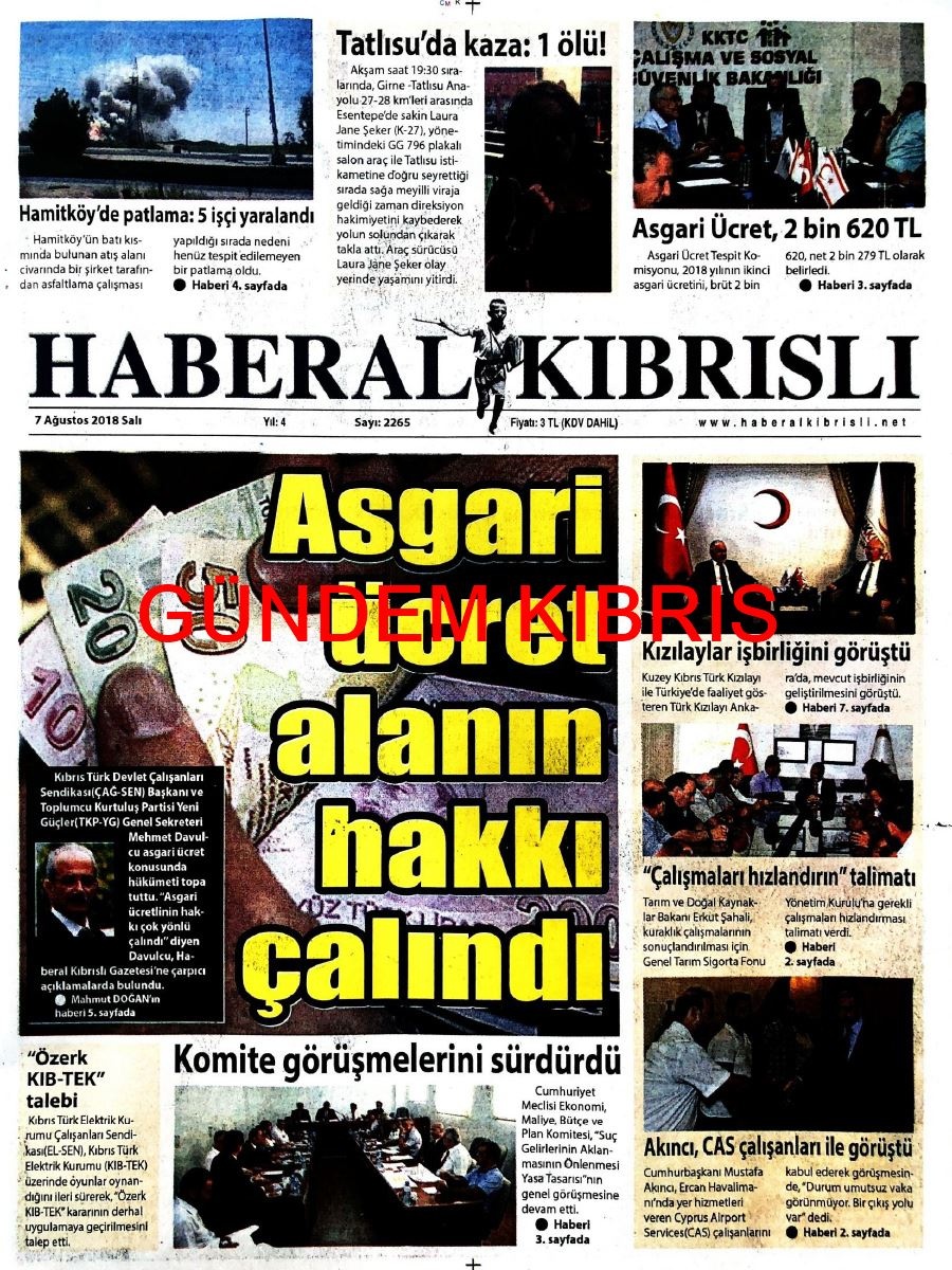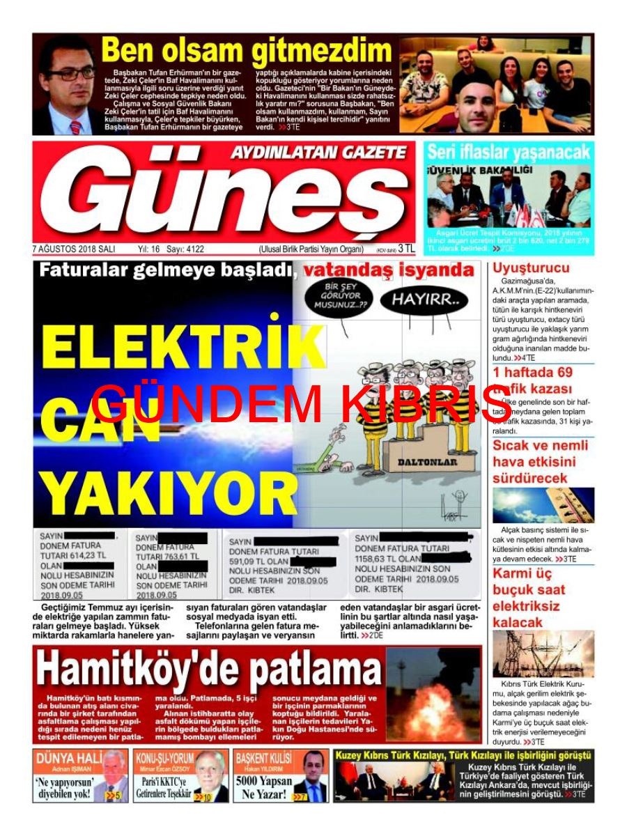 KKTC Gazete Manşetleri 7 Ağustos 2018
