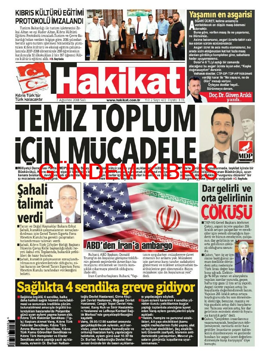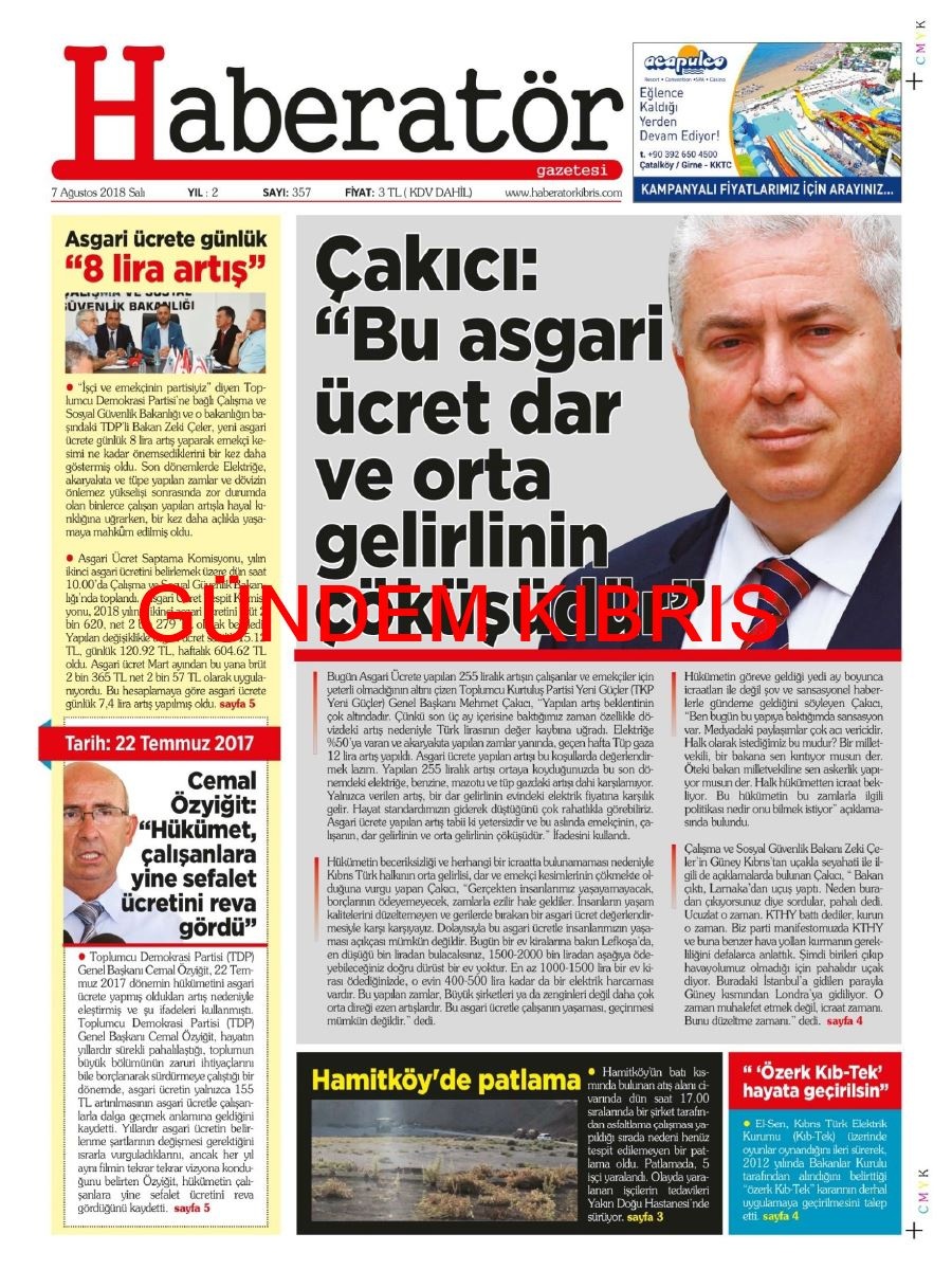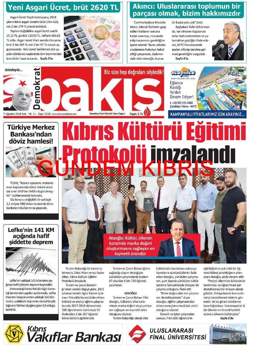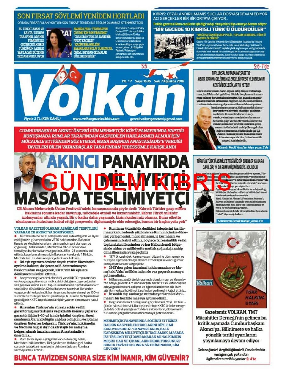 KKTC Gazete Manşetleri 7 Ağustos 2018