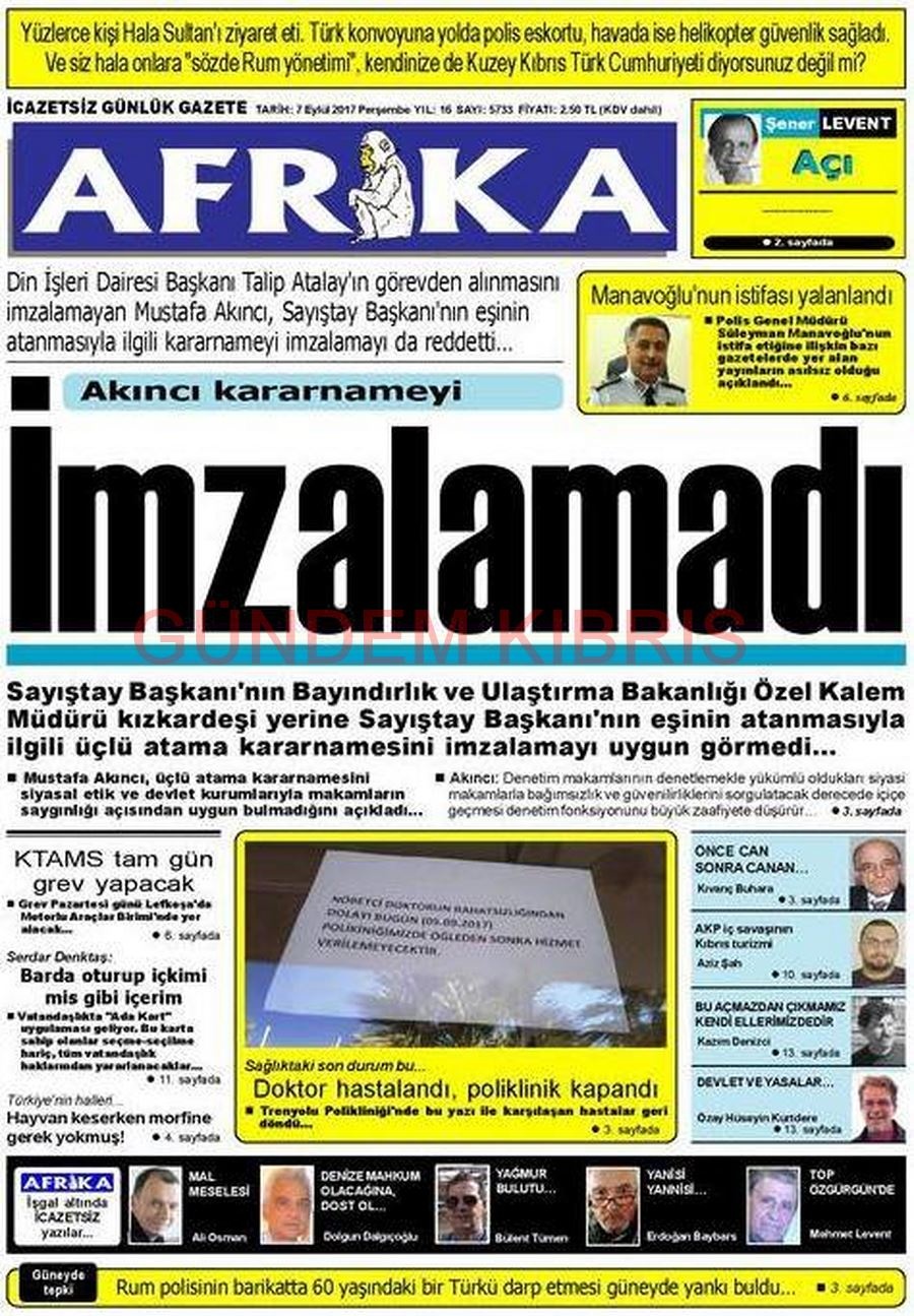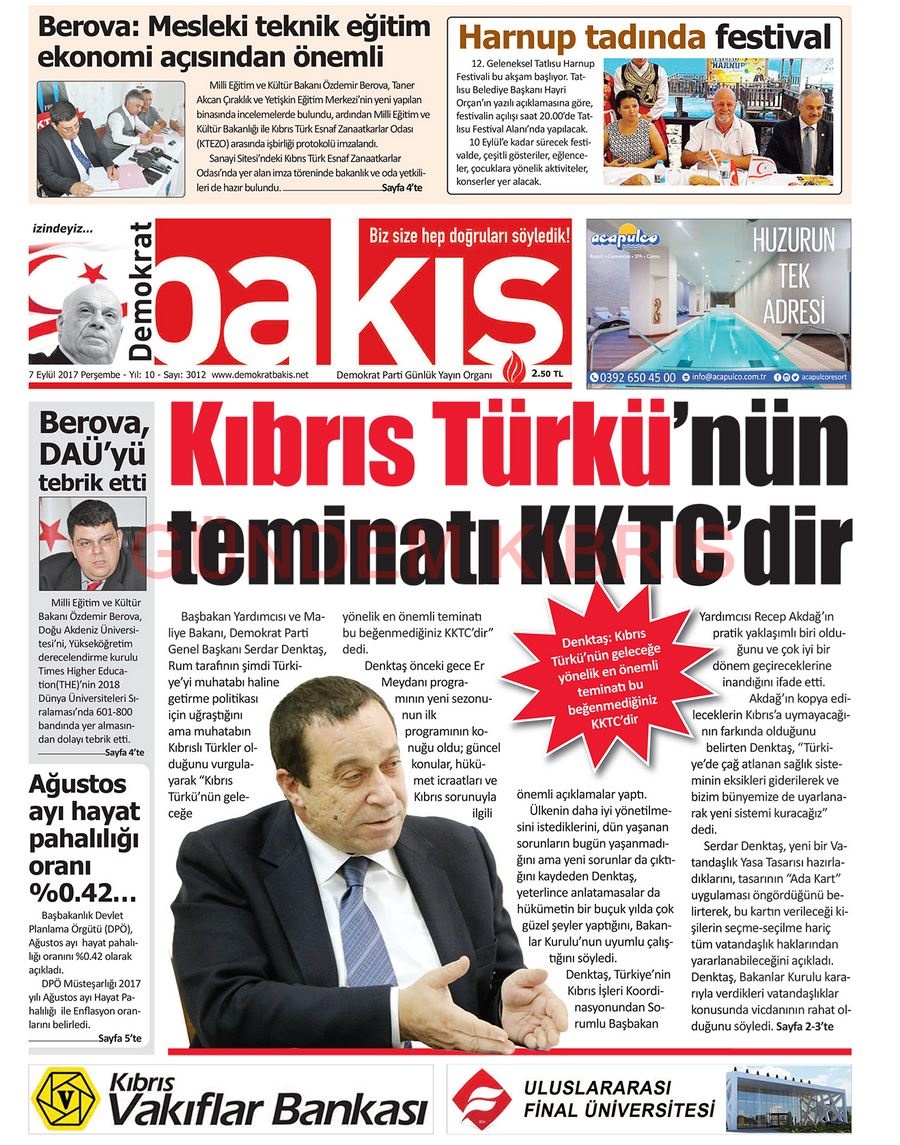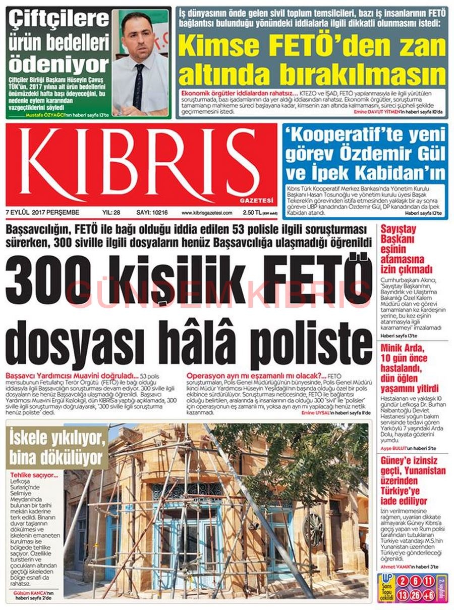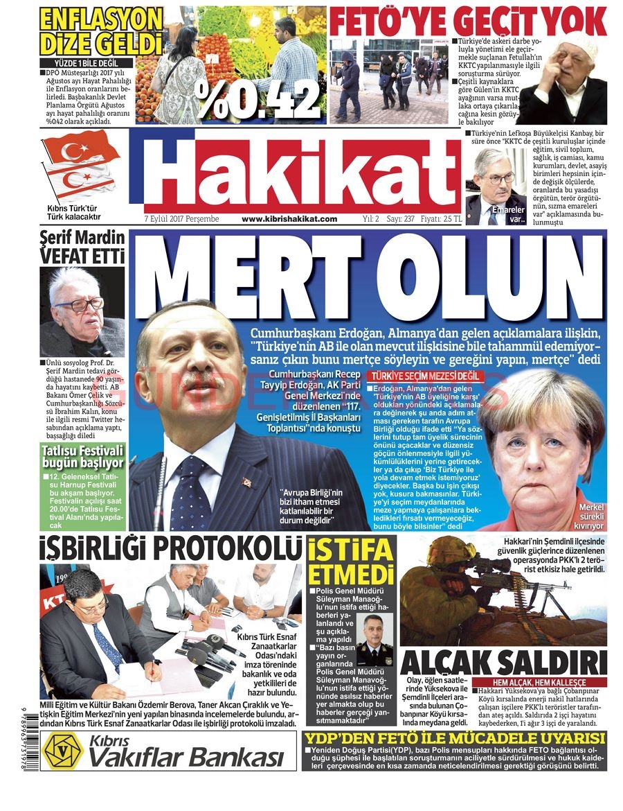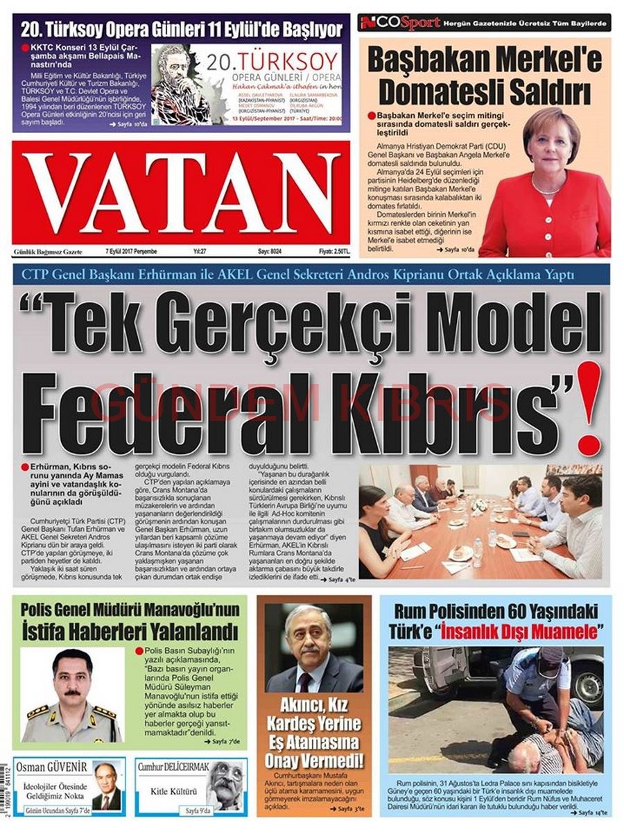 KKTC Gazete Manşetleri 7 Eylül 2017