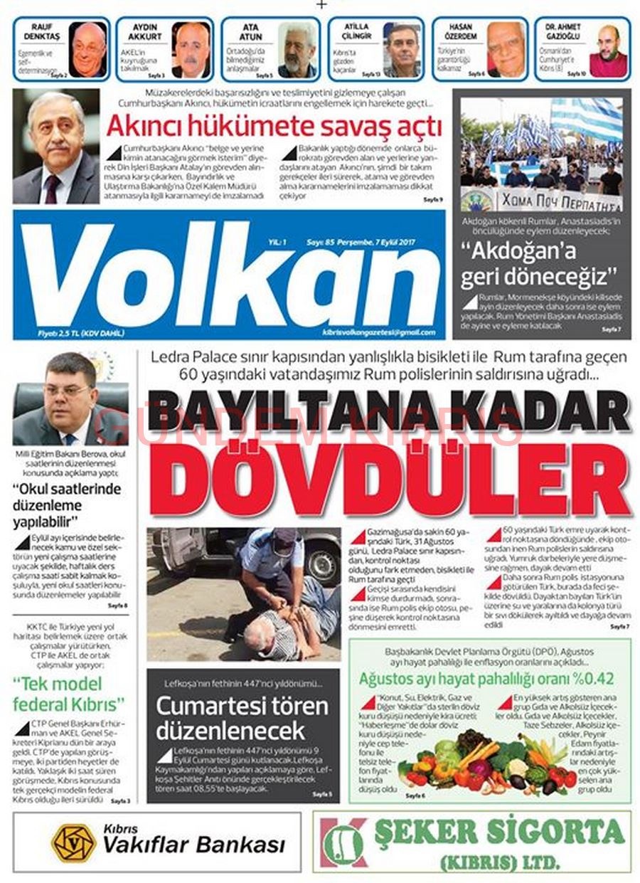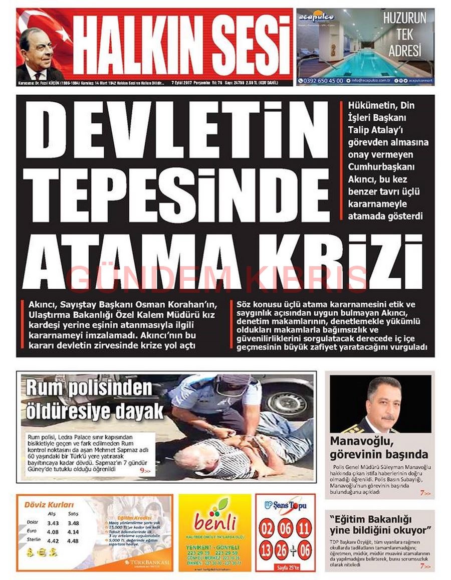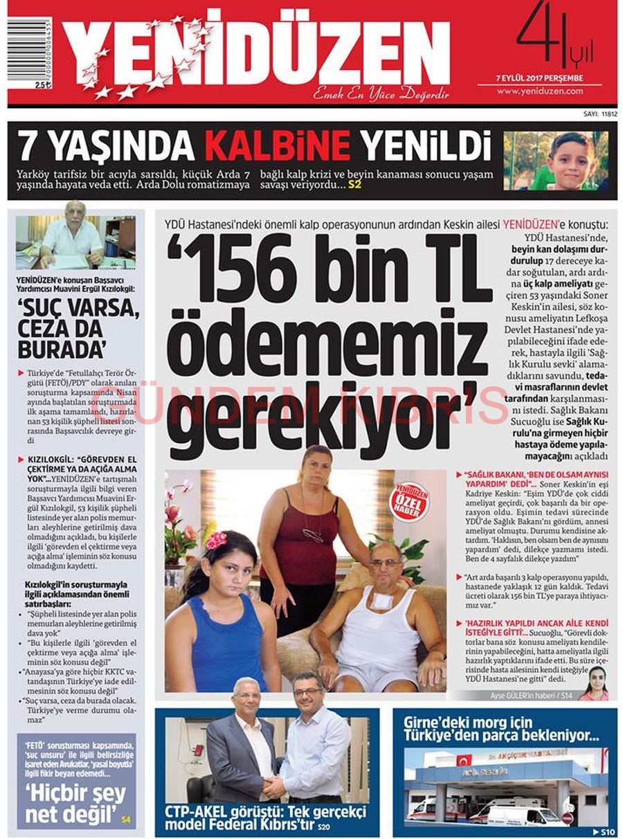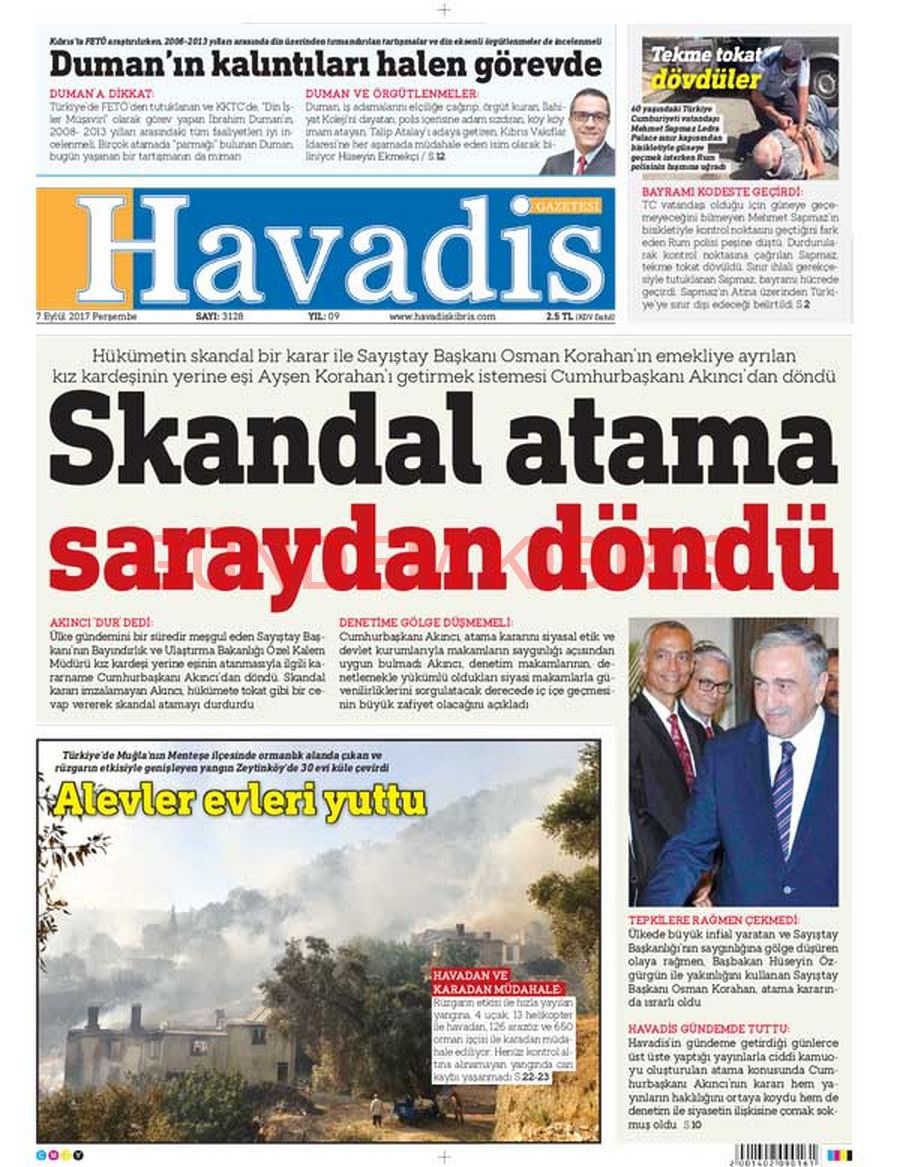 KKTC Gazete Manşetleri 7 Eylül 2017