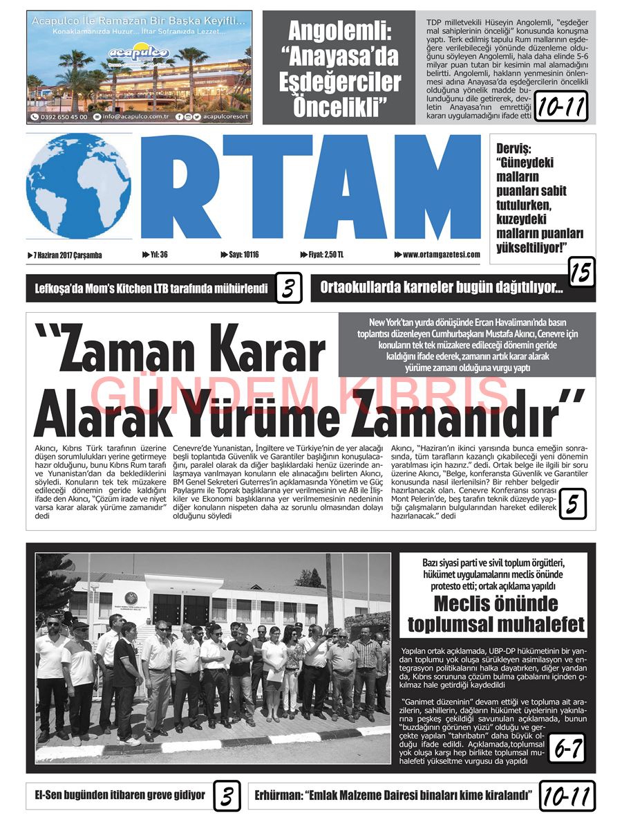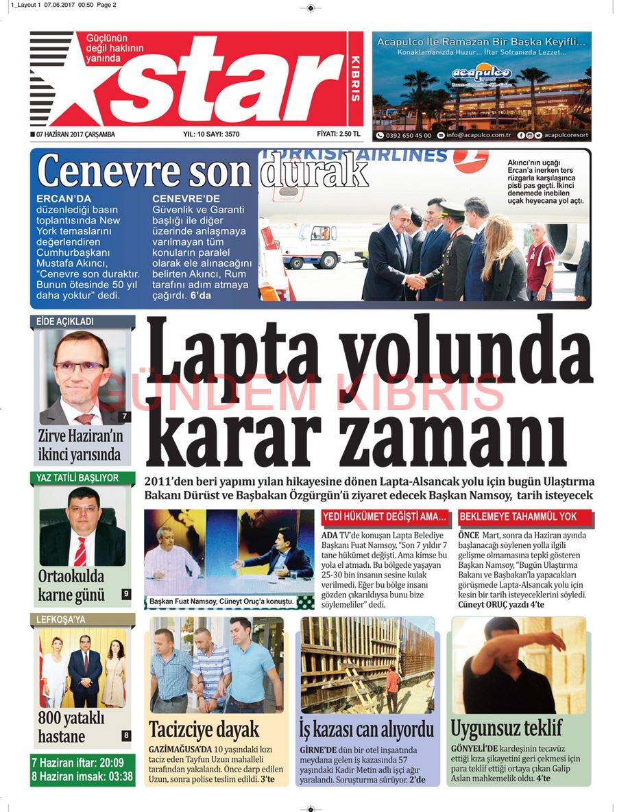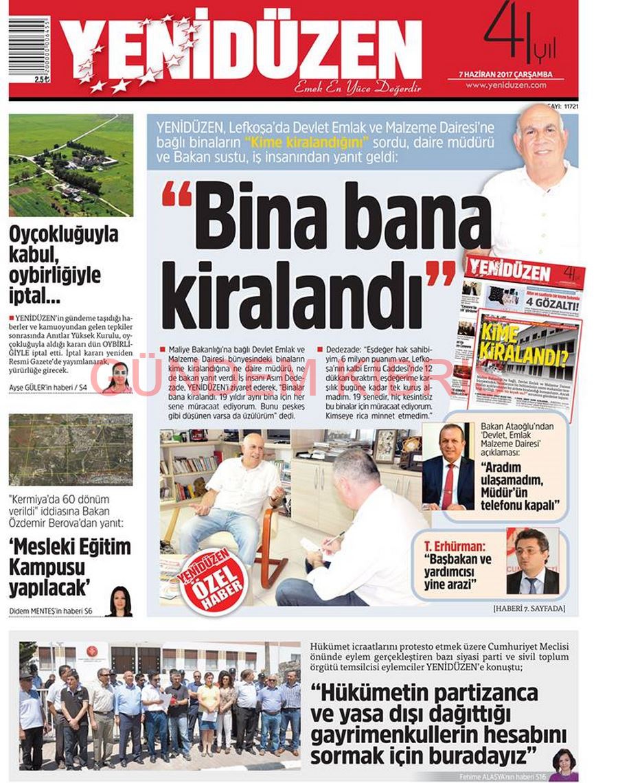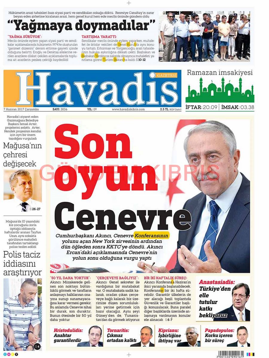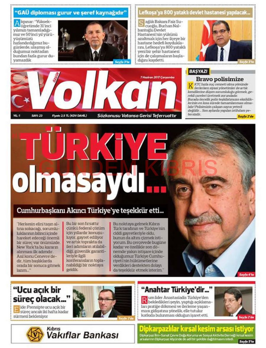 KKTC Gazete Manşetleri 7 Haziran 2017