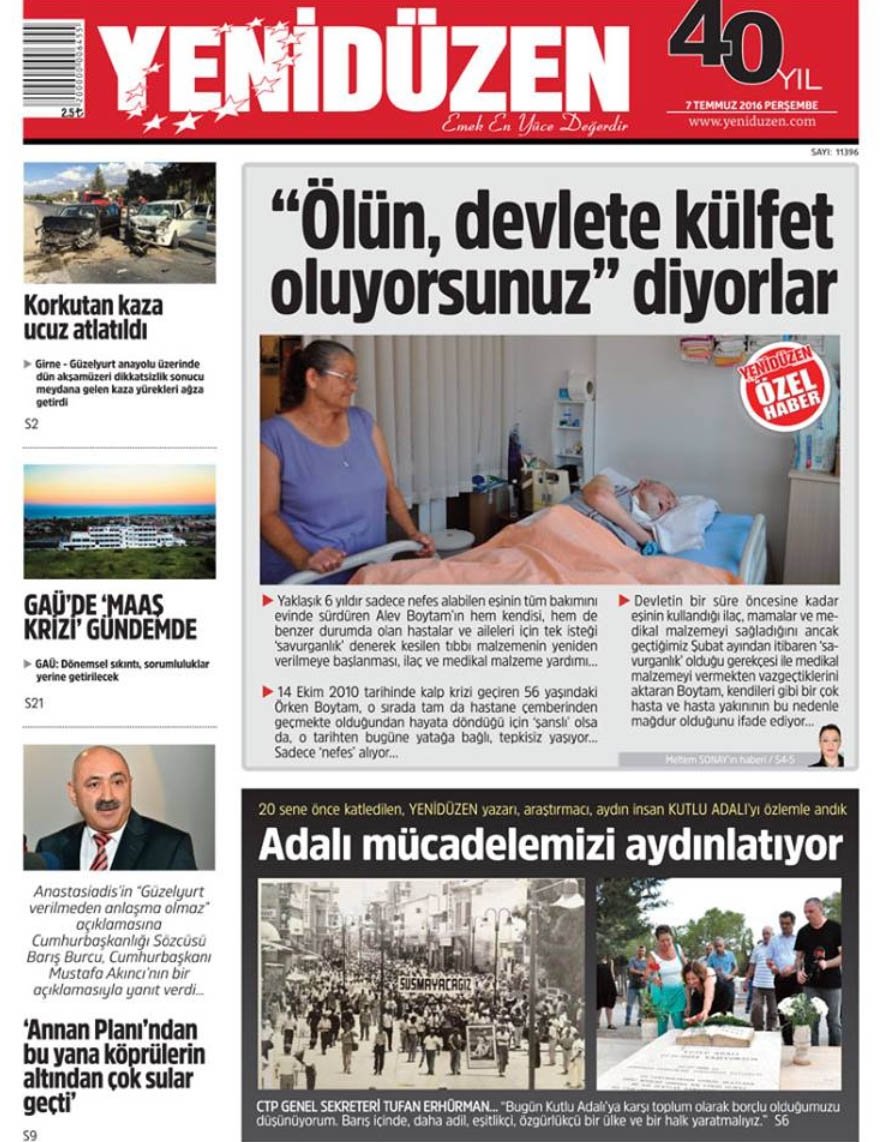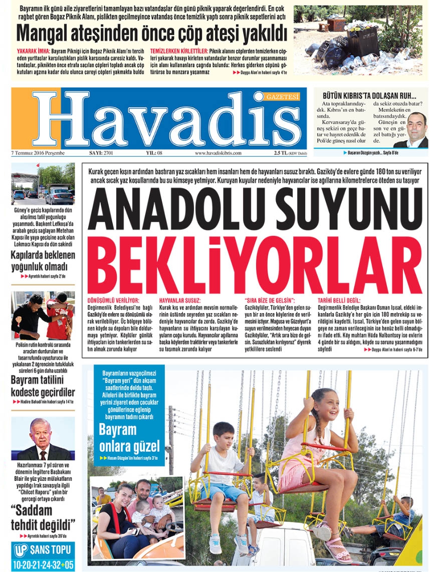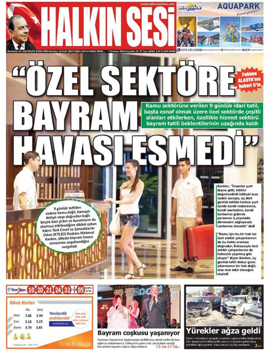 KKTC Gazete Manşetleri 7 Temmuz 2016