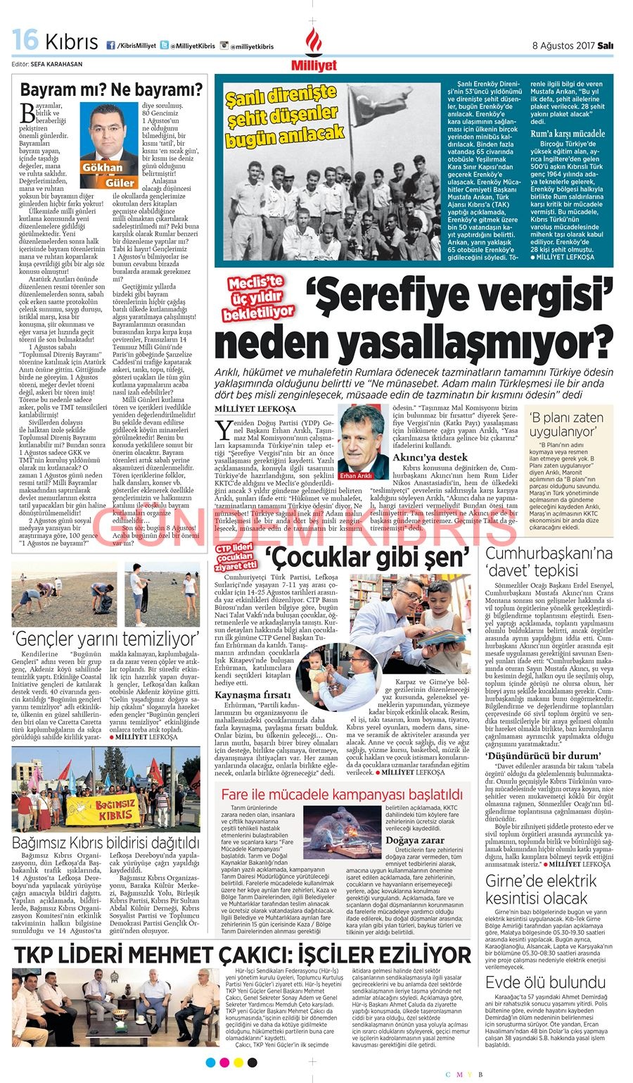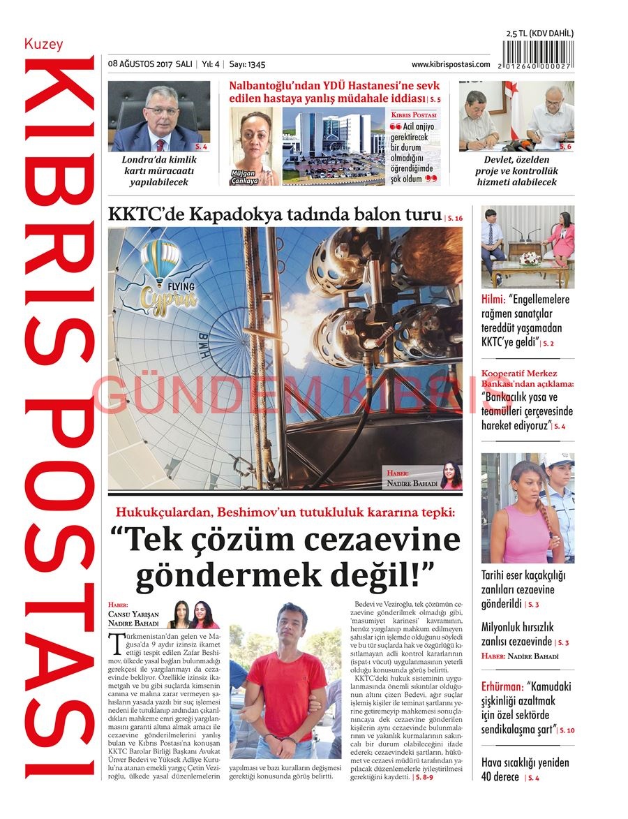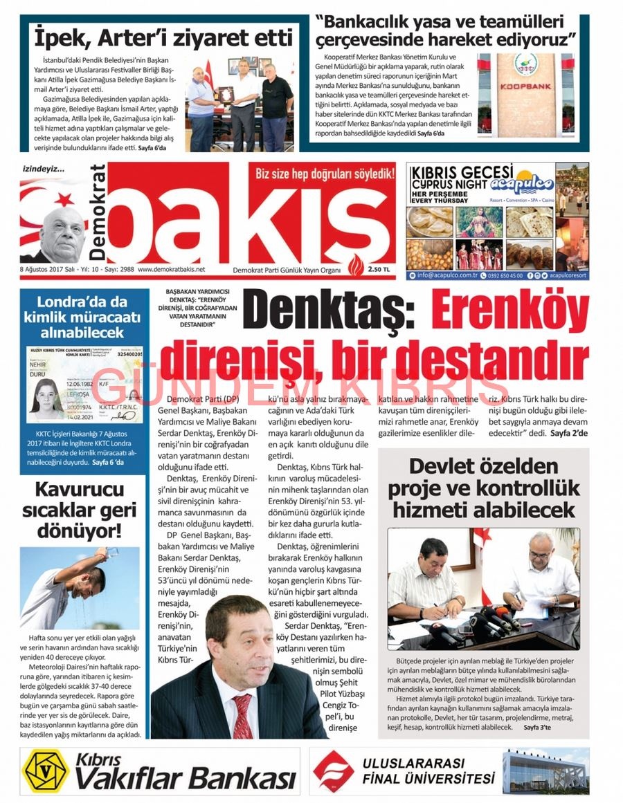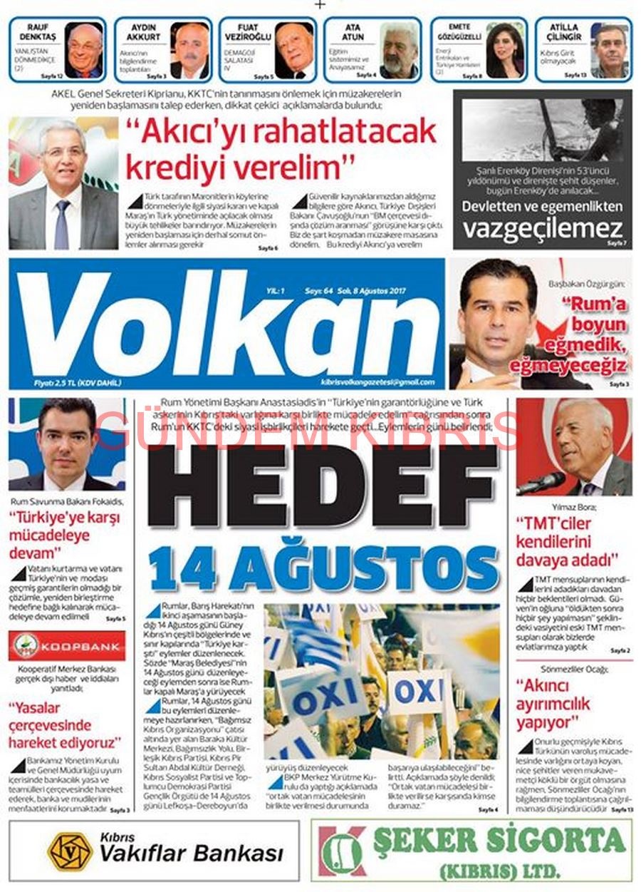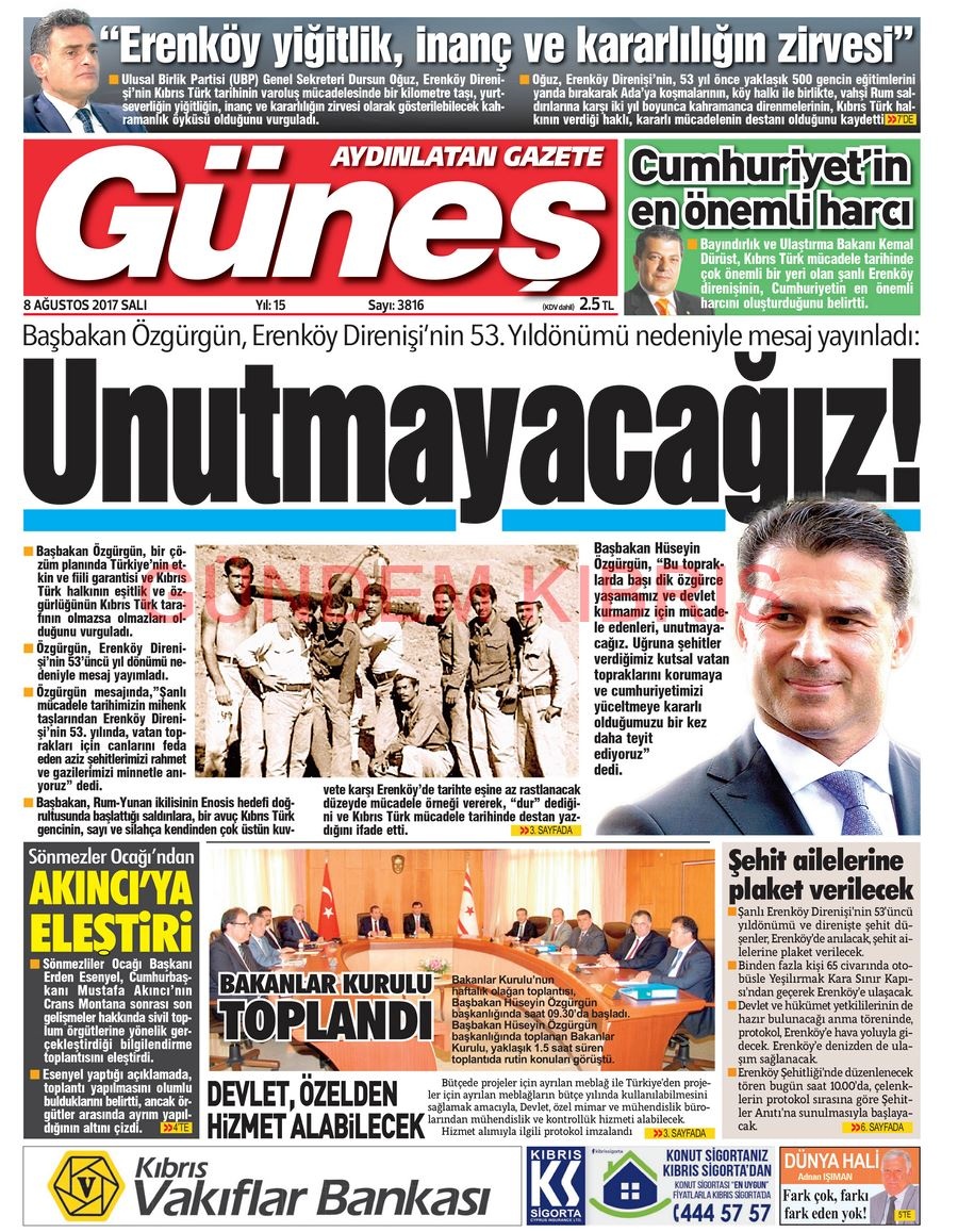 KKTC Gazete Manşetleri 8 Ağustos 2017