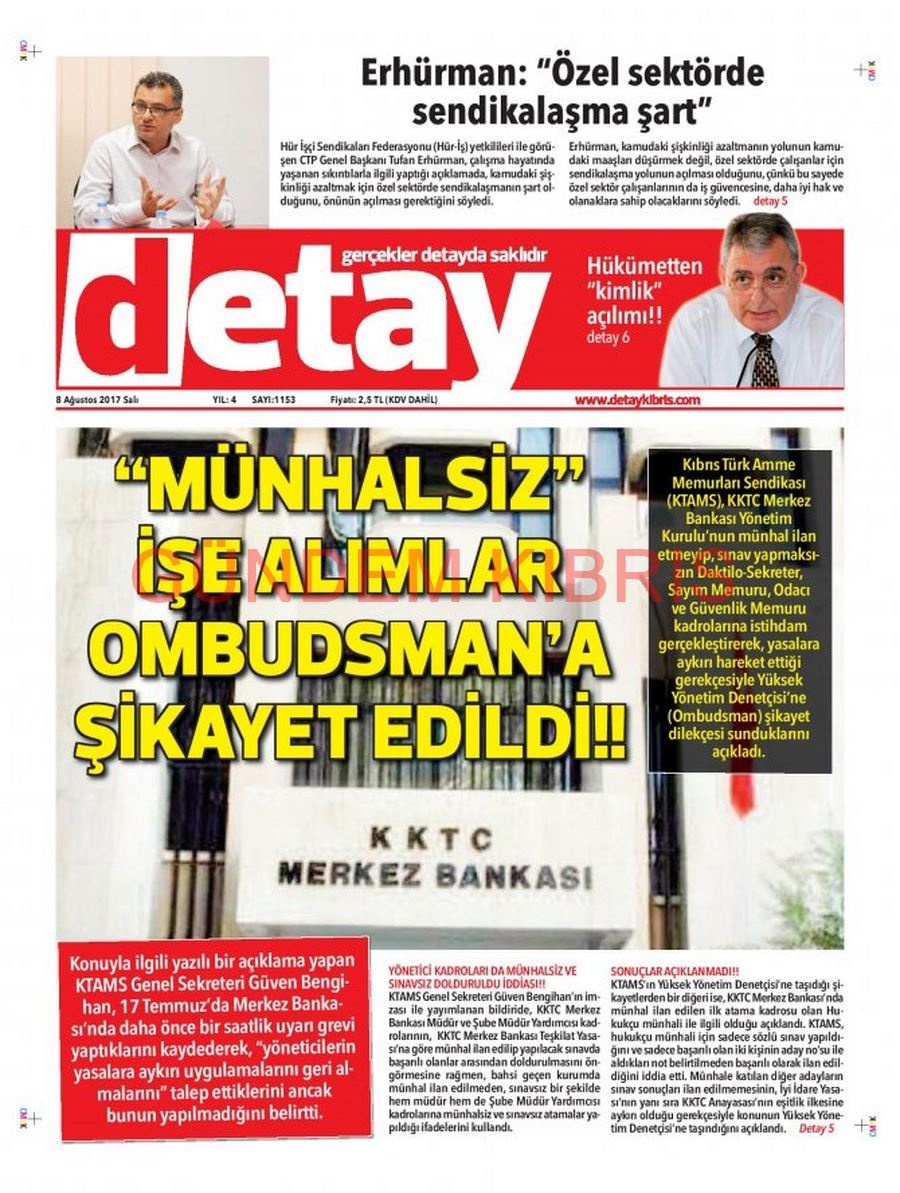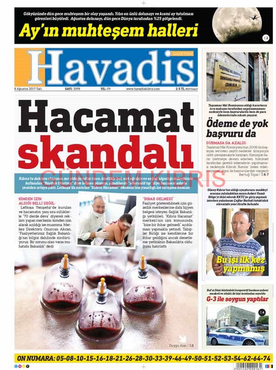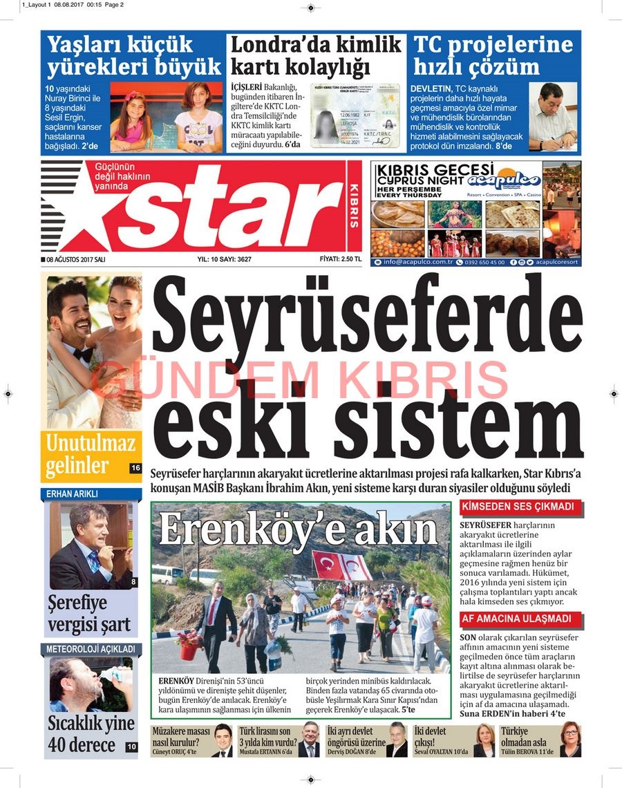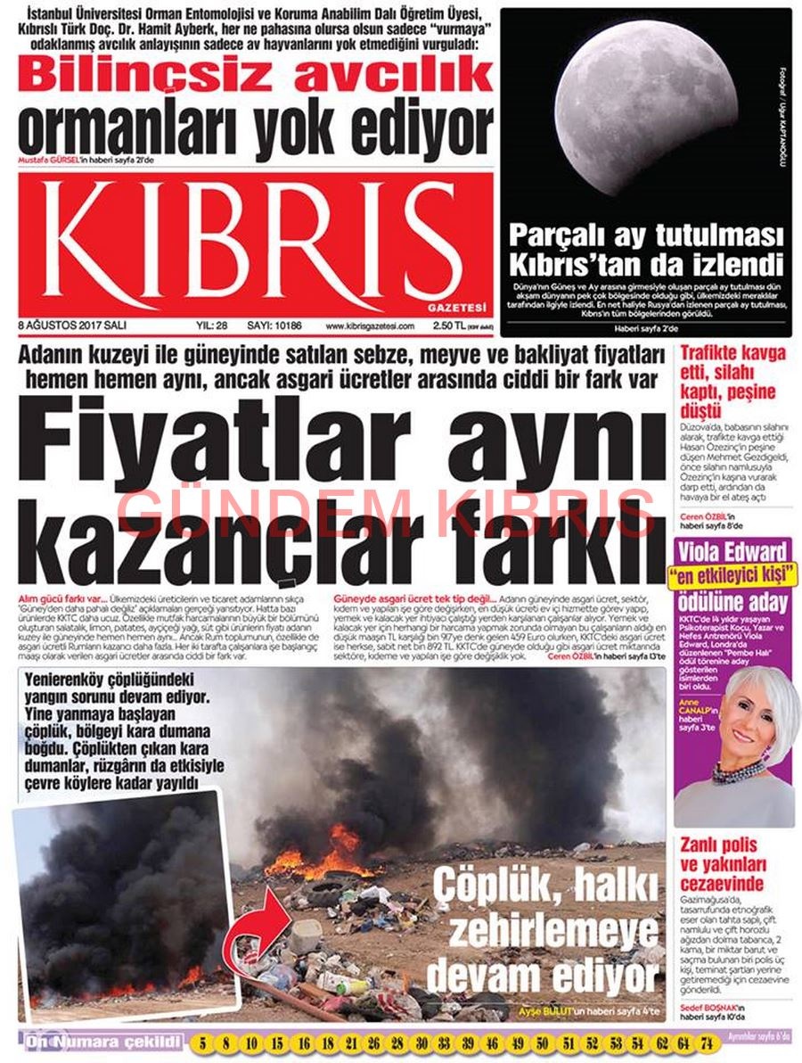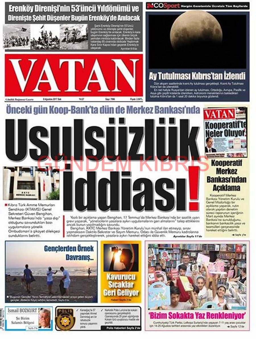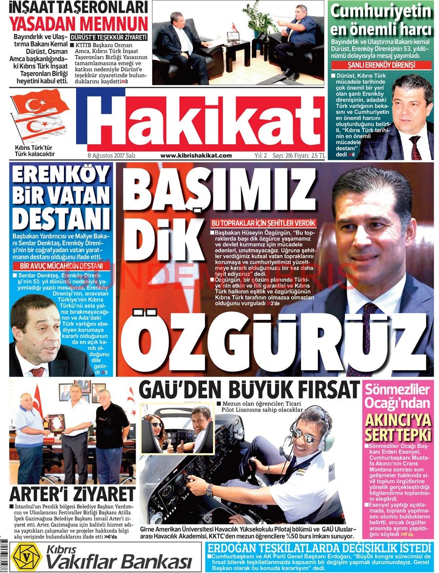 KKTC Gazete Manşetleri 8 Ağustos 2017
