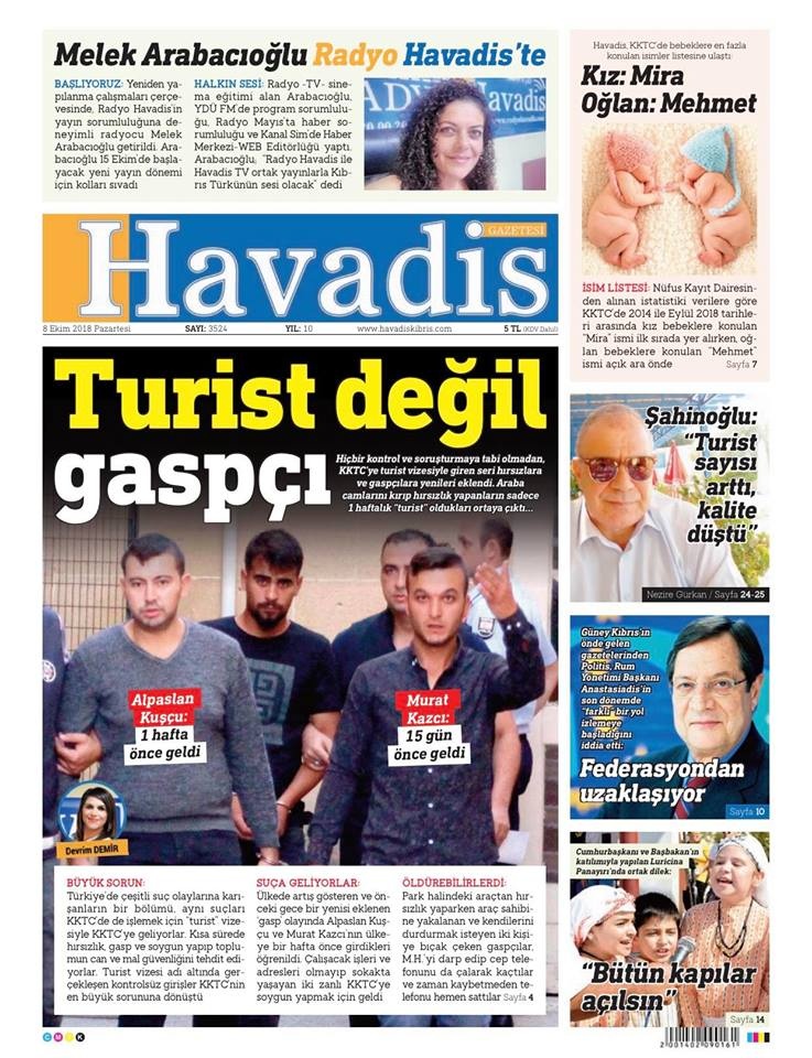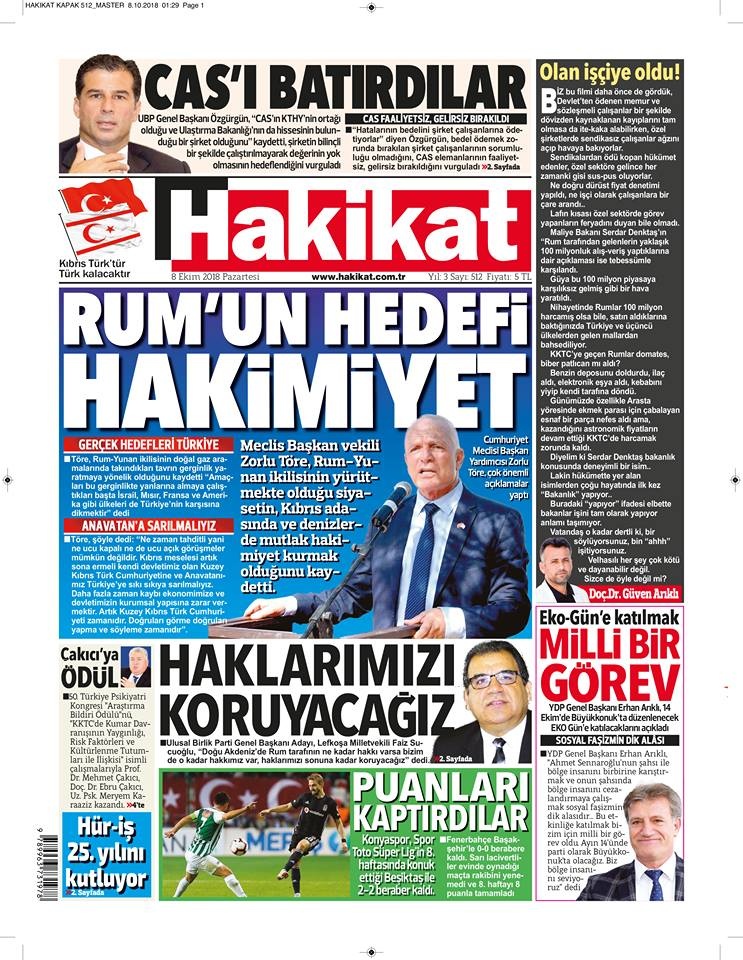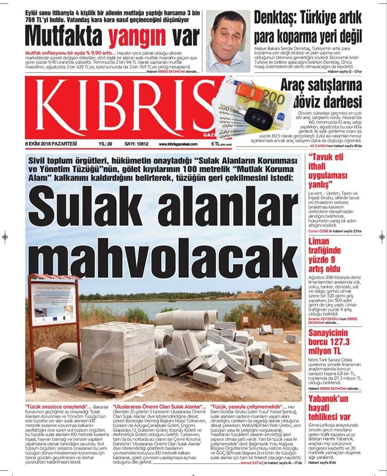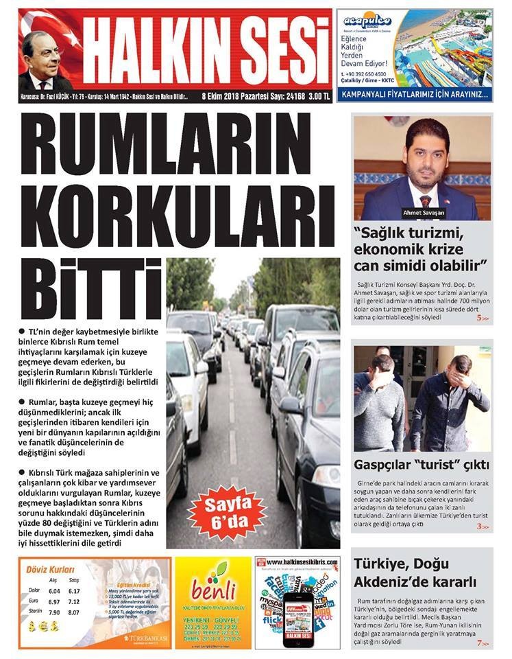 KKTC Gazete Manşetleri - 8 Ekim 2018