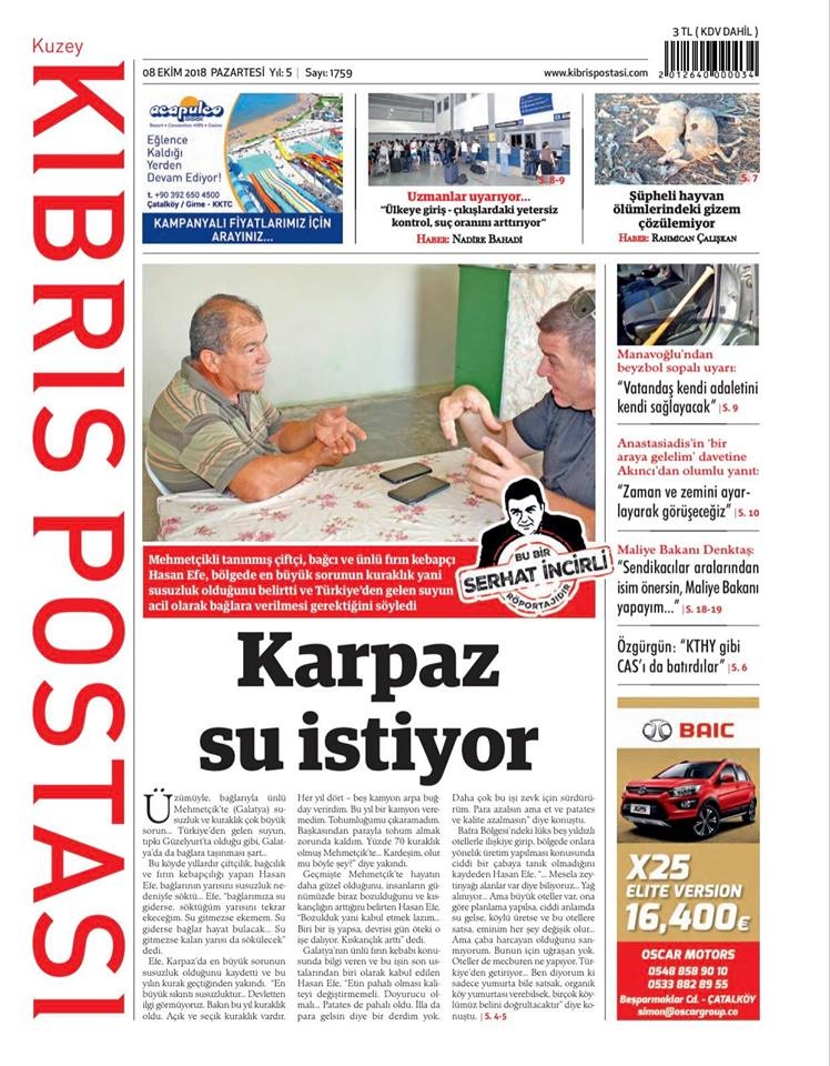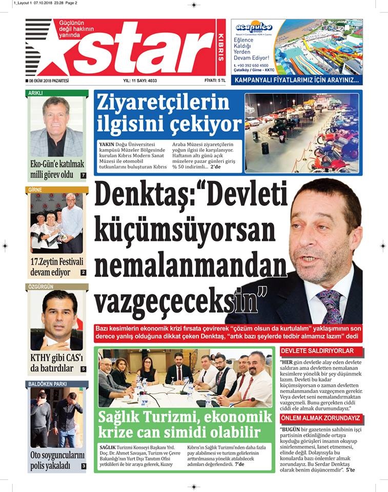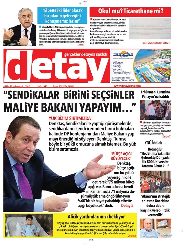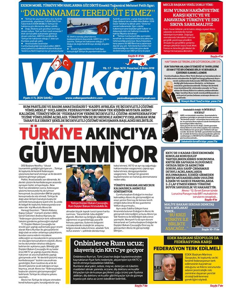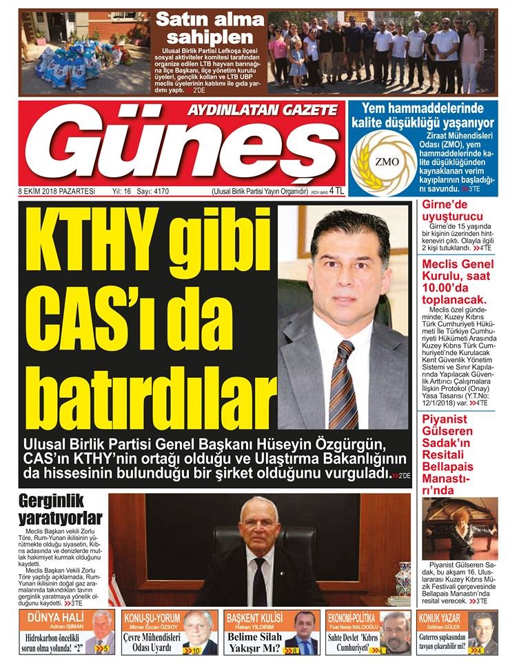KKTC Gazete Manşetleri - 8 Ekim 2018