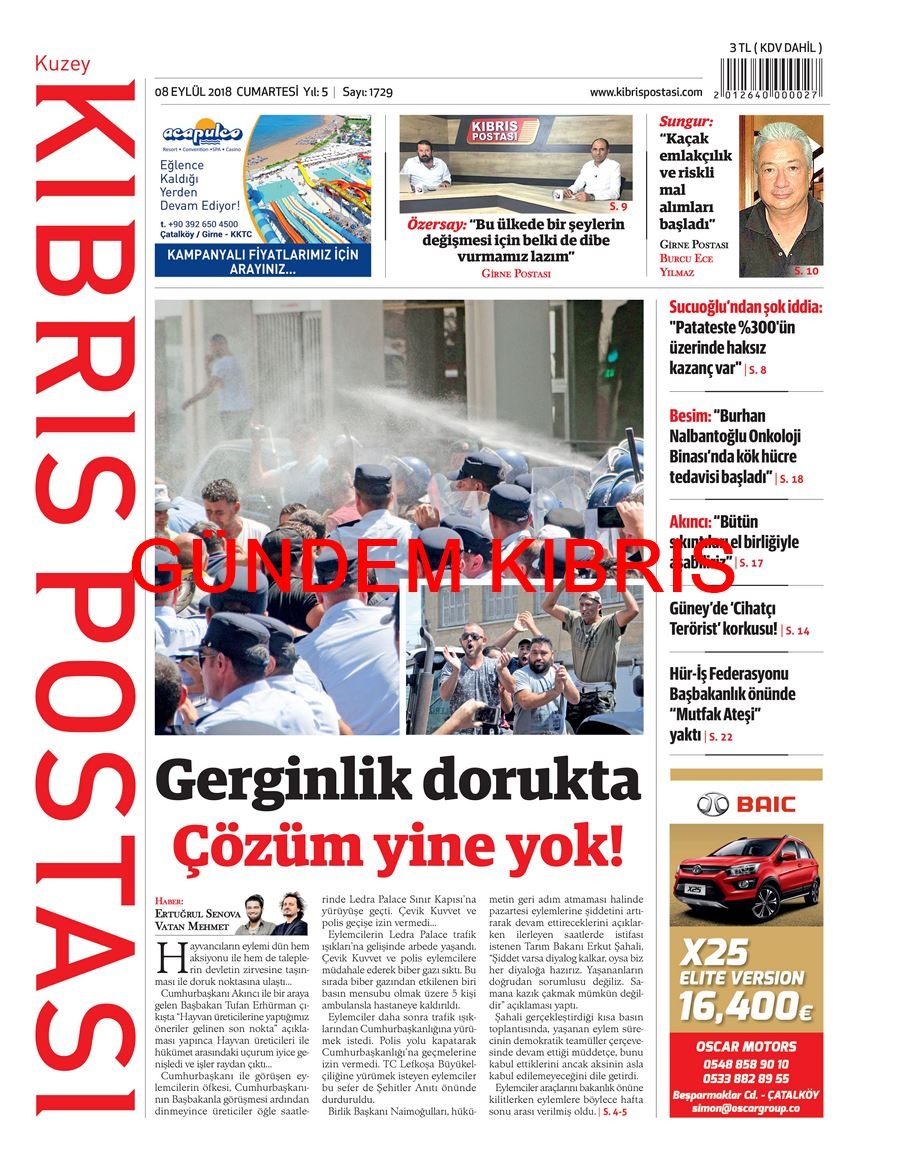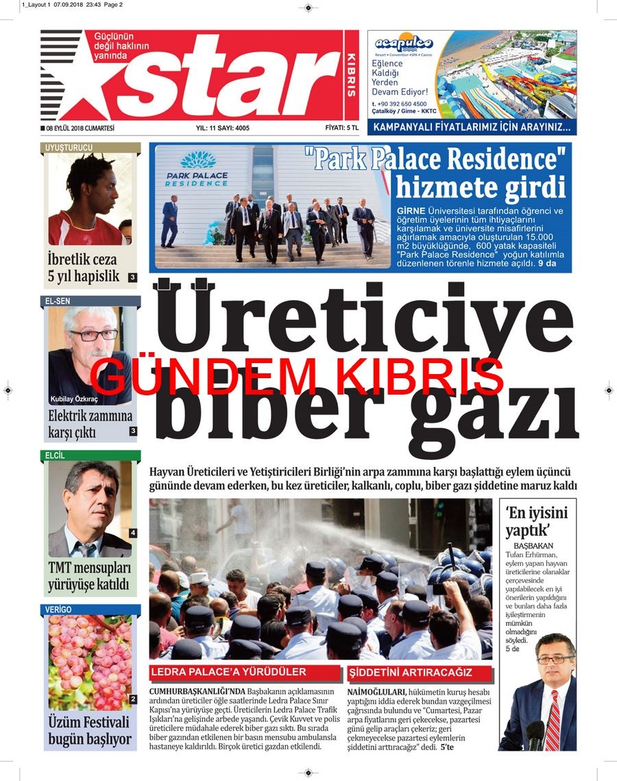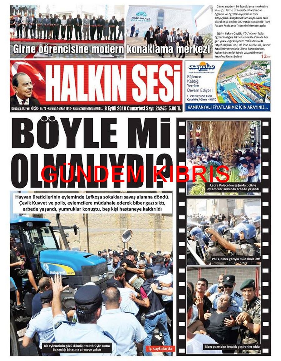 KKTC Gazete Manşetleri 8 Eylül 2018