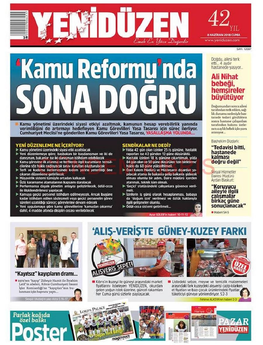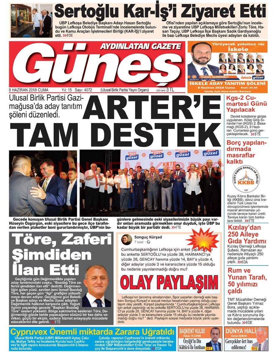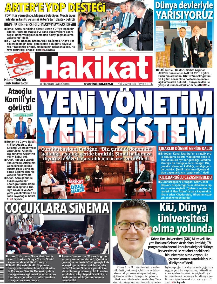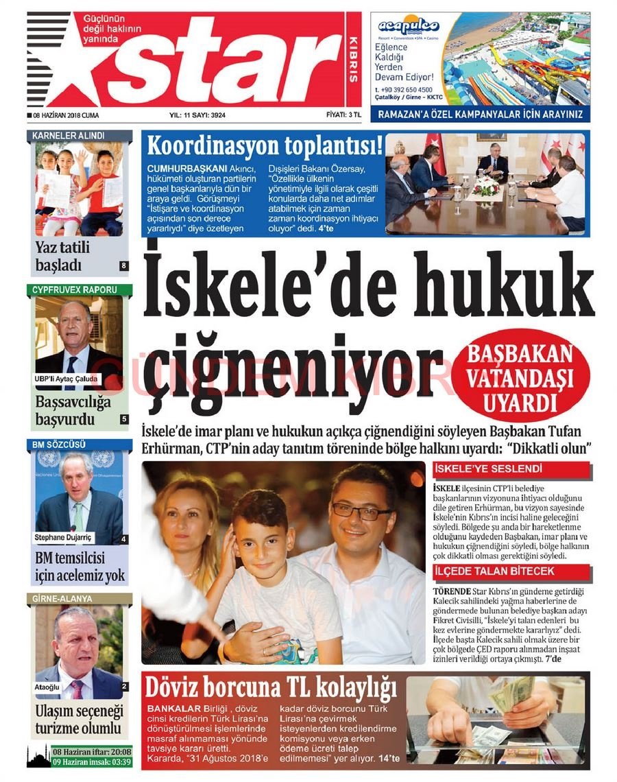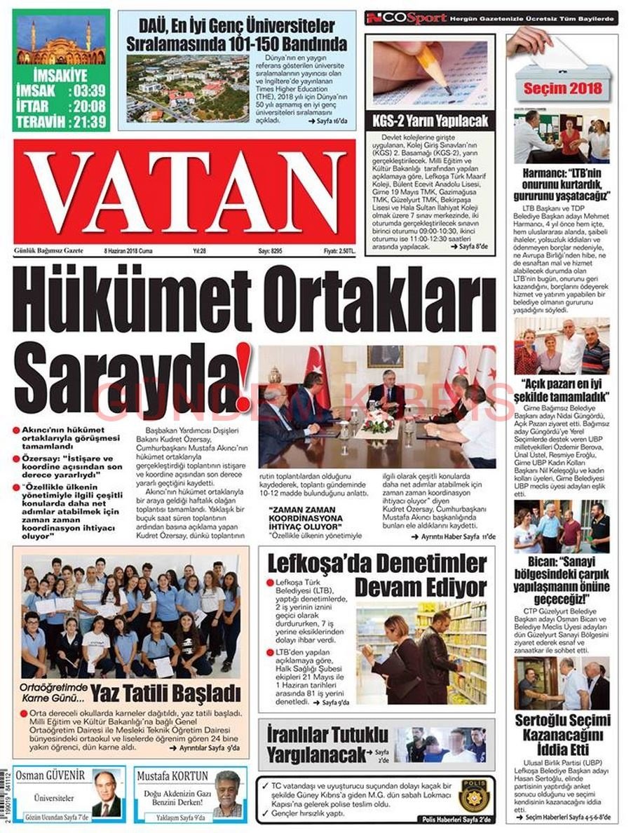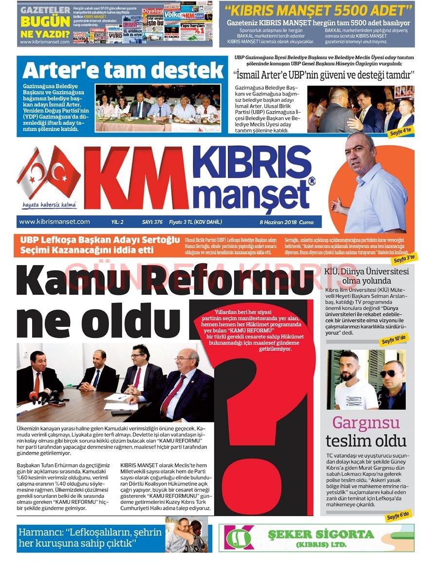 KKTC Gazete Manşetleri 8 Haziran 2018