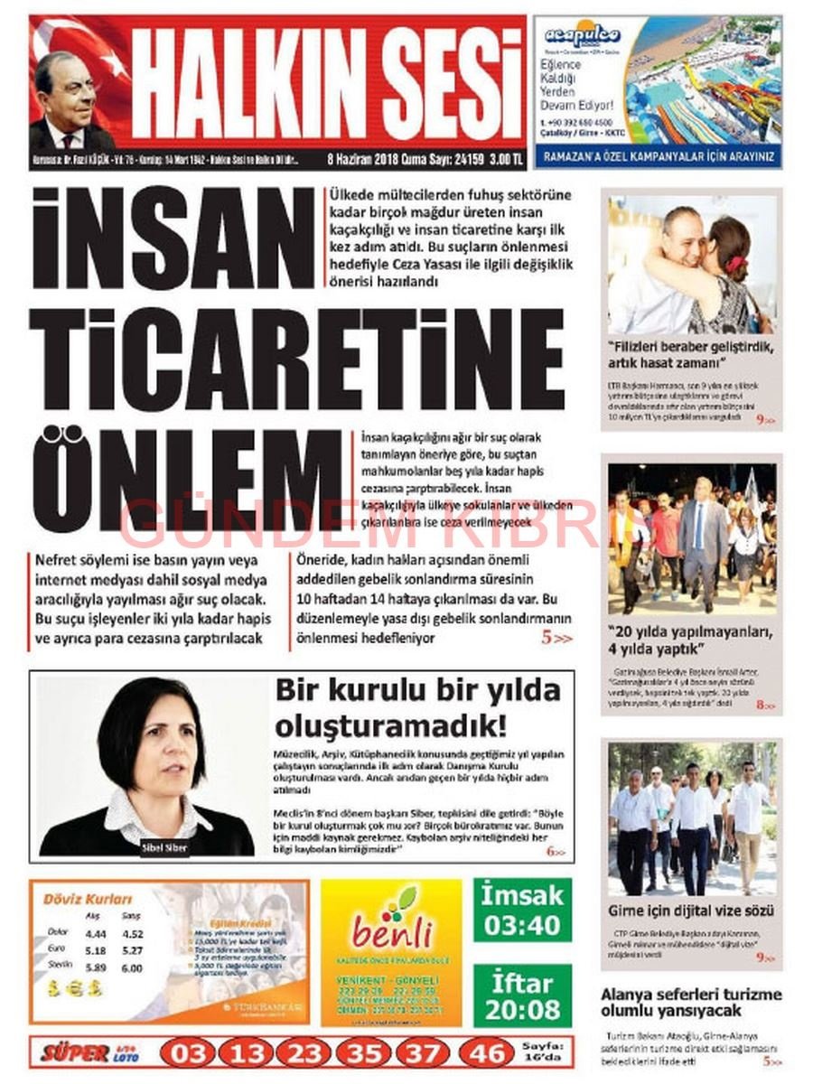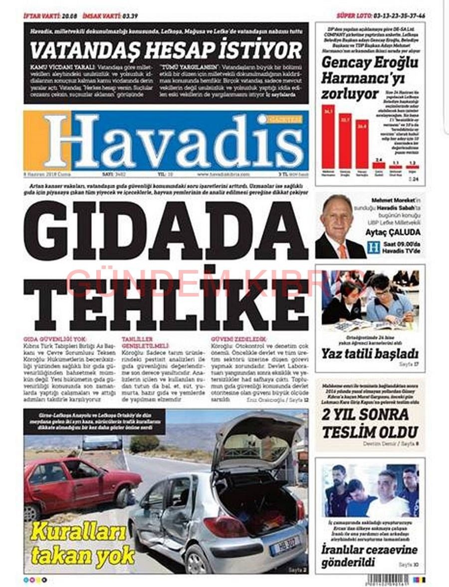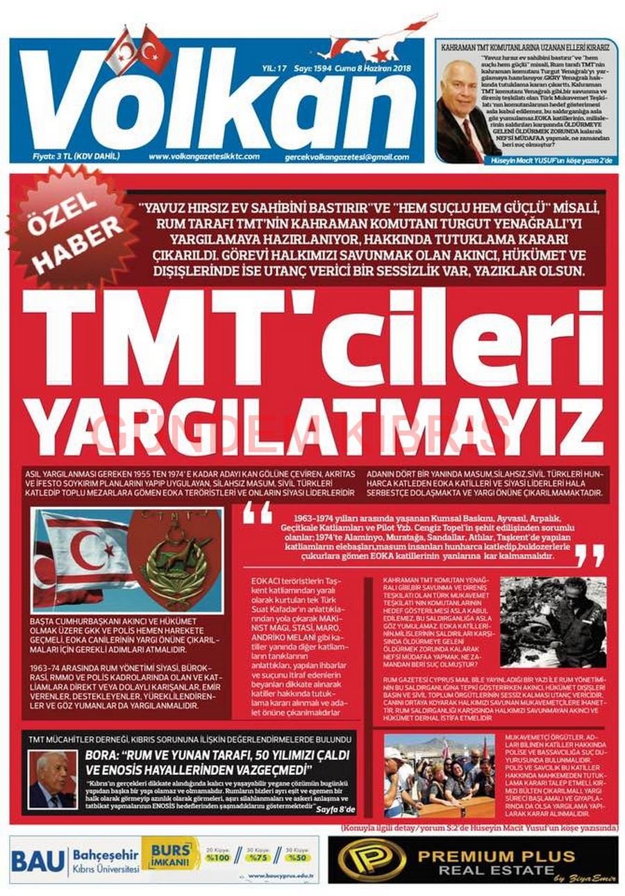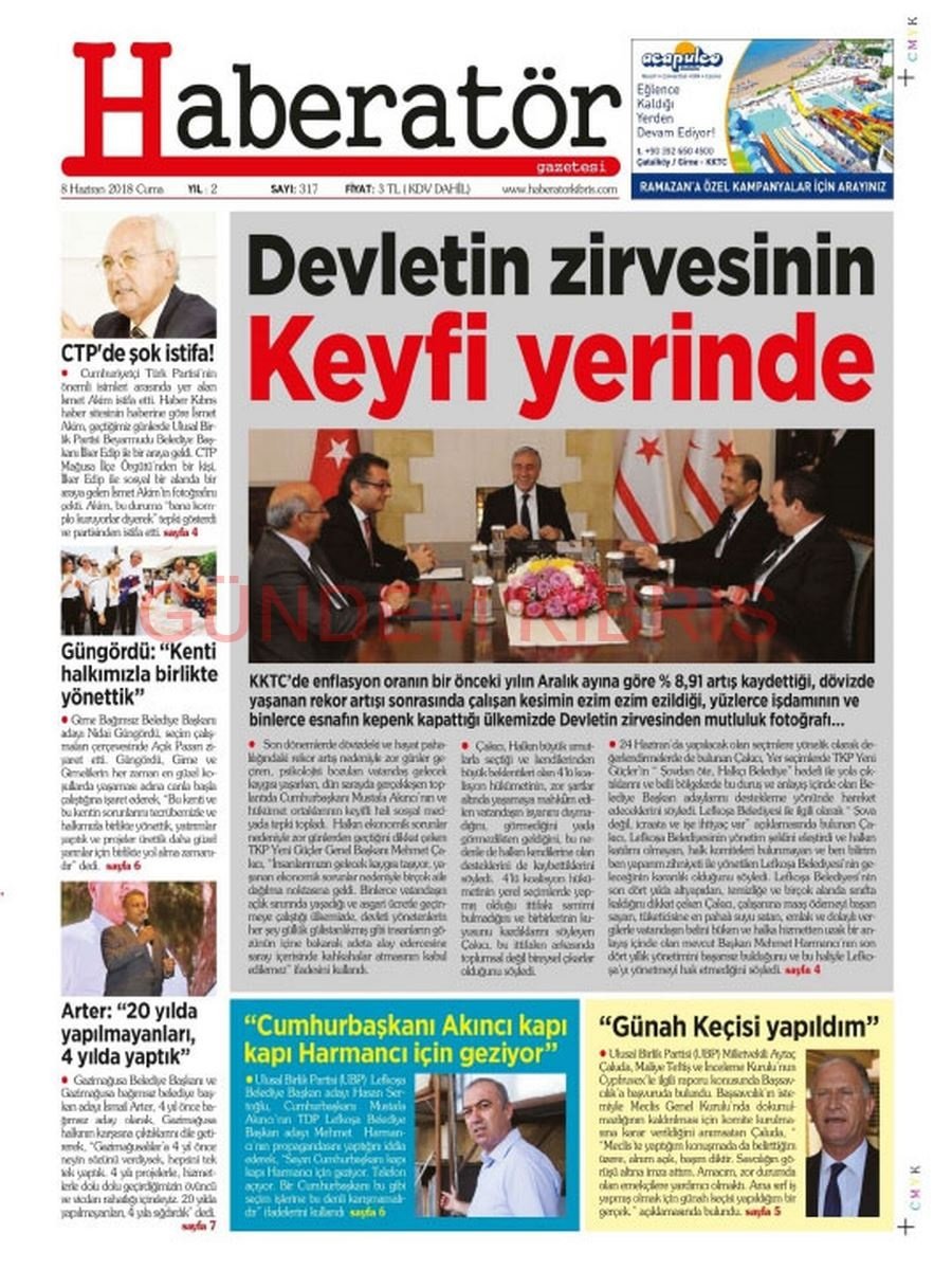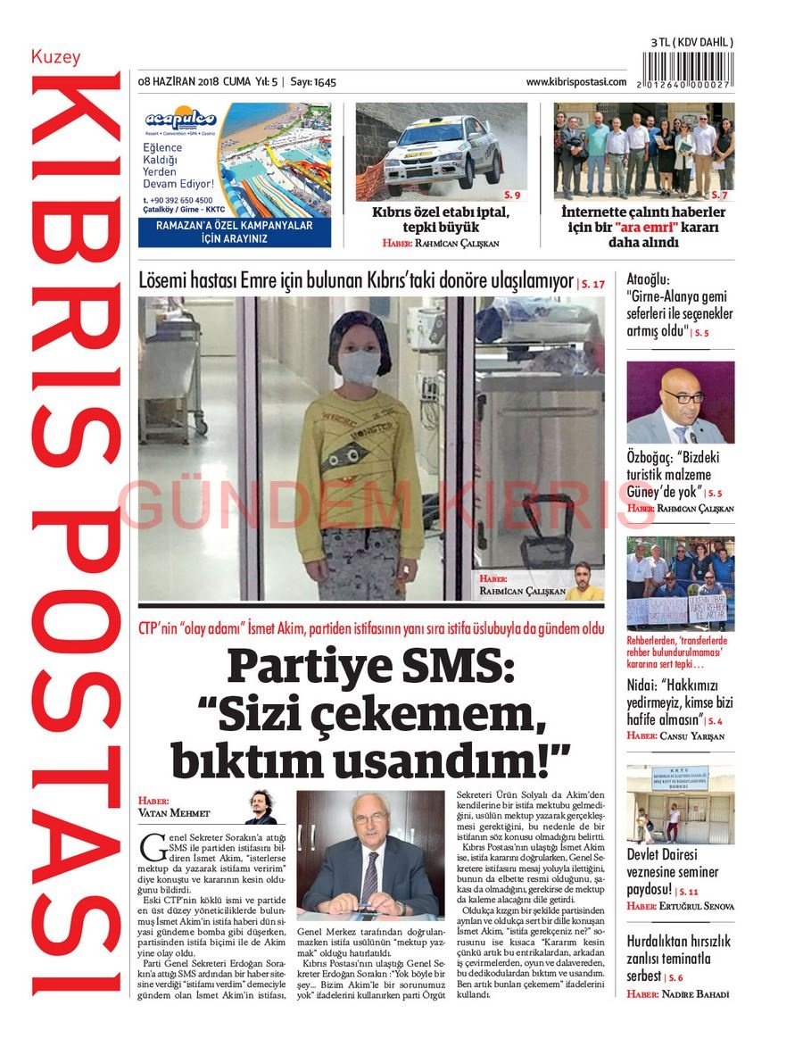 KKTC Gazete Manşetleri 8 Haziran 2018