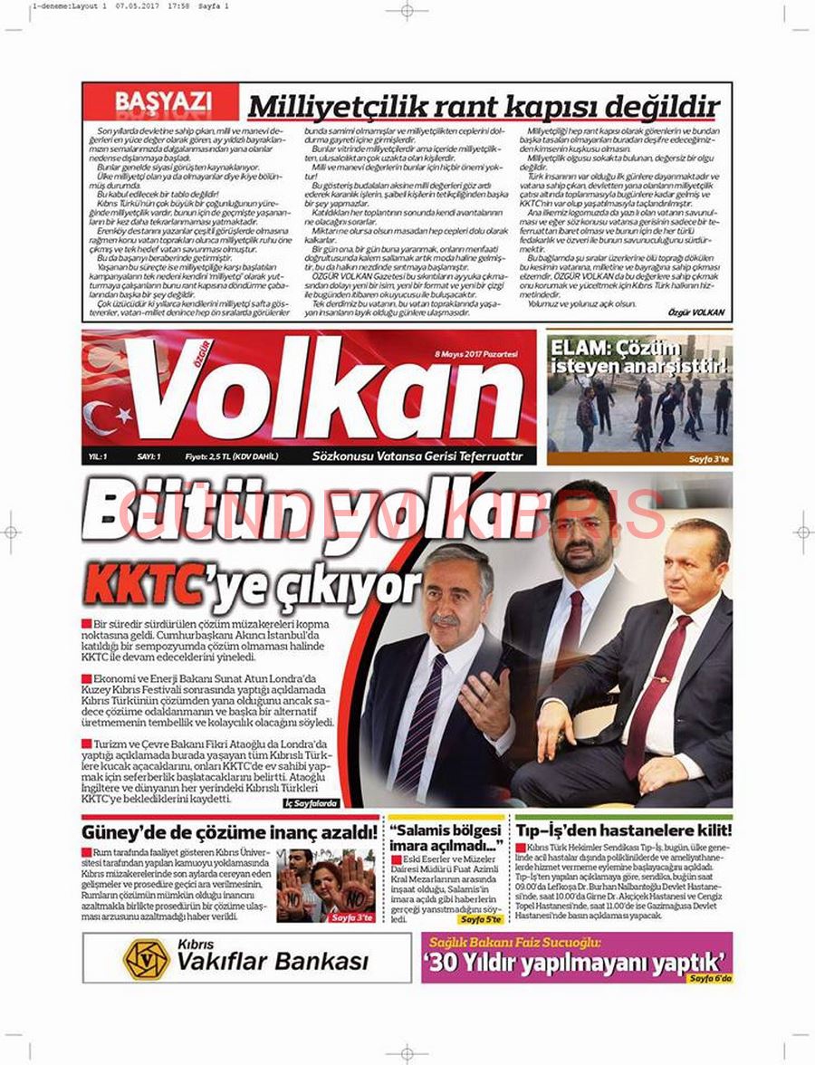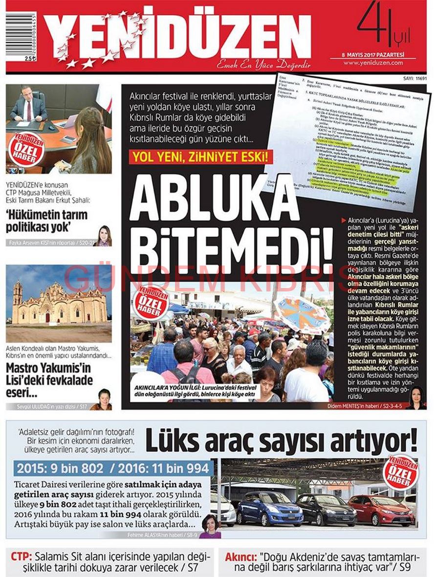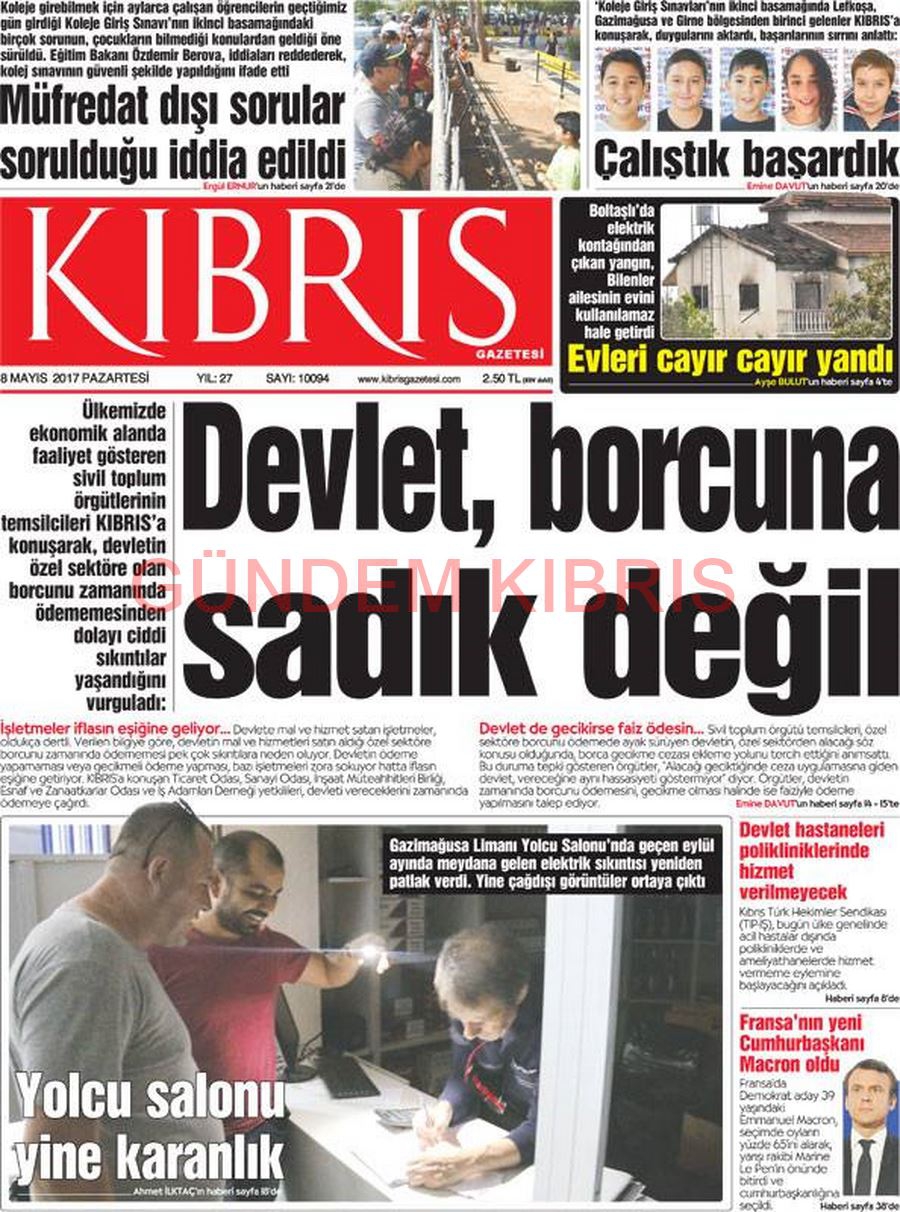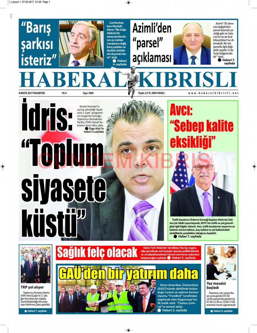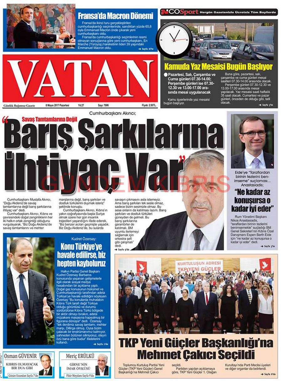 KKTC Gazete Manşetleri 8 Mayıs 2017