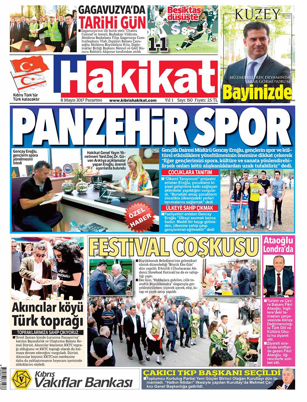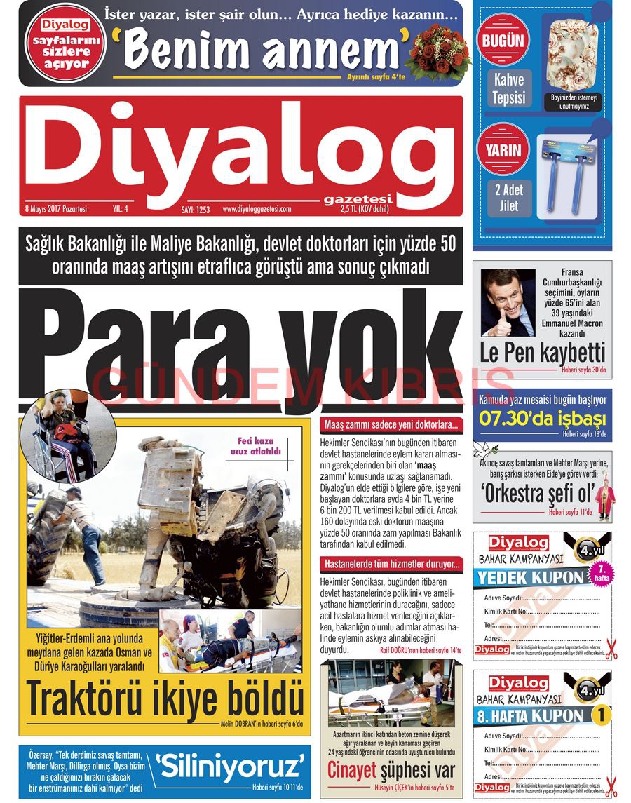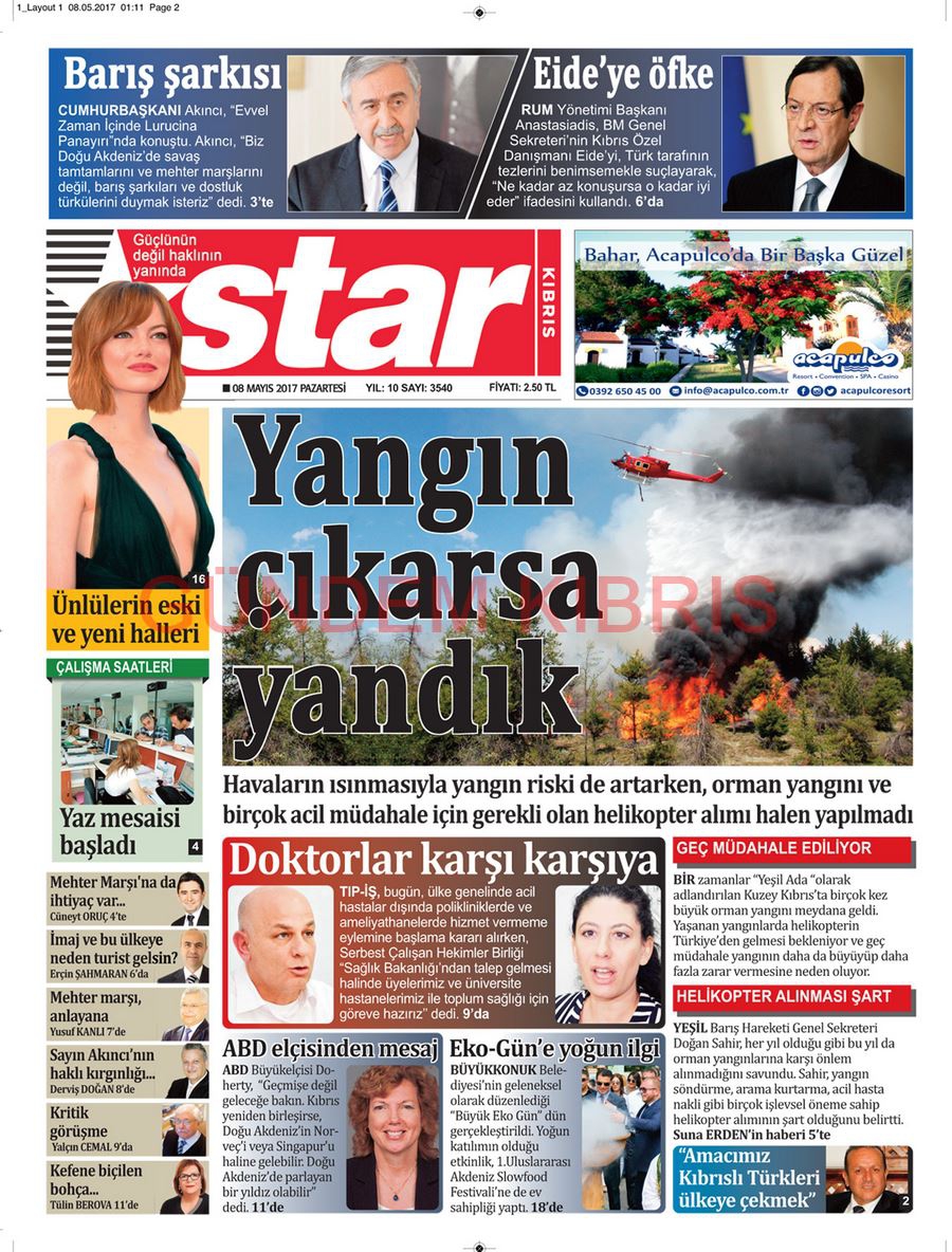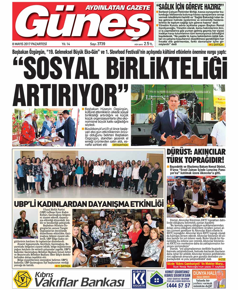 KKTC Gazete Manşetleri 8 Mayıs 2017