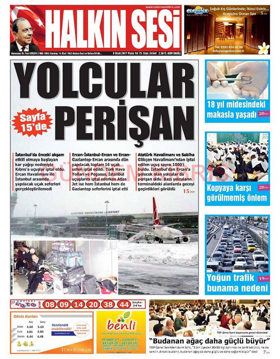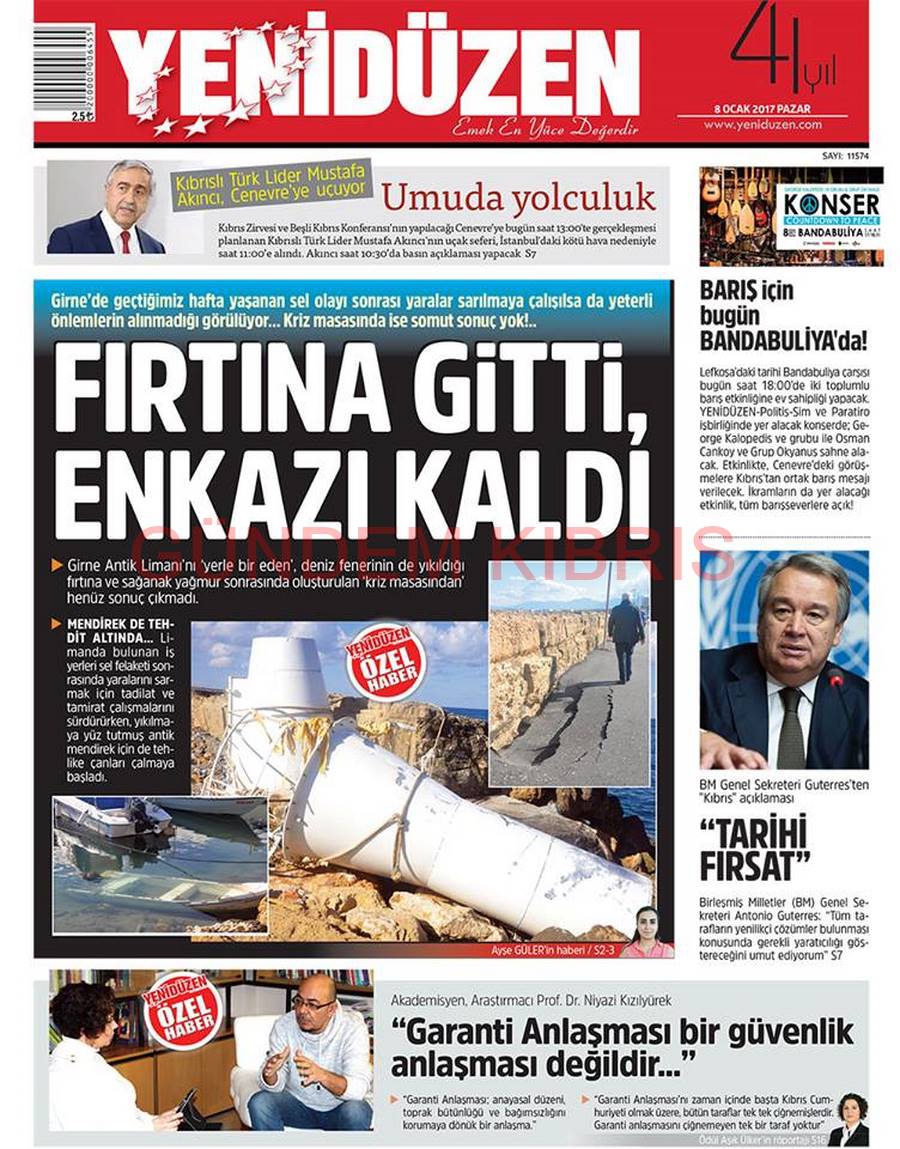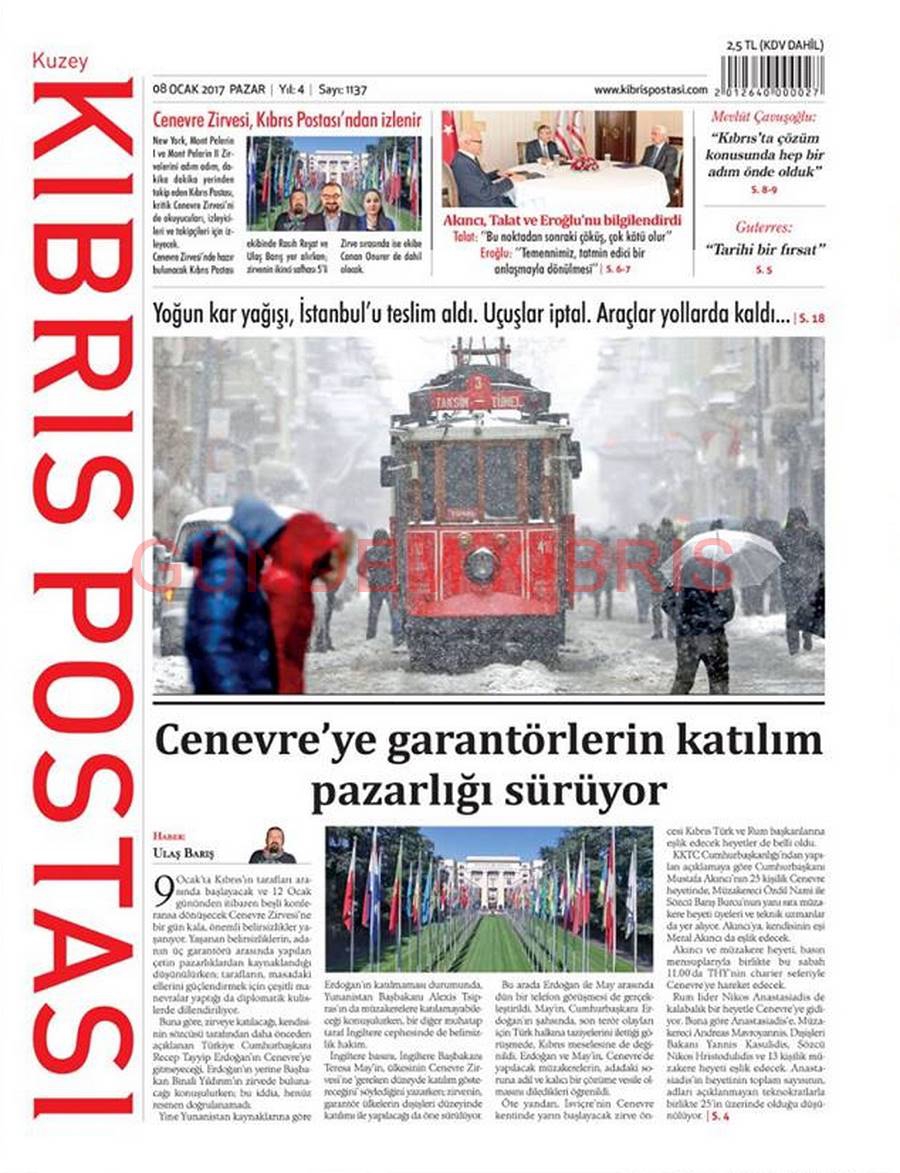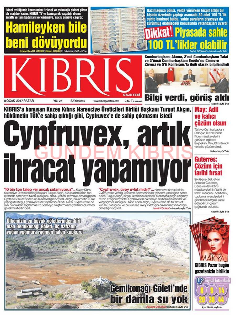 KKTC Gazete Manşetleri 8 Ocak 2017
