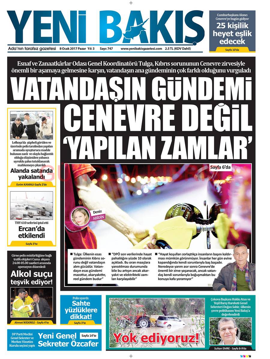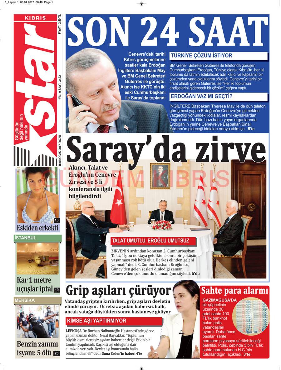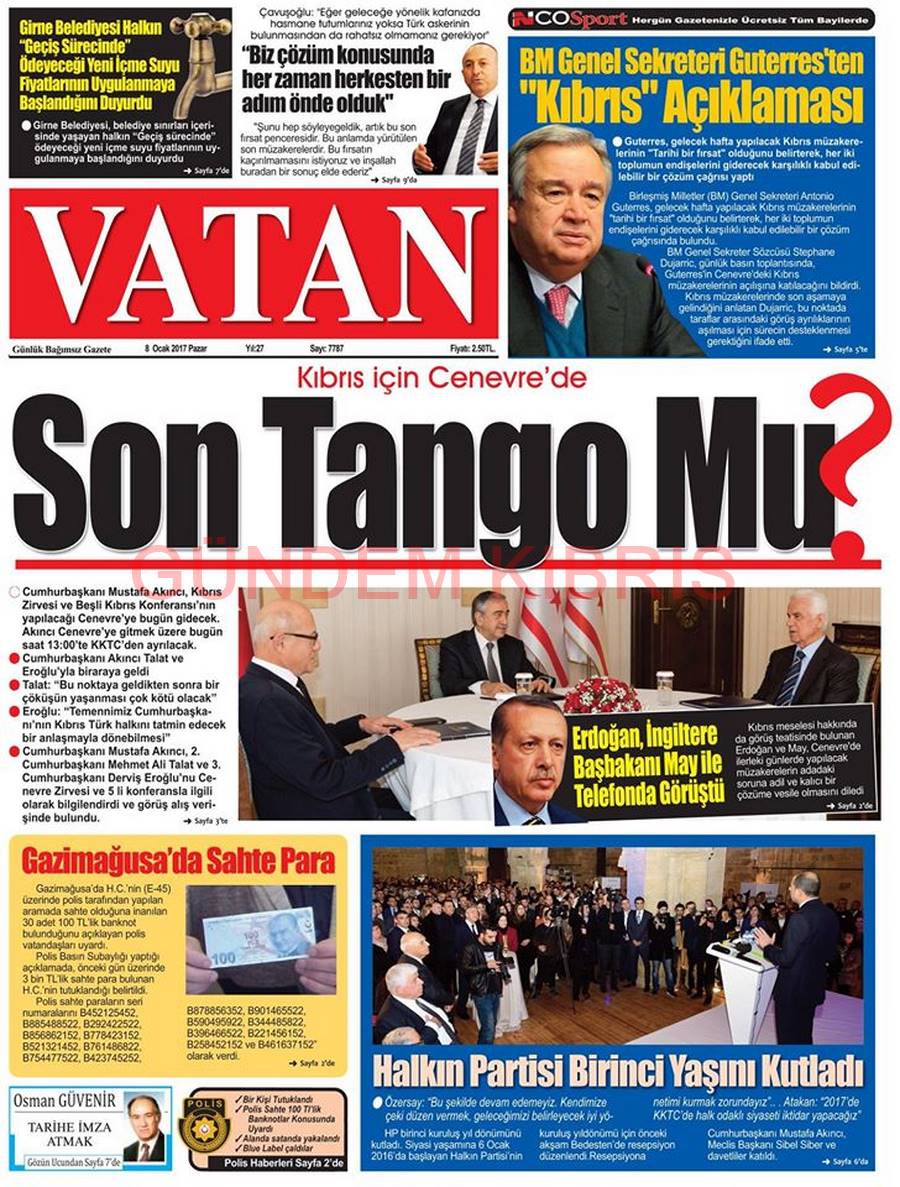 KKTC Gazete Manşetleri 8 Ocak 2017