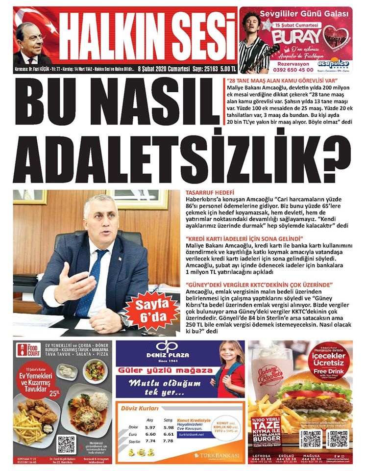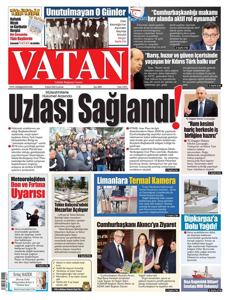 KKTC Gazete Manşetleri 8 Şubat 2020