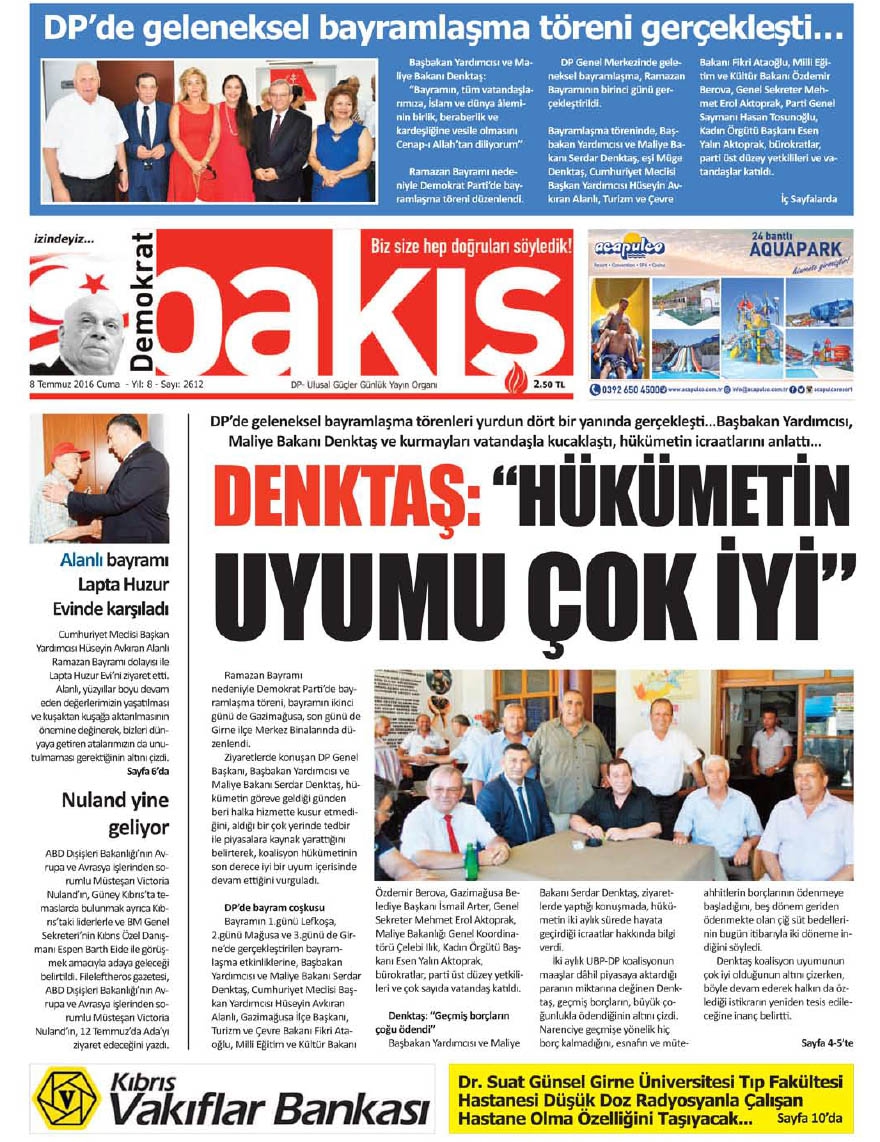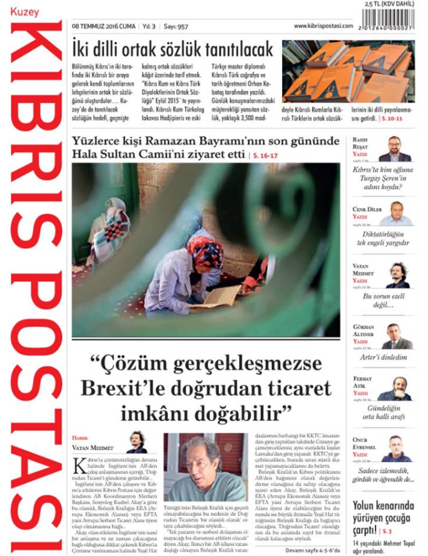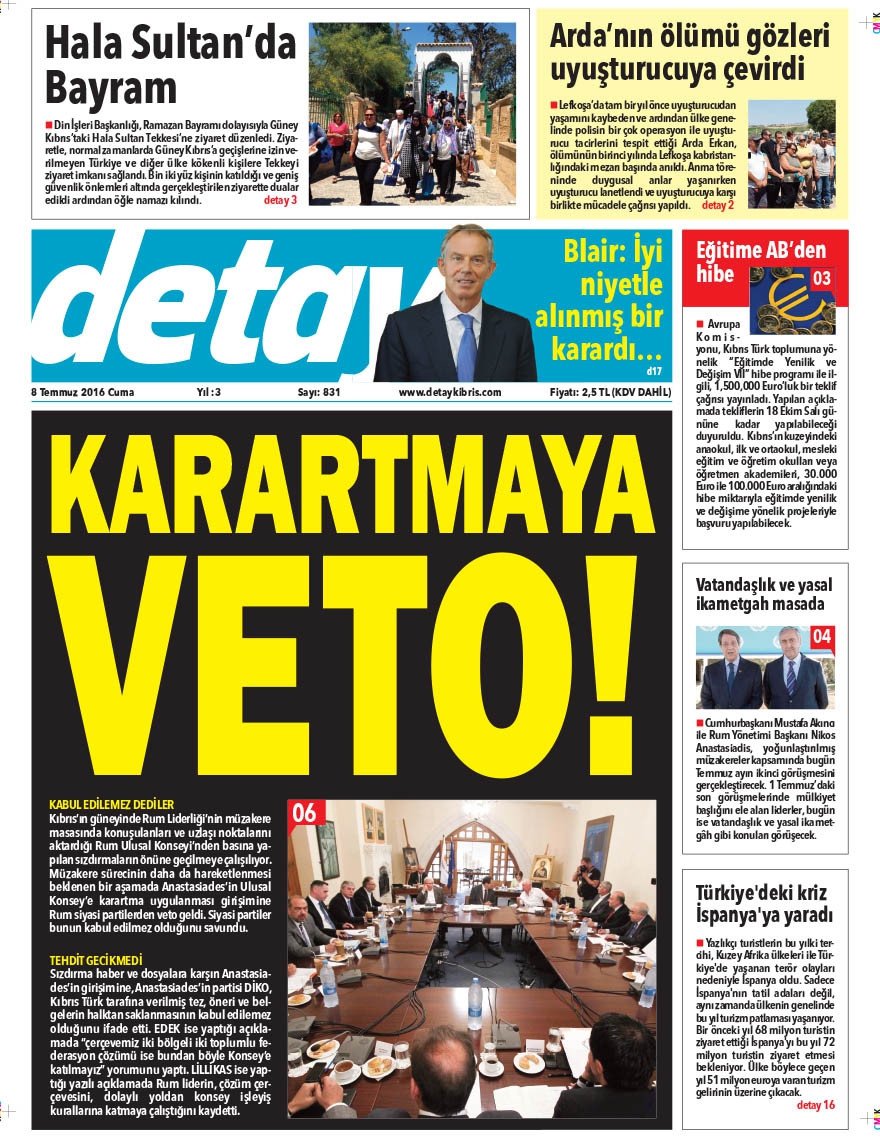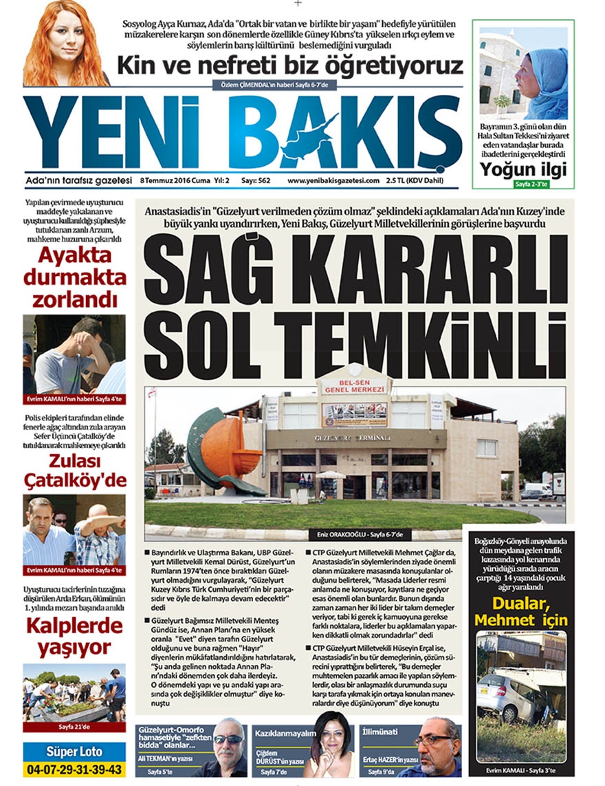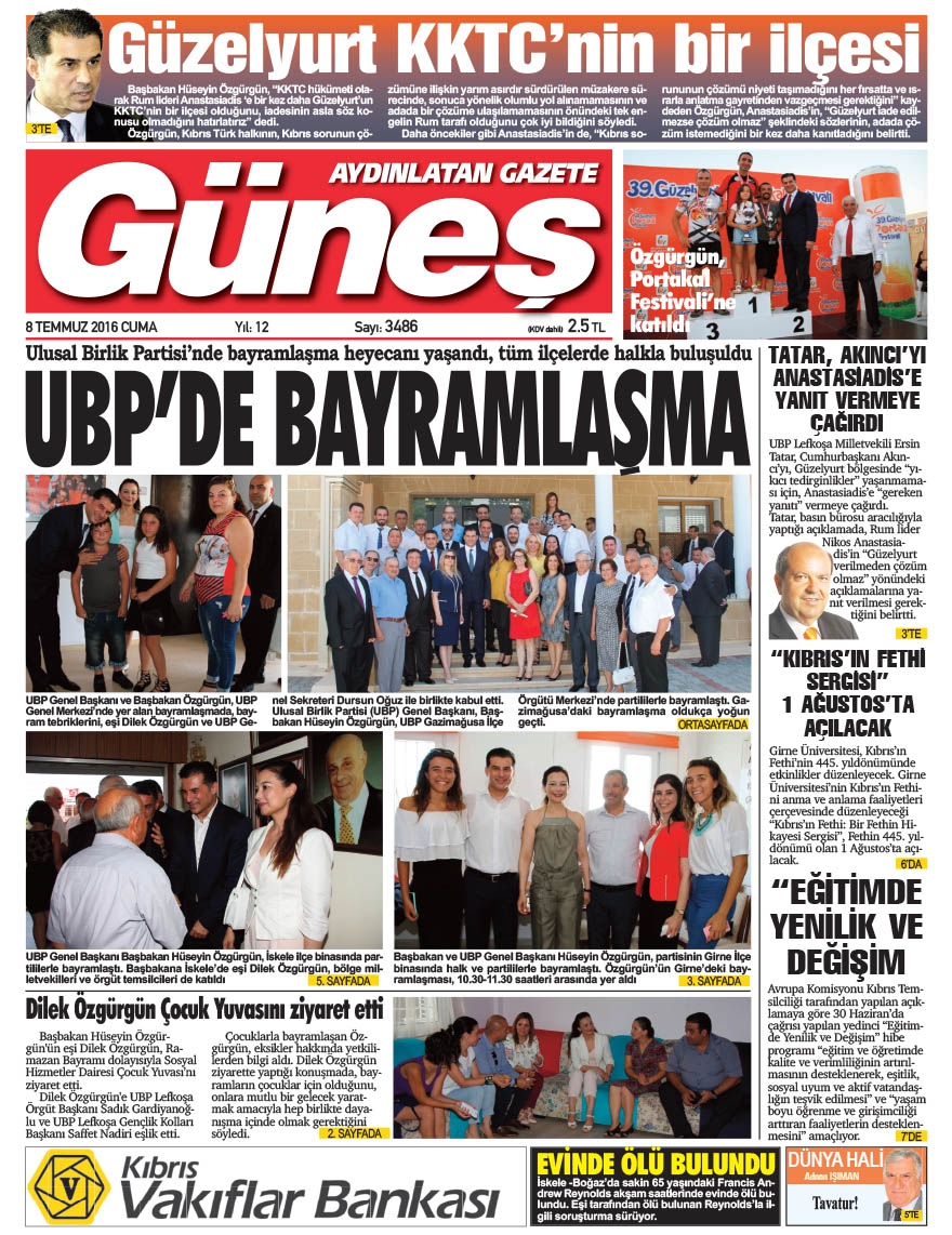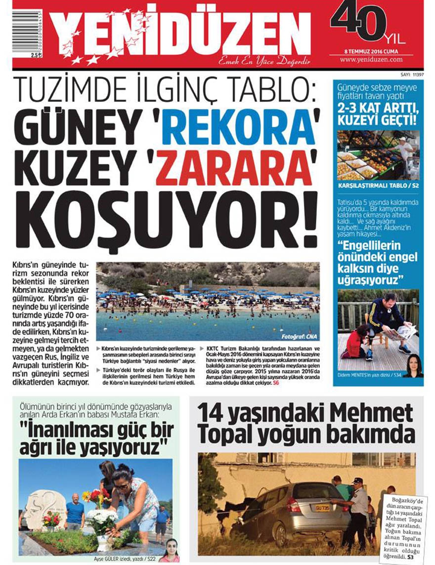 KKTC Gazete Manşetleri 8 Temmuz 2016