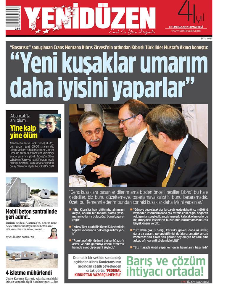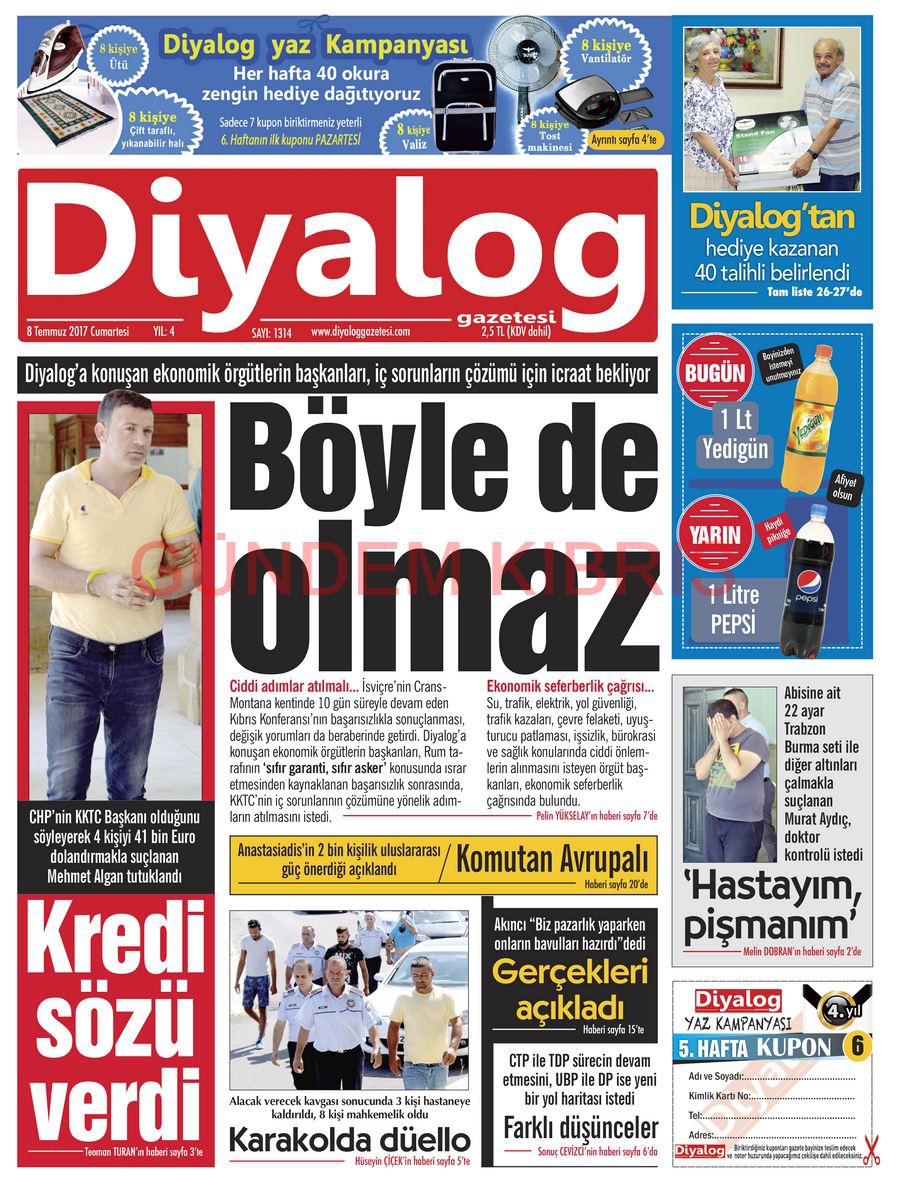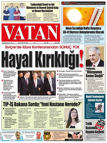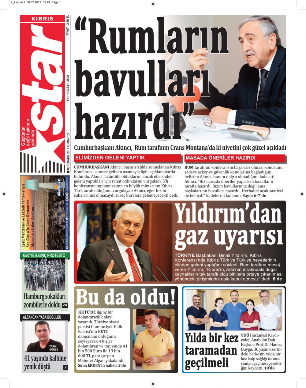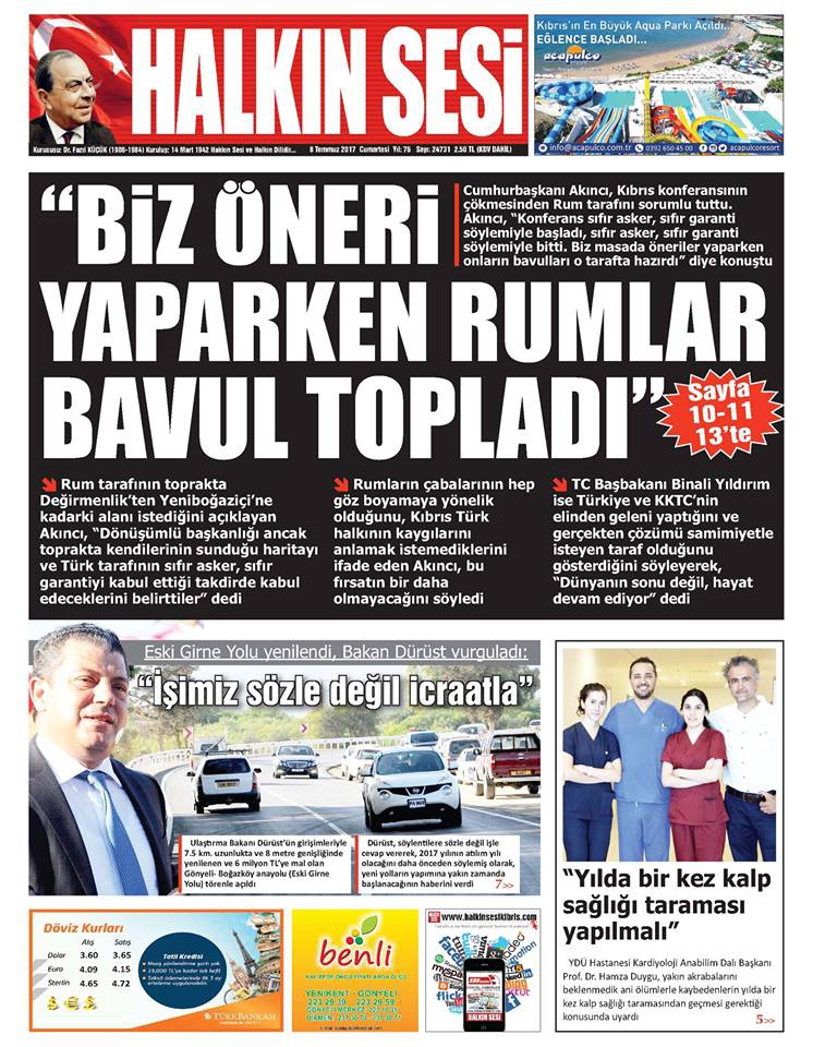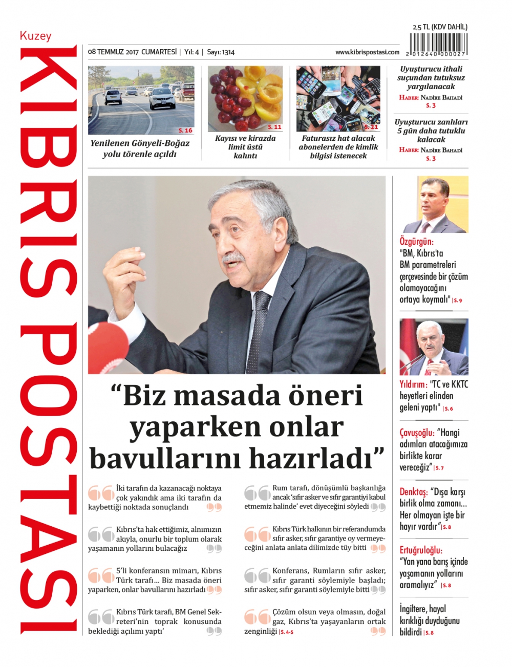 KKTC Gazete Manşetleri 8 Temmuz 2017