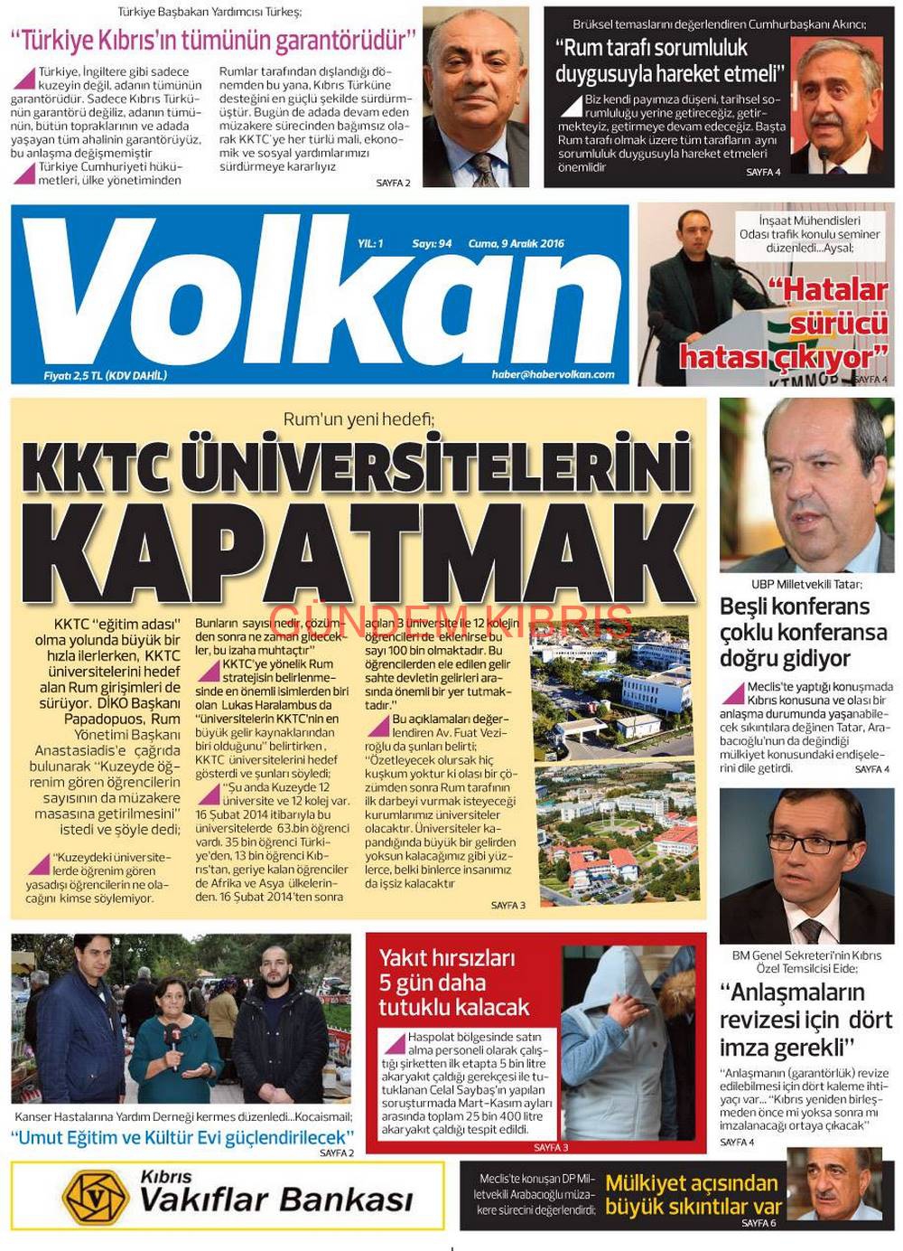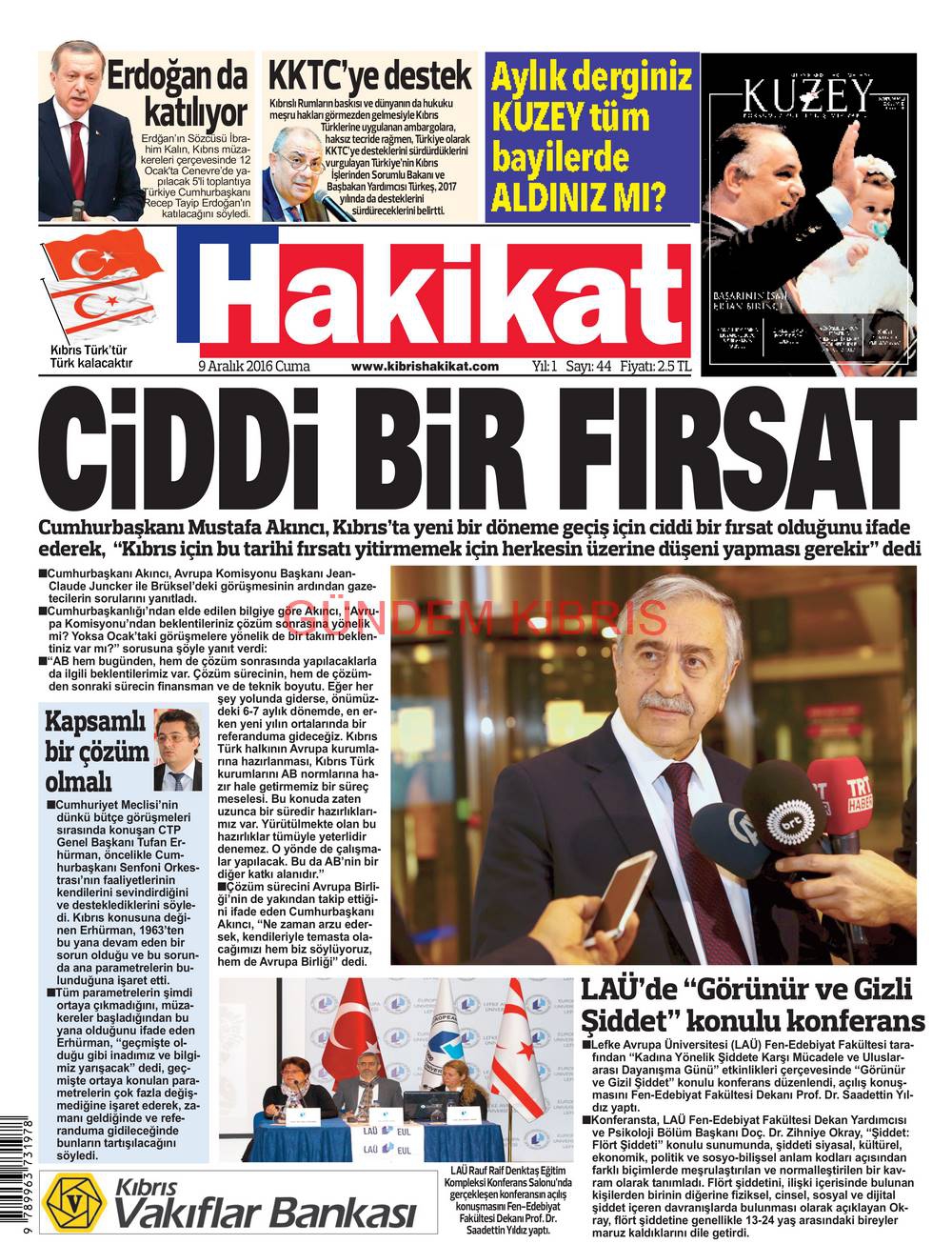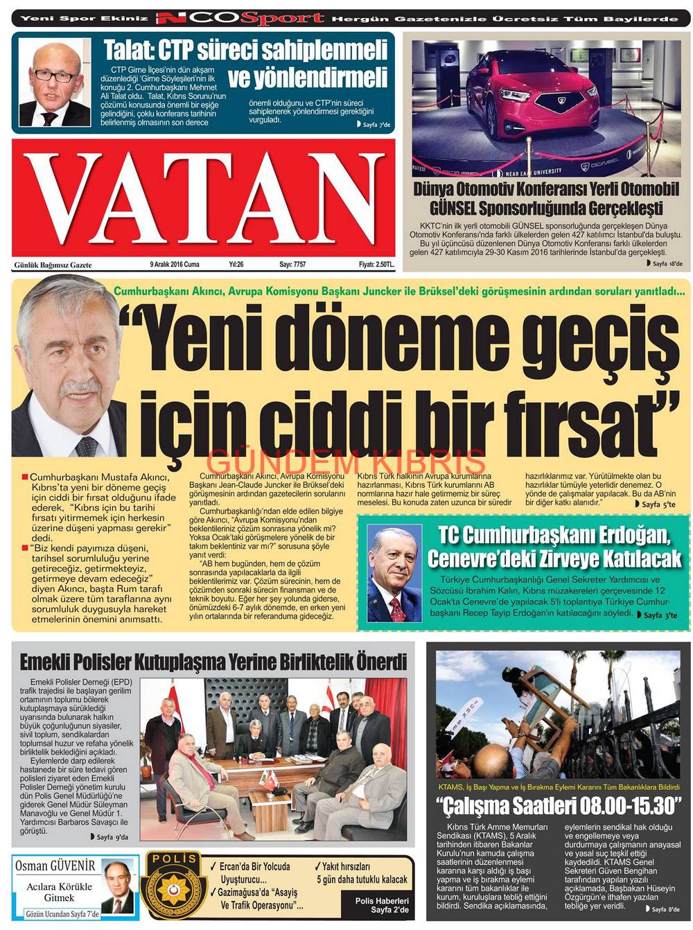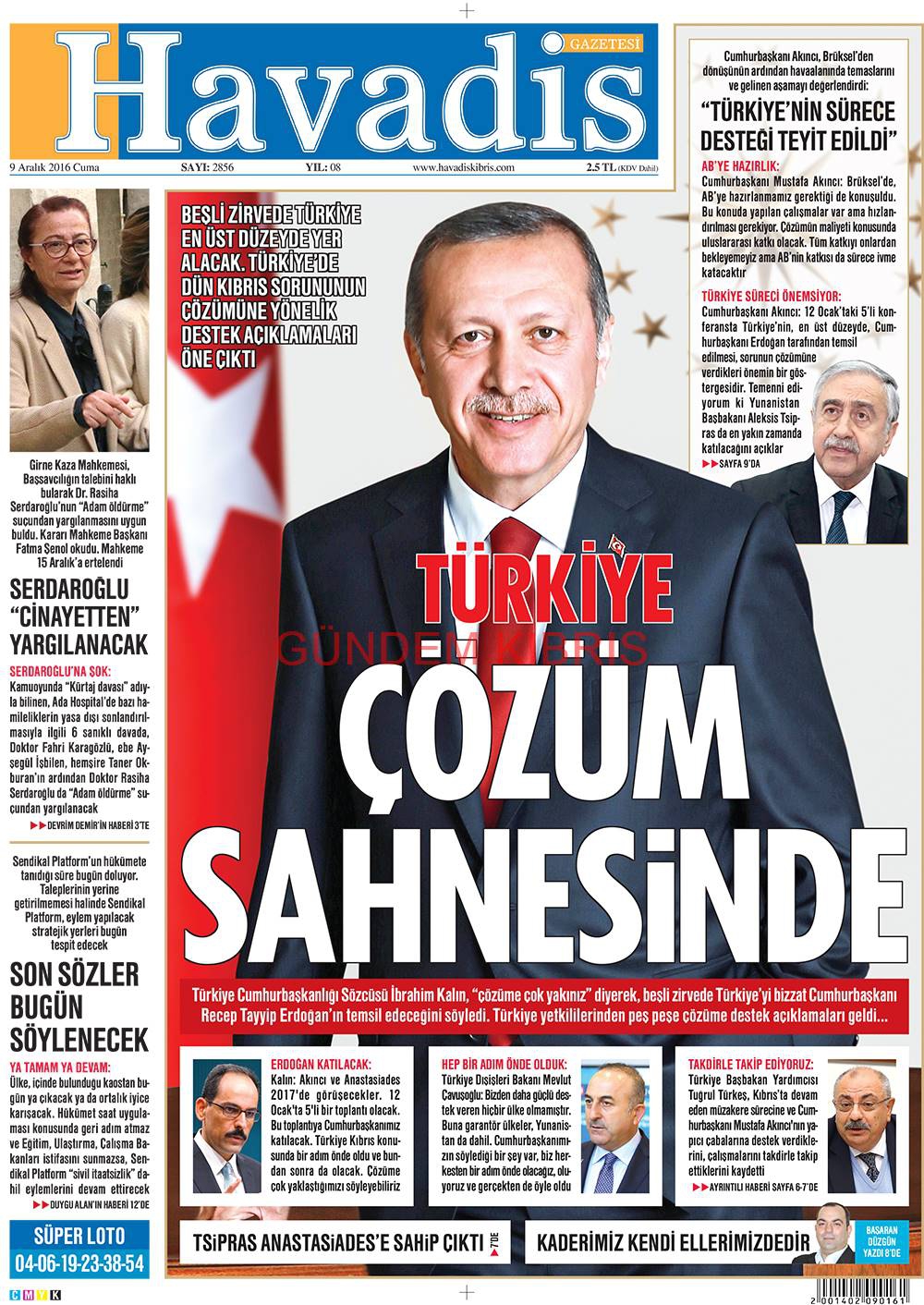 KKTC Gazete Manşetleri 9 Aralık 2016