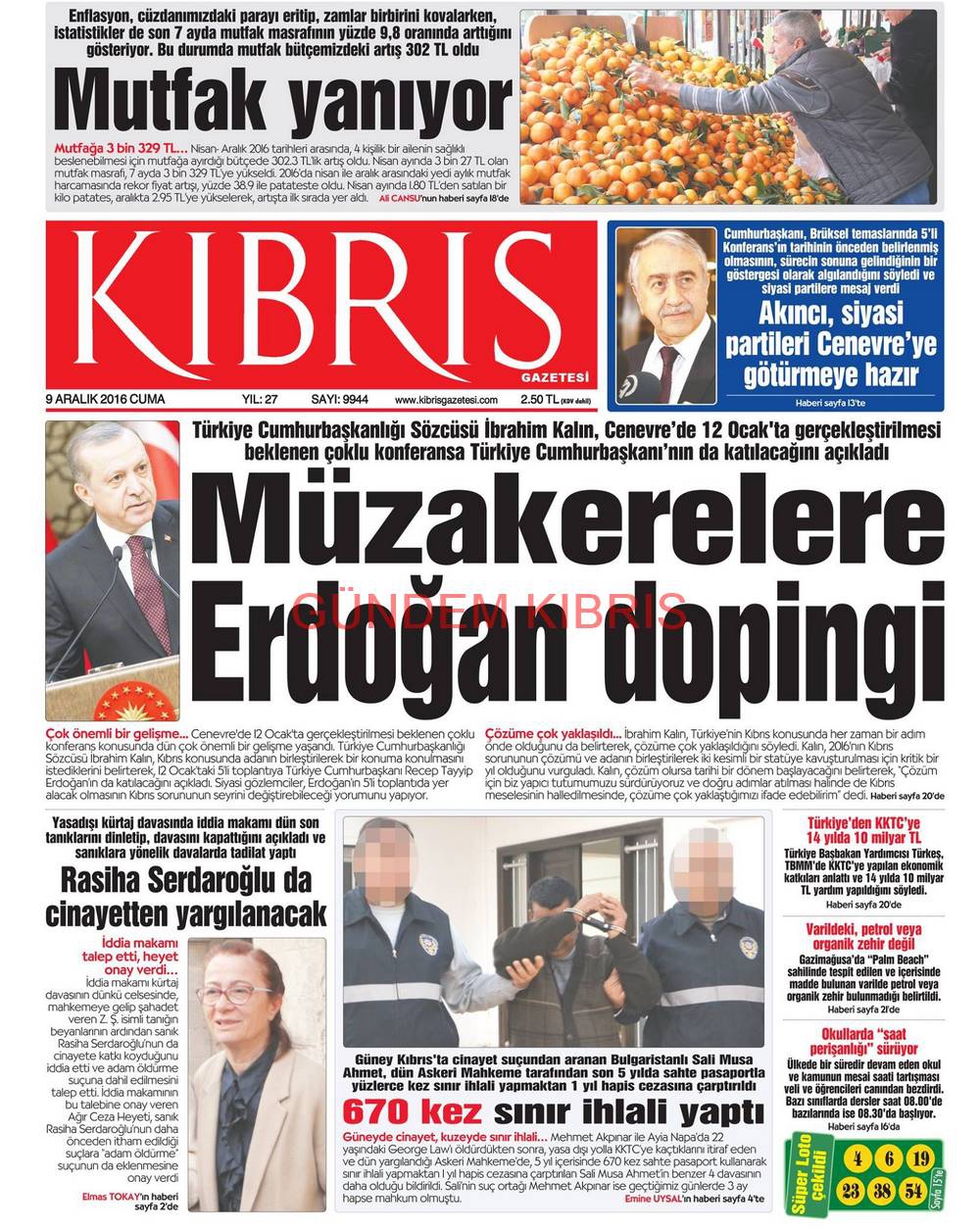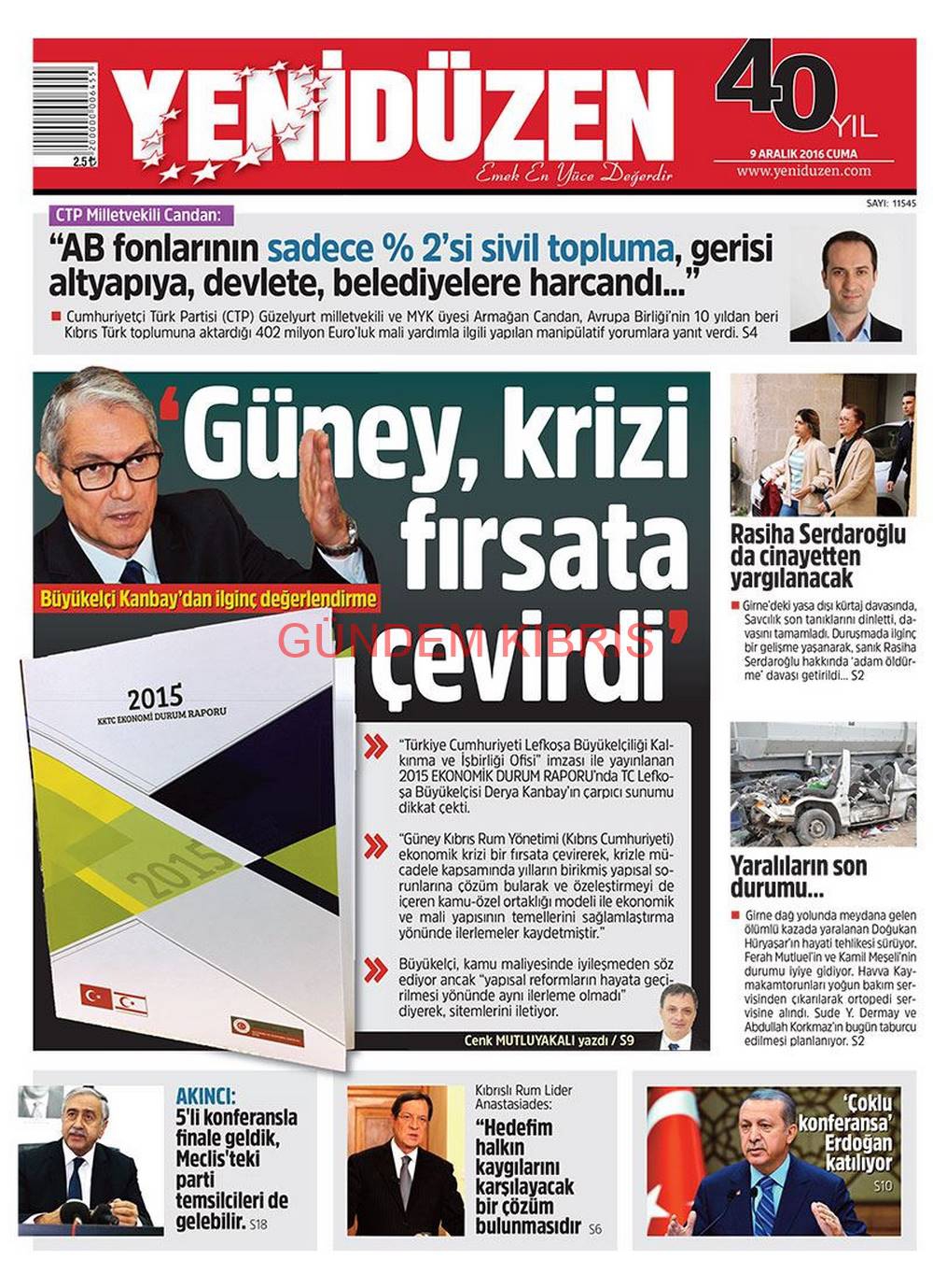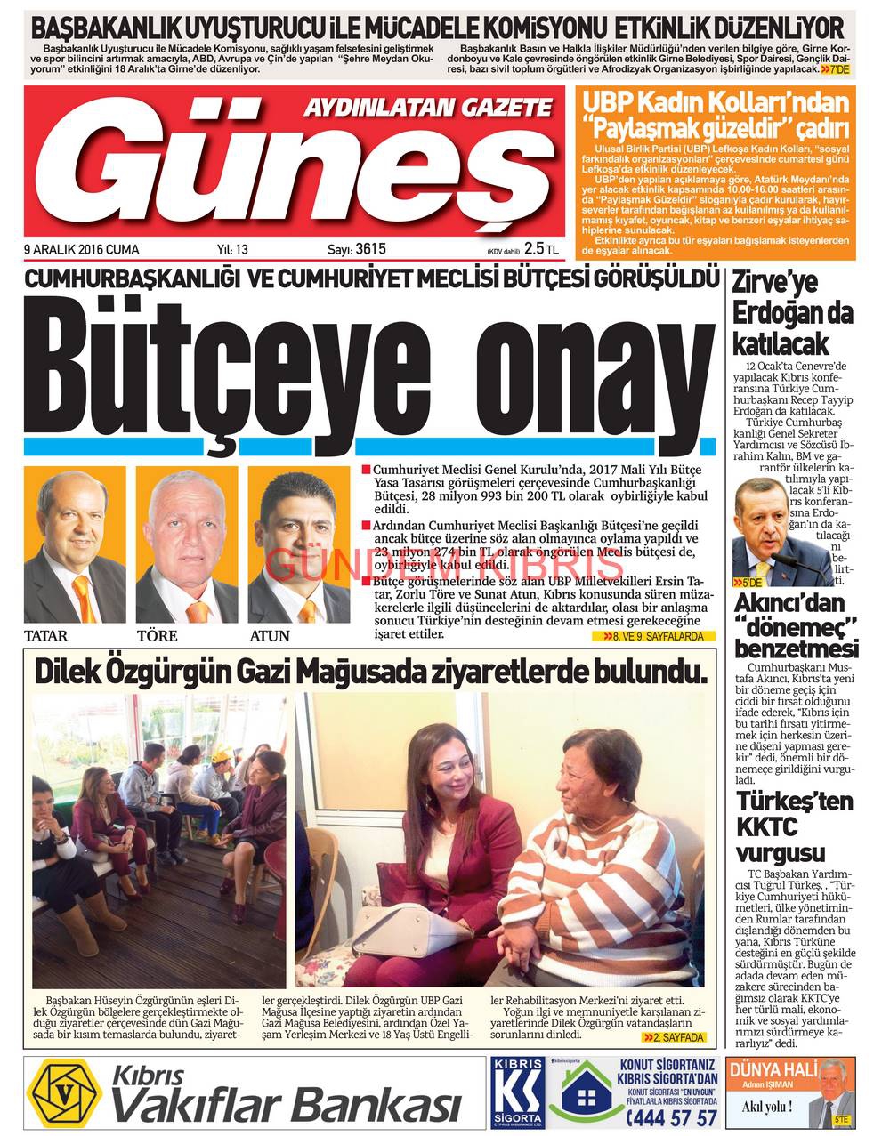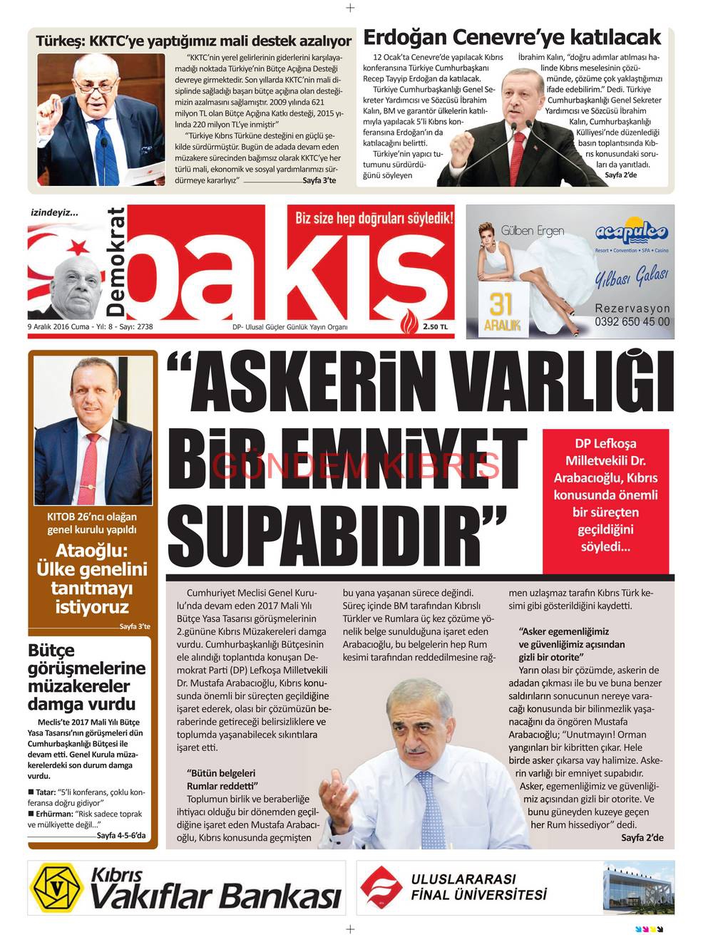 KKTC Gazete Manşetleri 9 Aralık 2016
