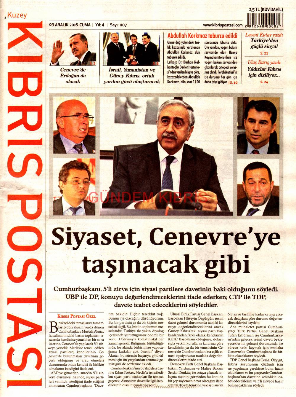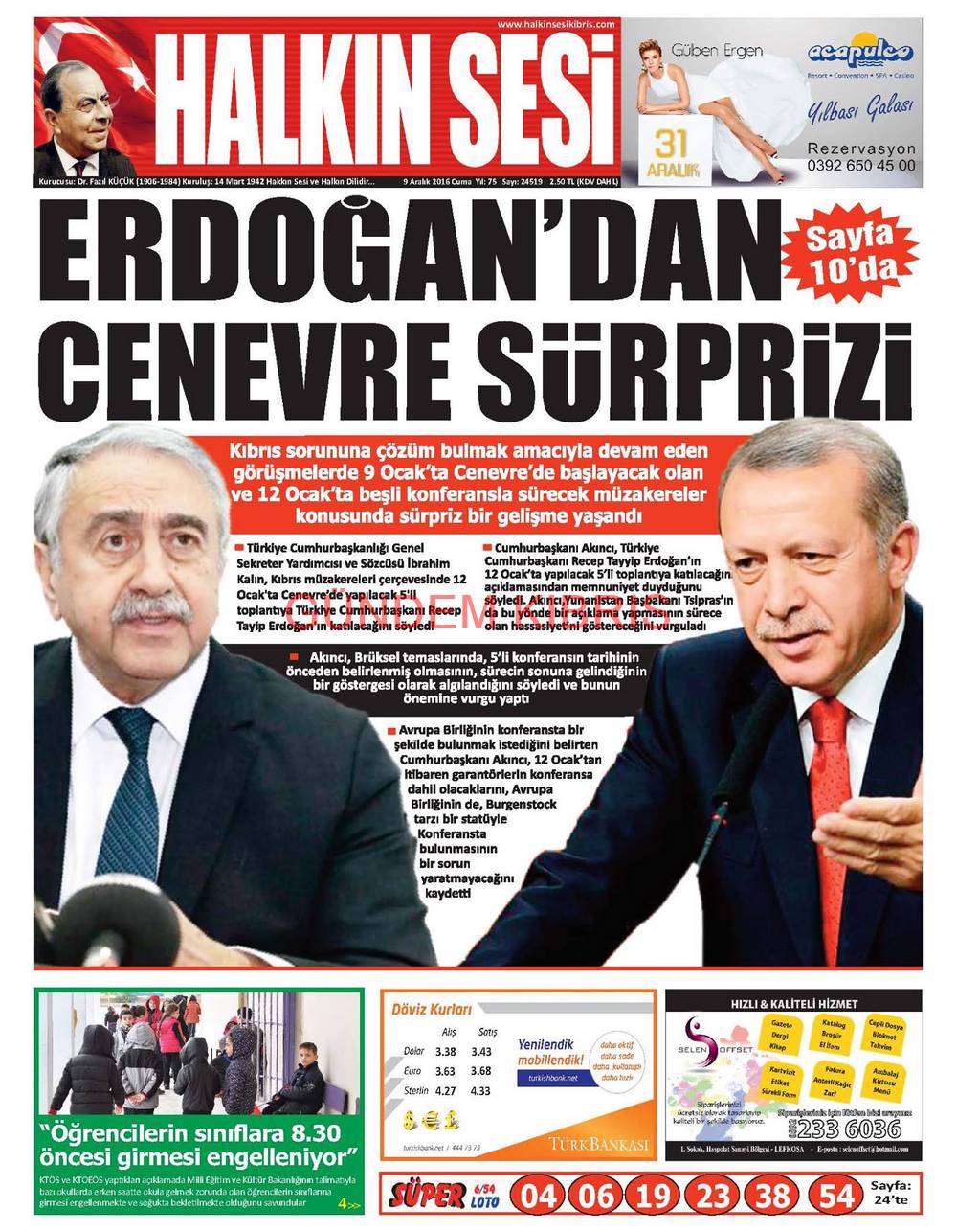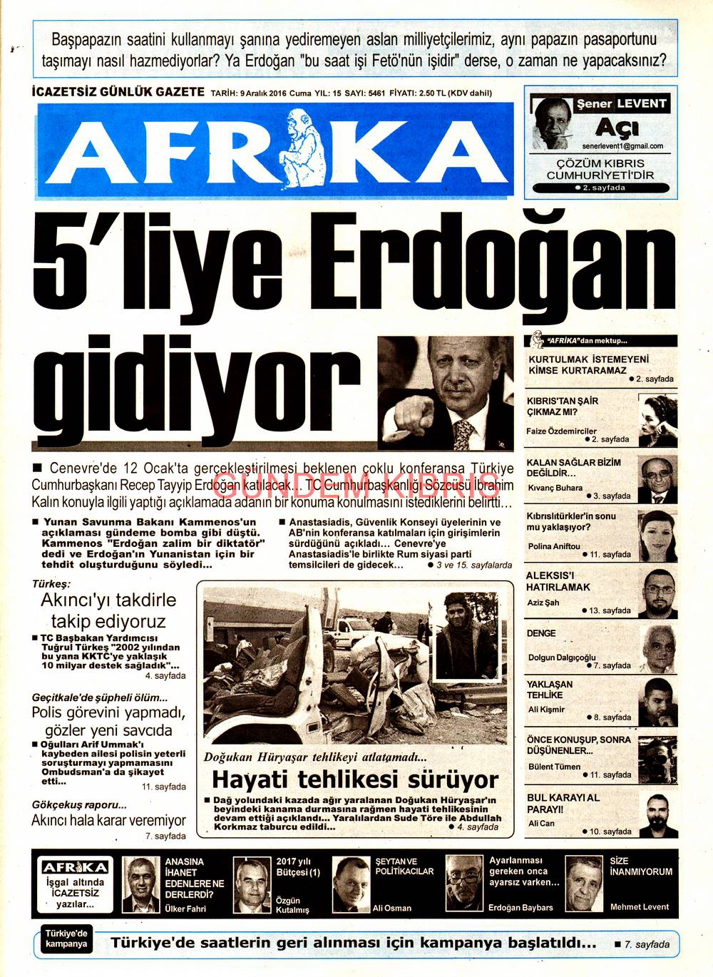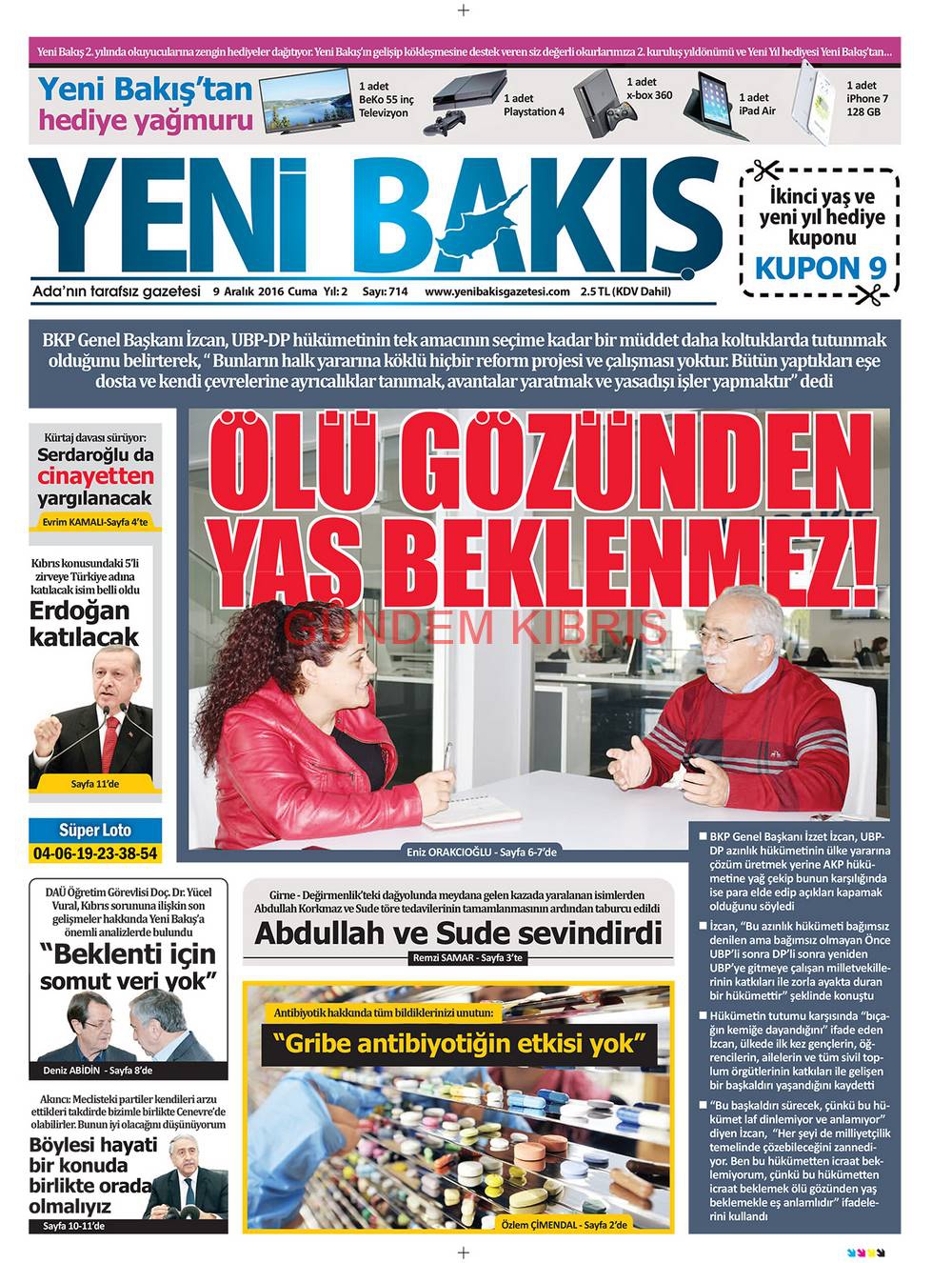 KKTC Gazete Manşetleri 9 Aralık 2016