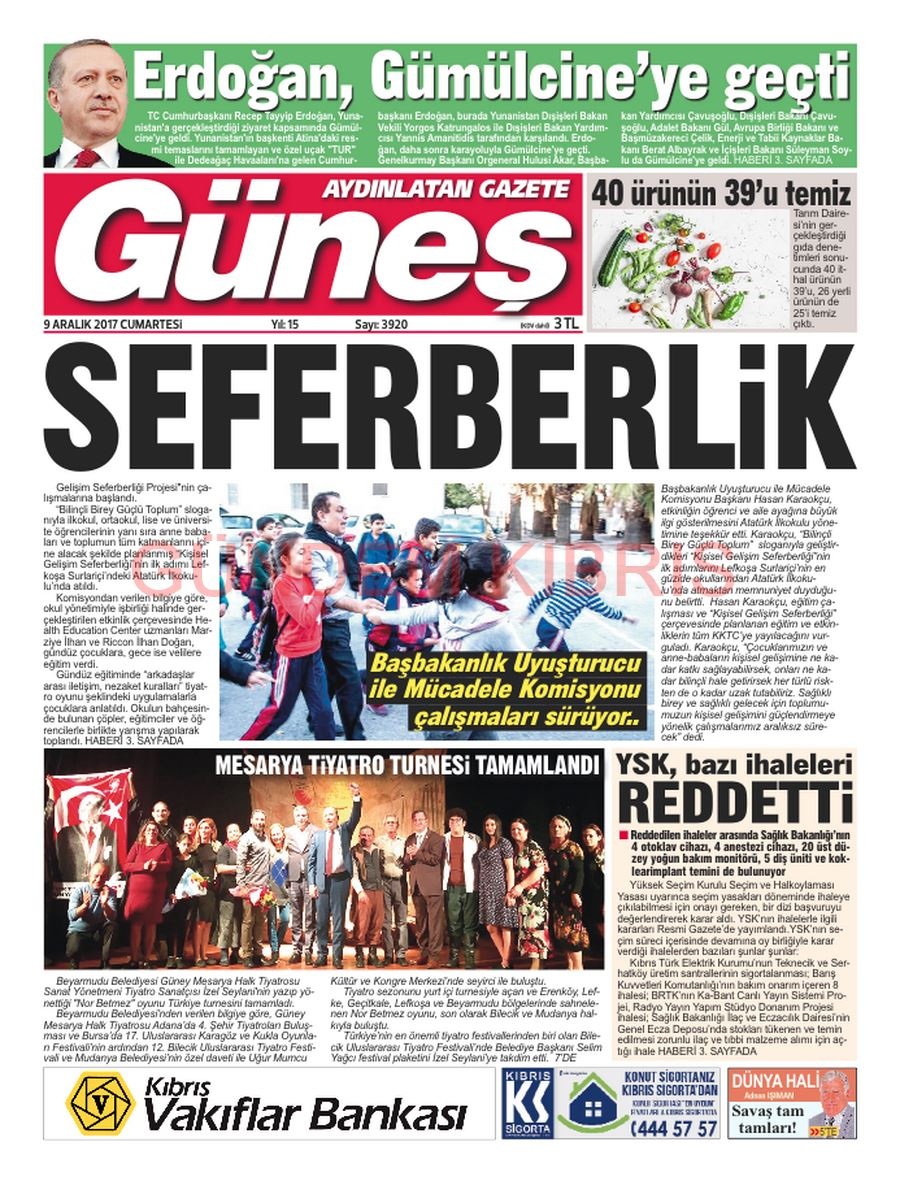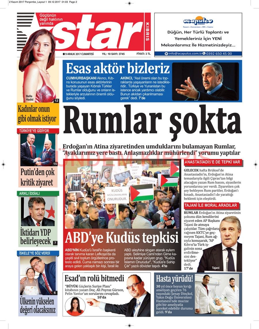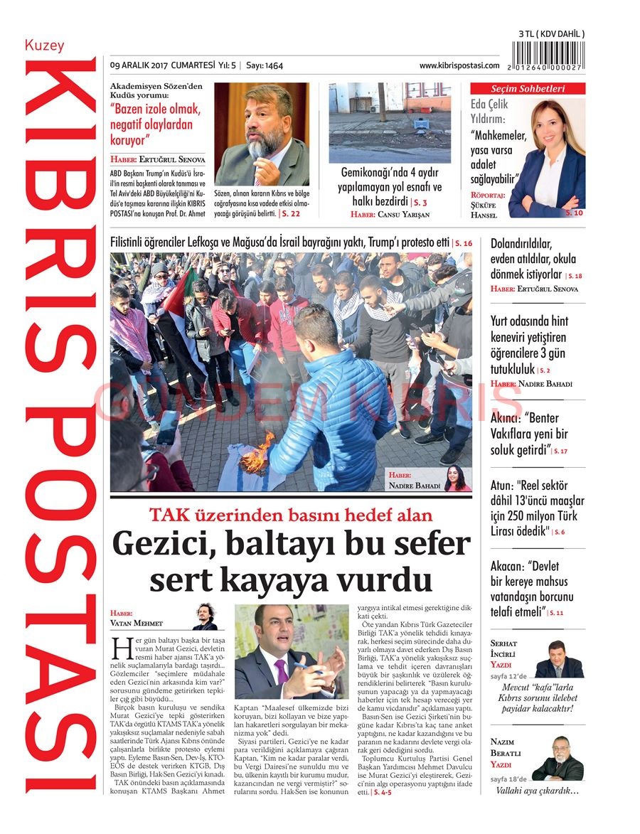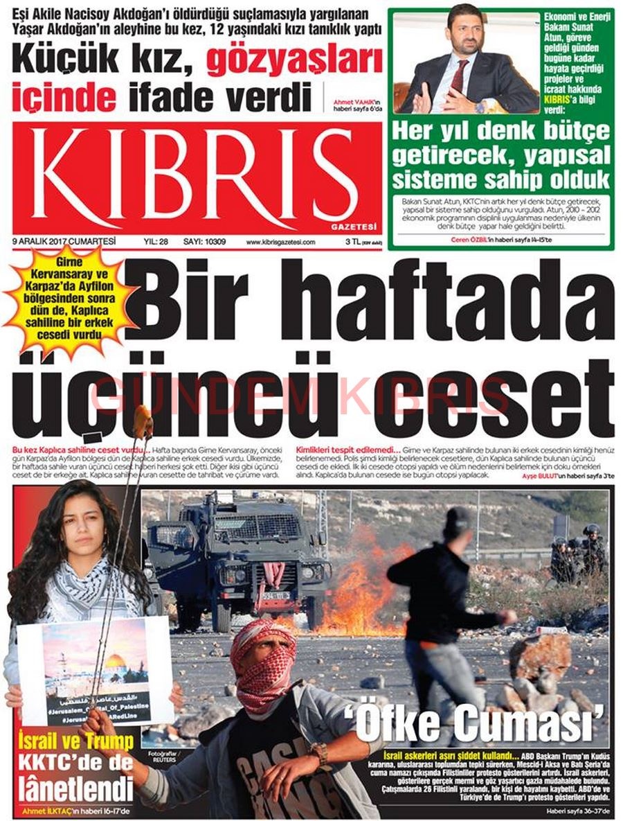 KKTC Gazete Manşetleri 9 Aralık 2017