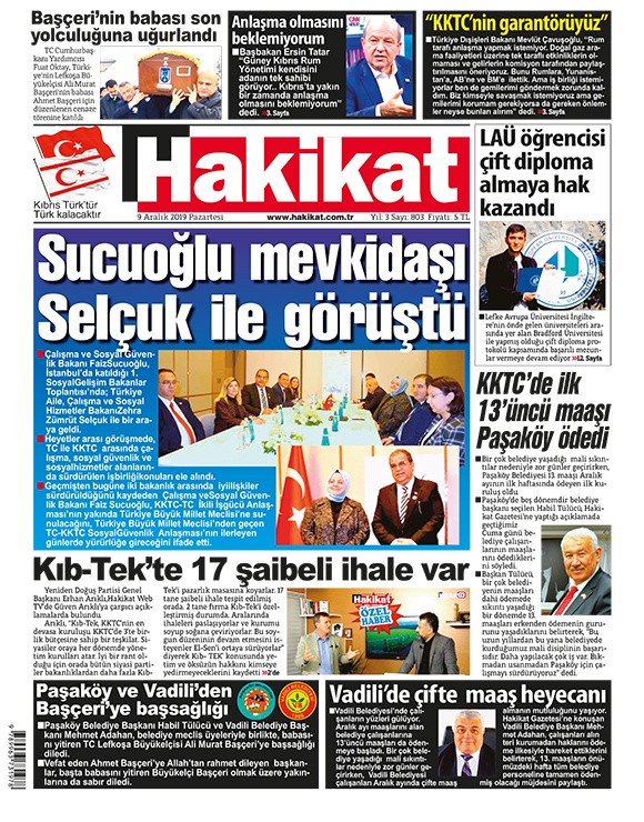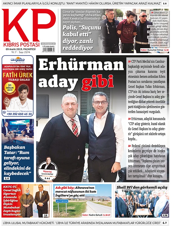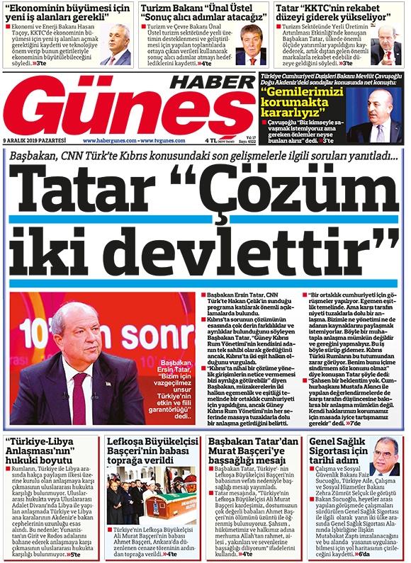 KKTC Gazete Manşetleri -9 Aralık 2019