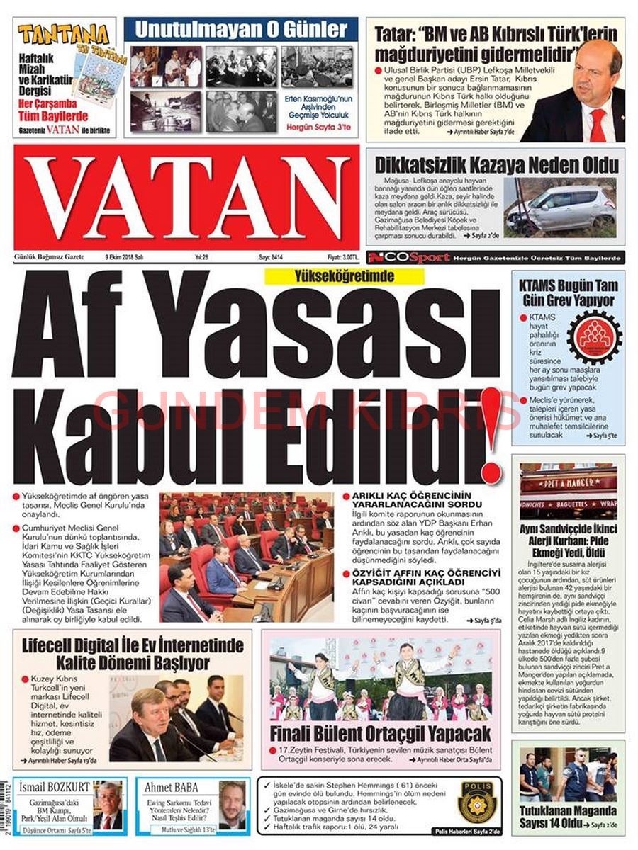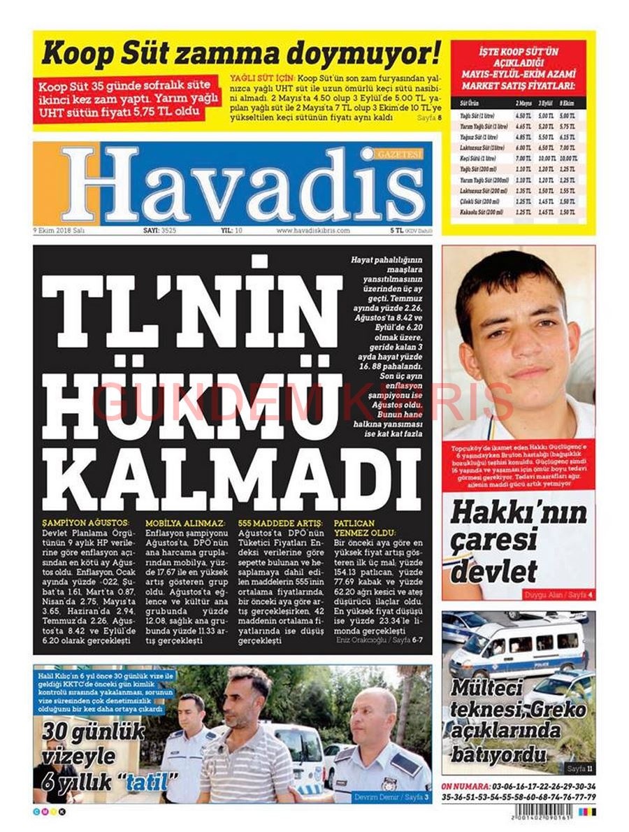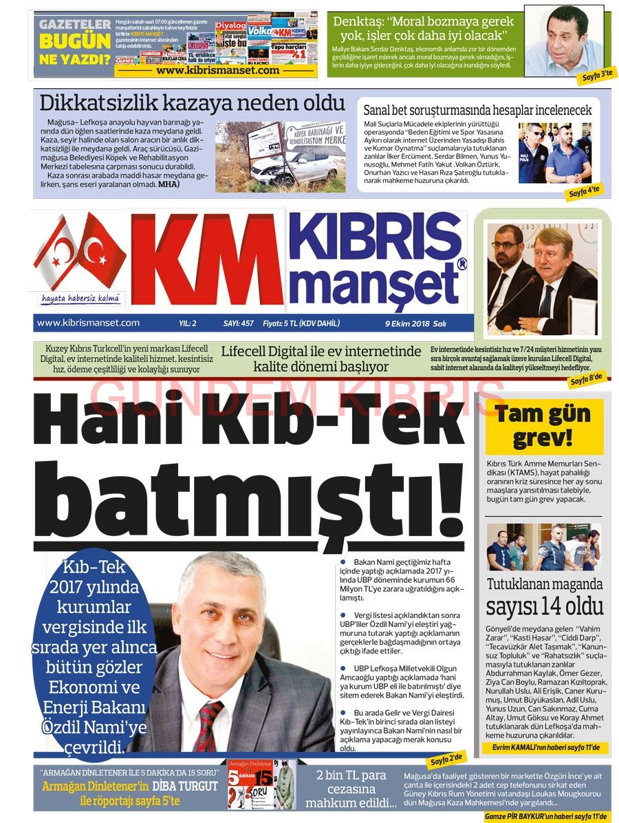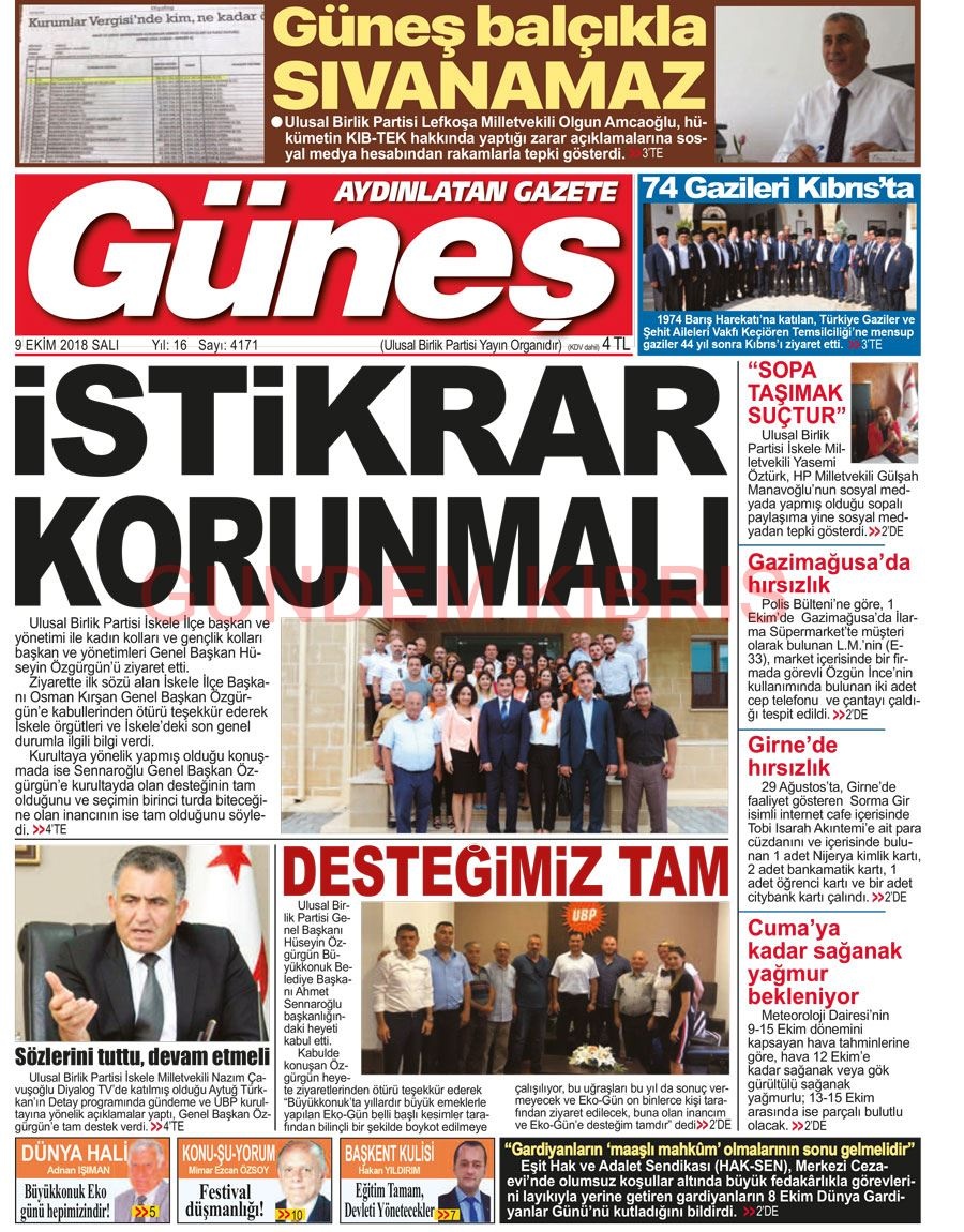KKTC Gazete Manşetleri 9 Ekim 2018