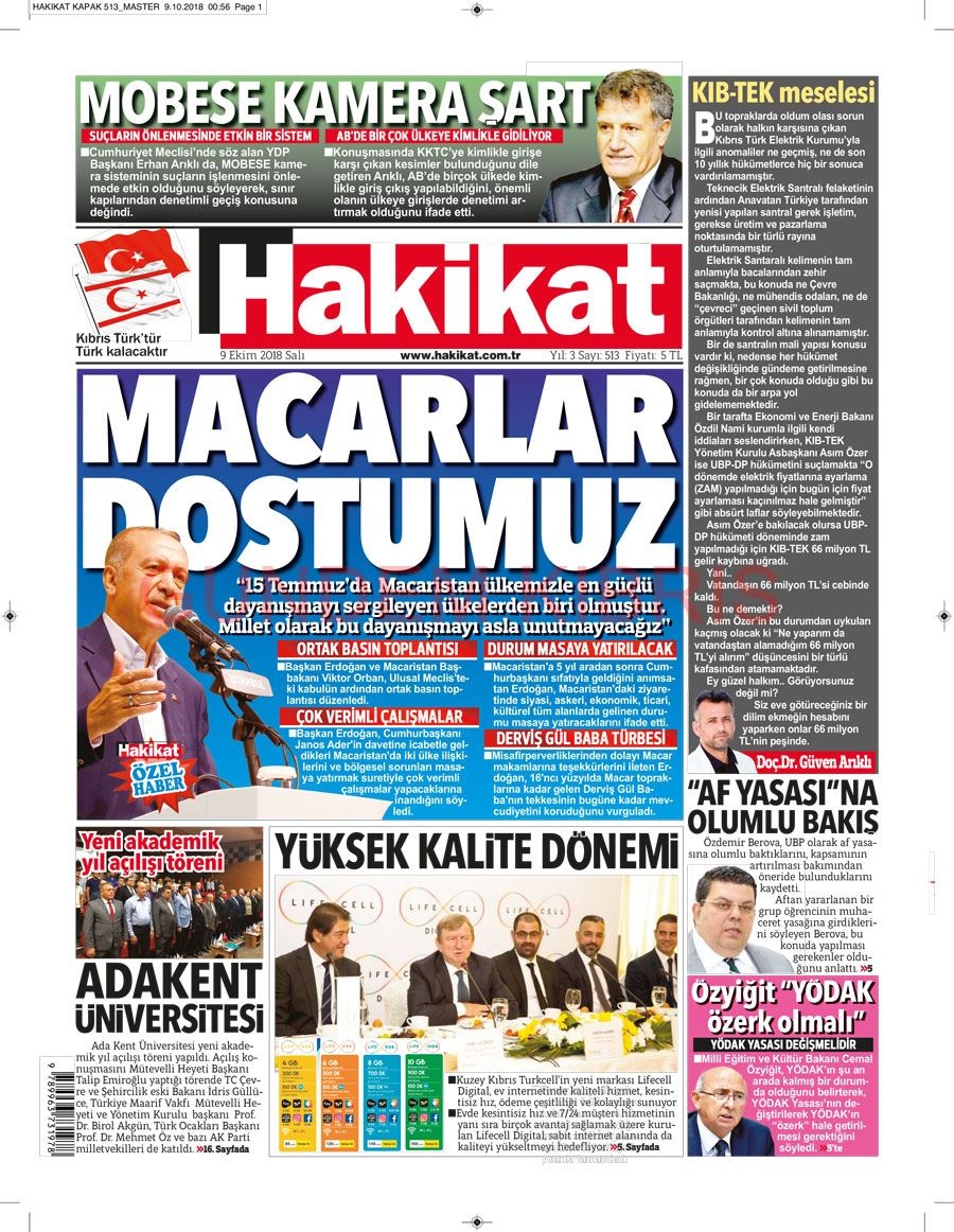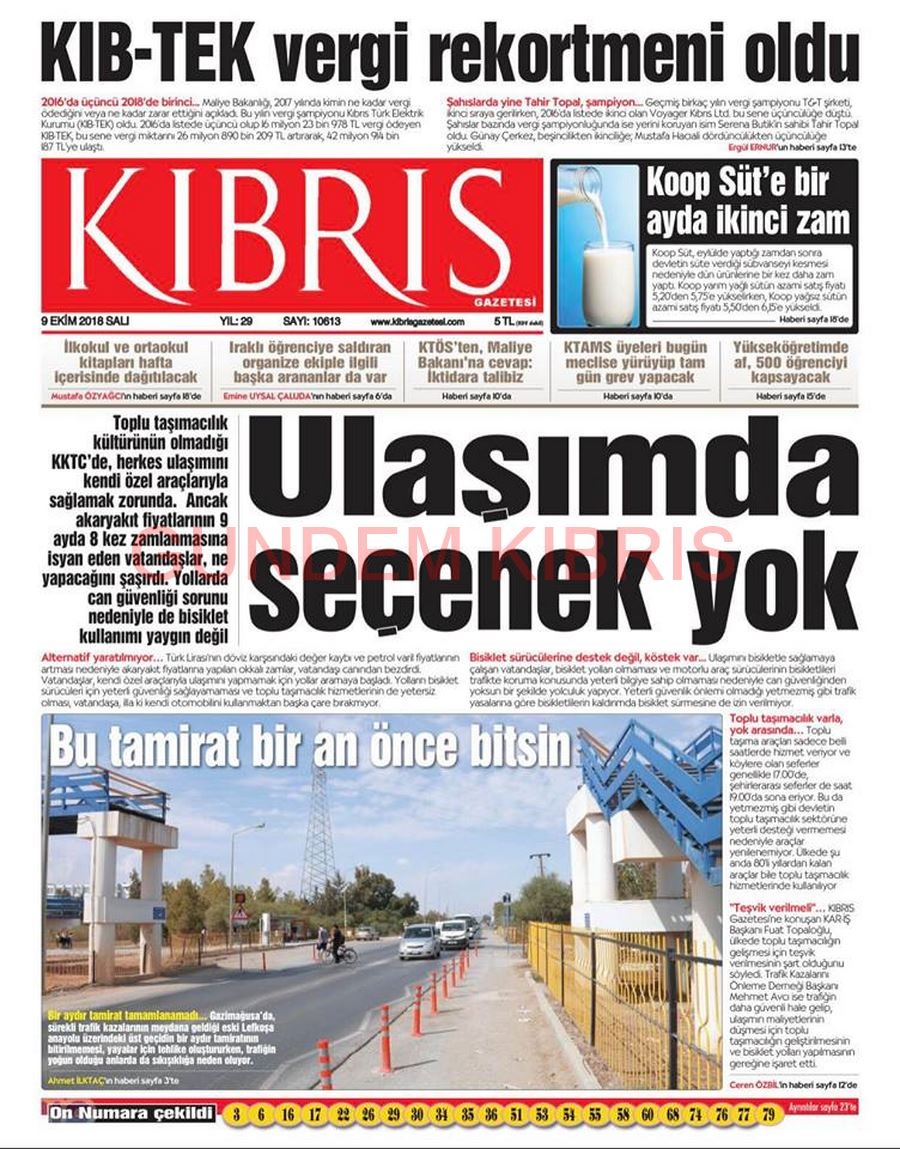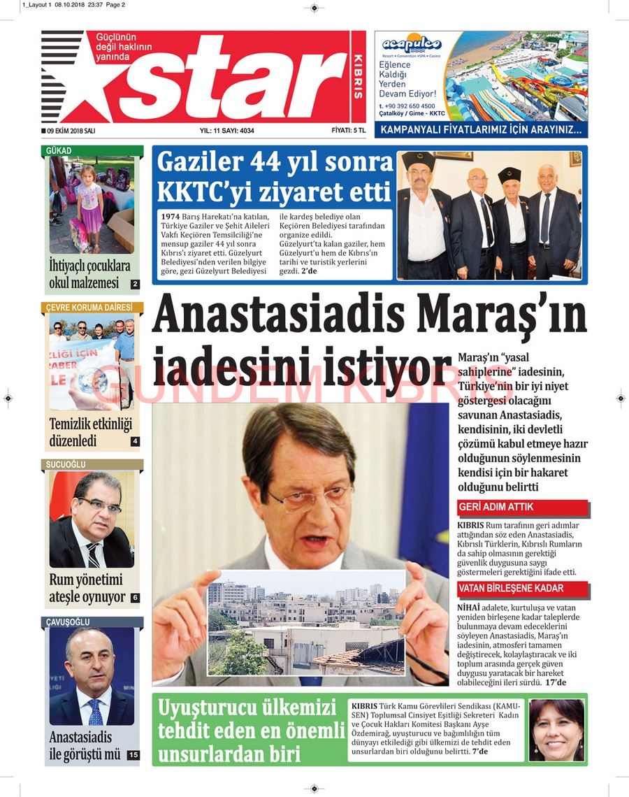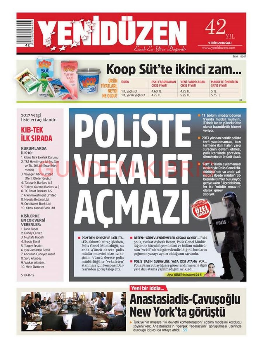 KKTC Gazete Manşetleri 9 Ekim 2018