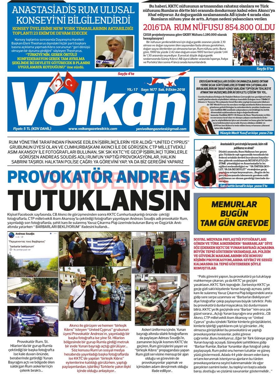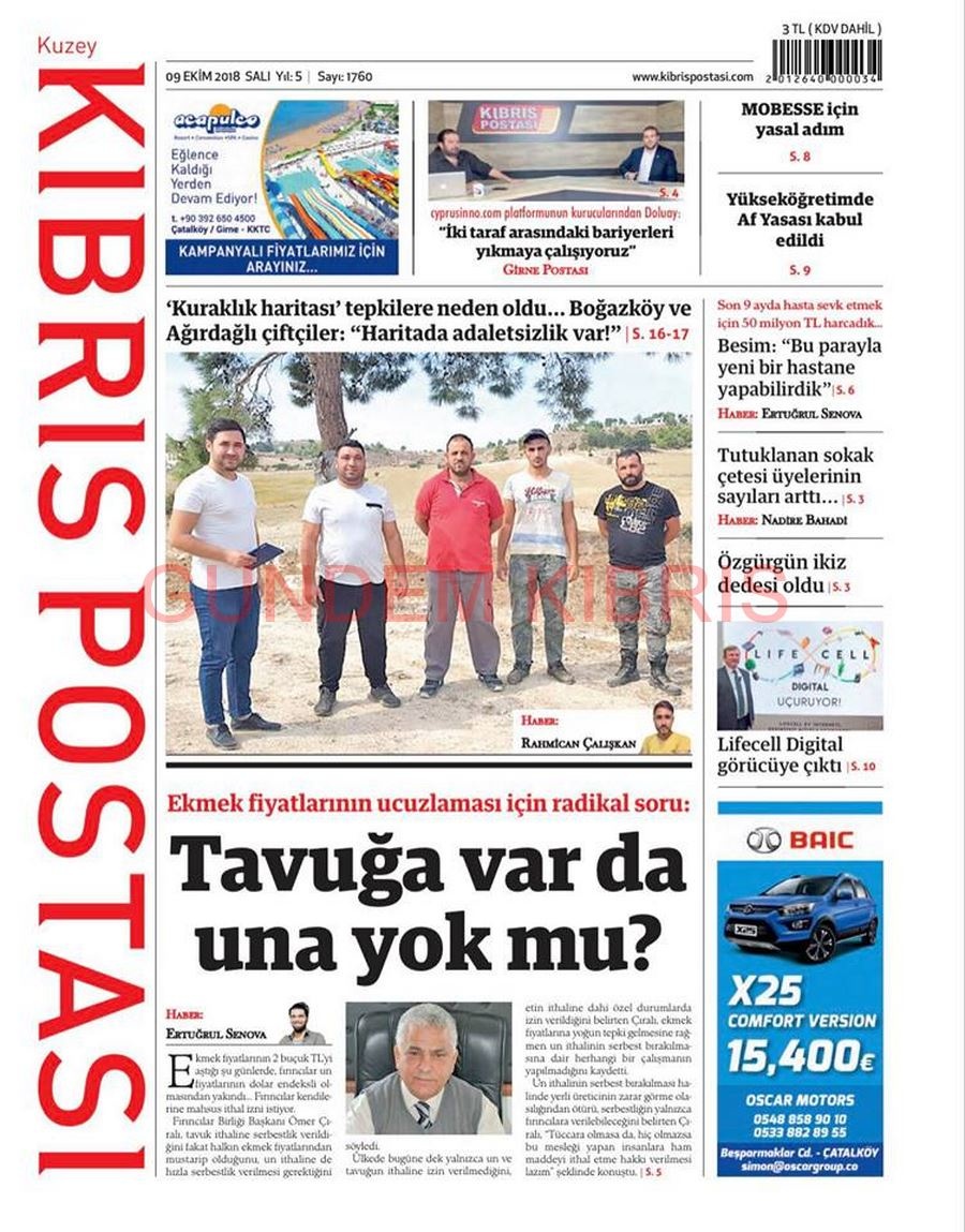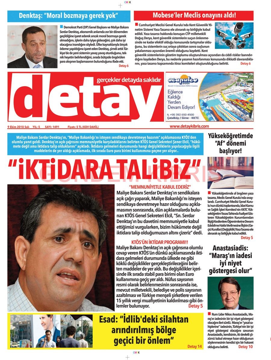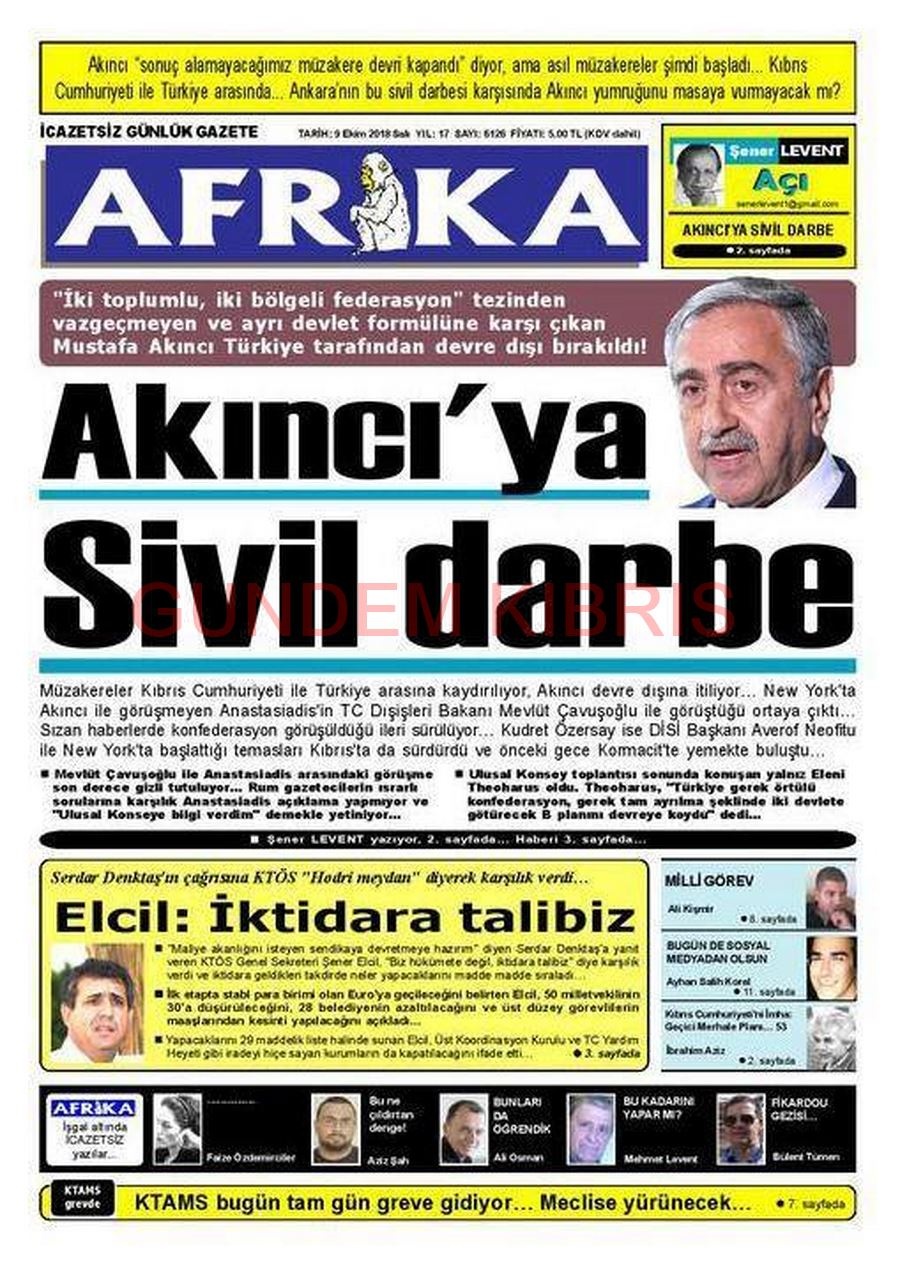 KKTC Gazete Manşetleri 9 Ekim 2018
