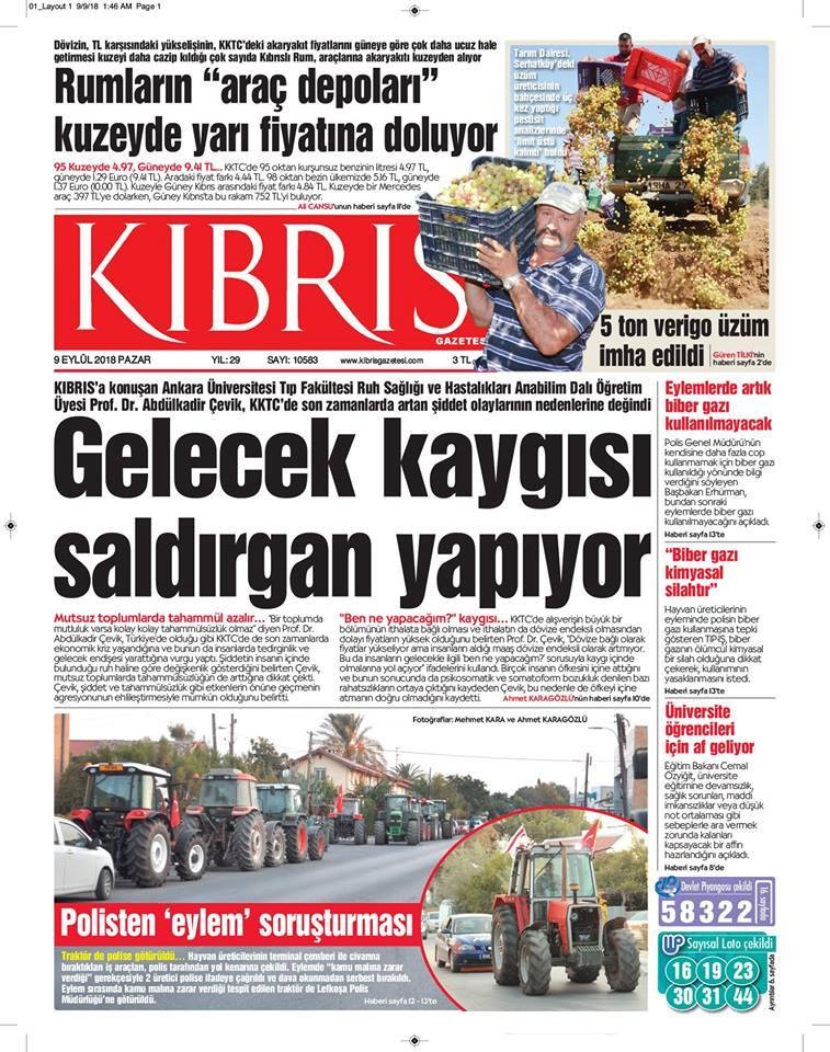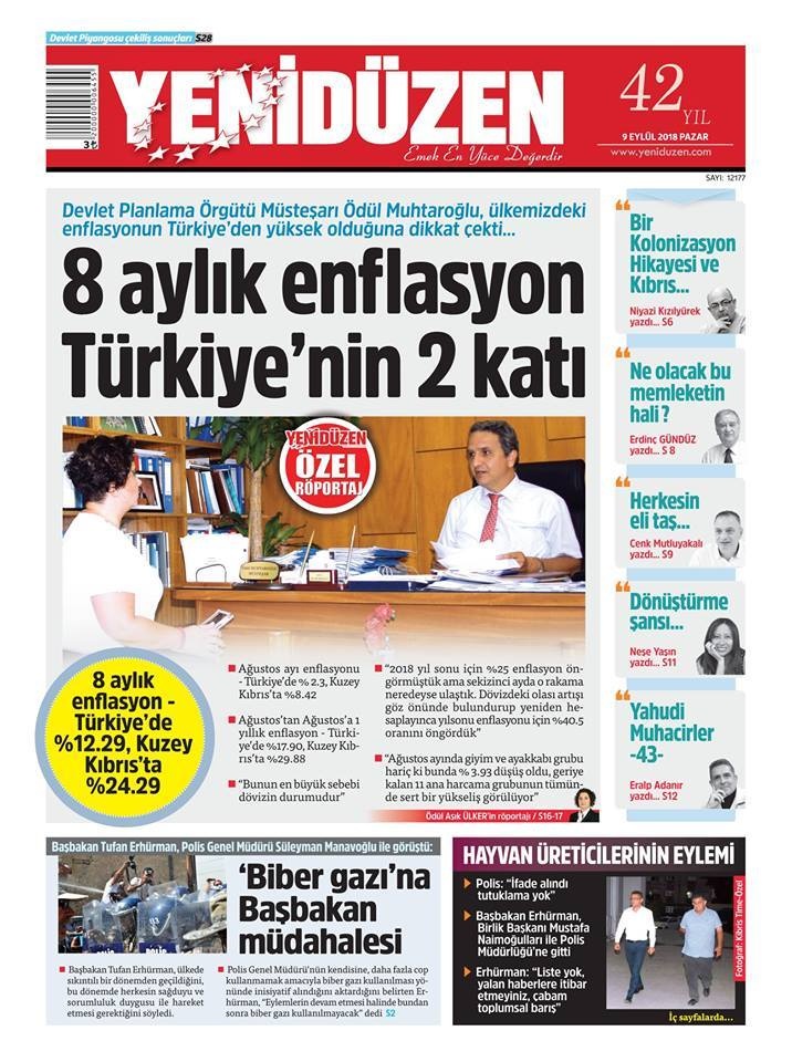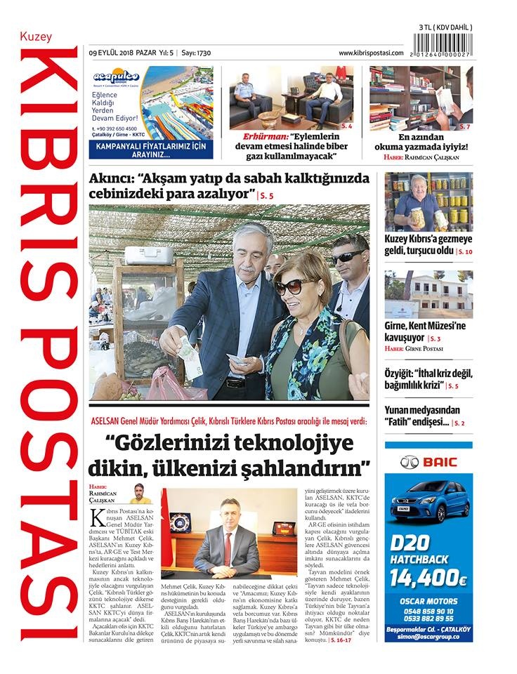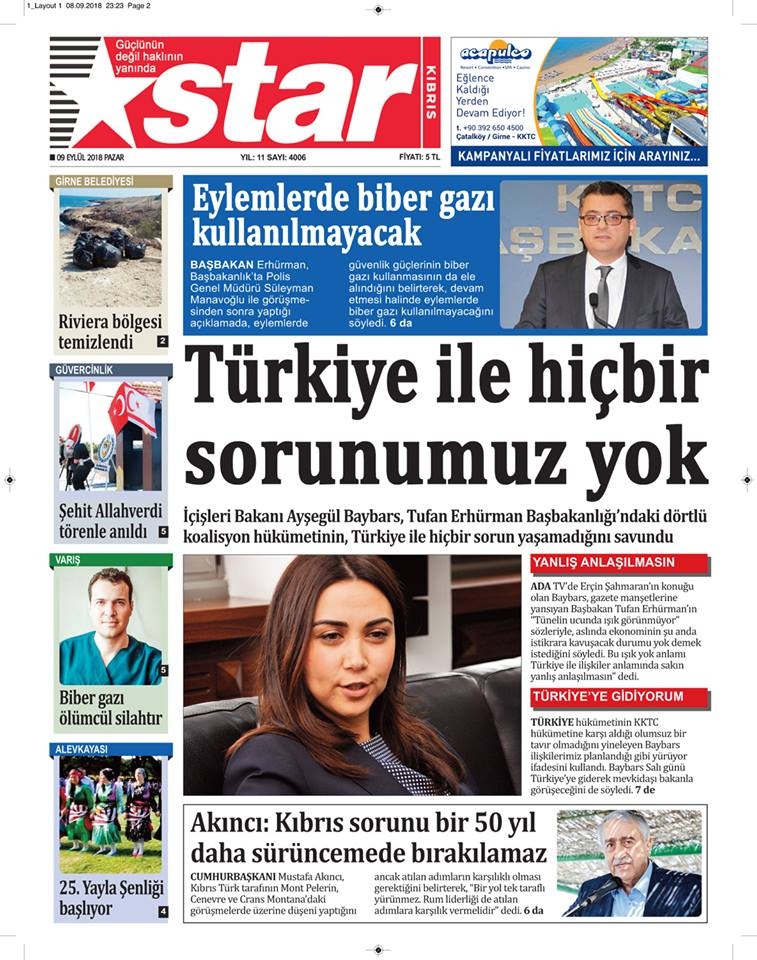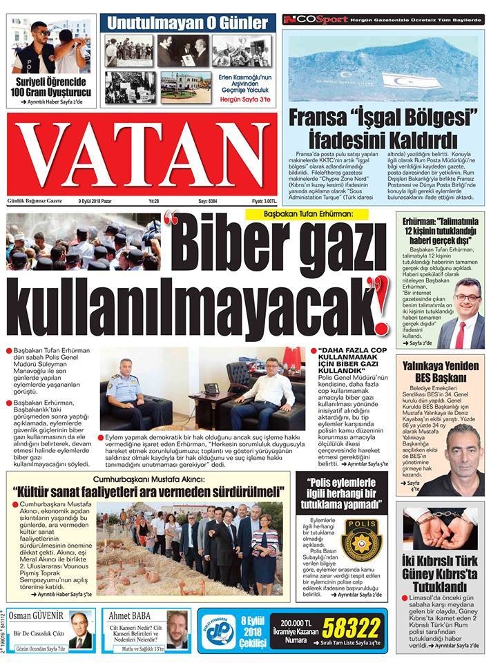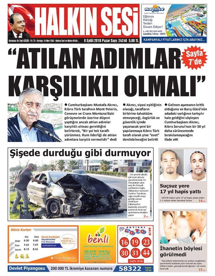 KKTC Gazete Manşetleri 9 Eylül 2018
