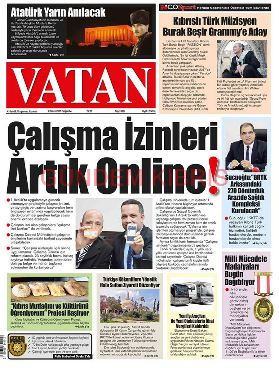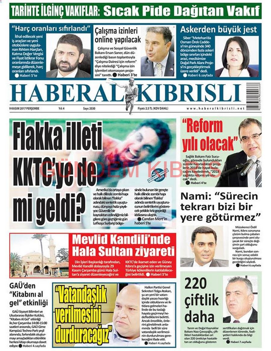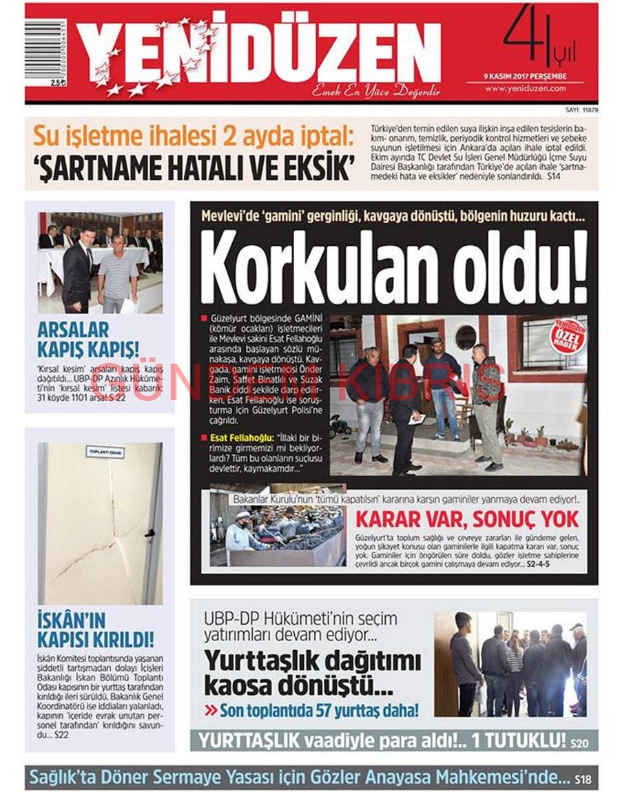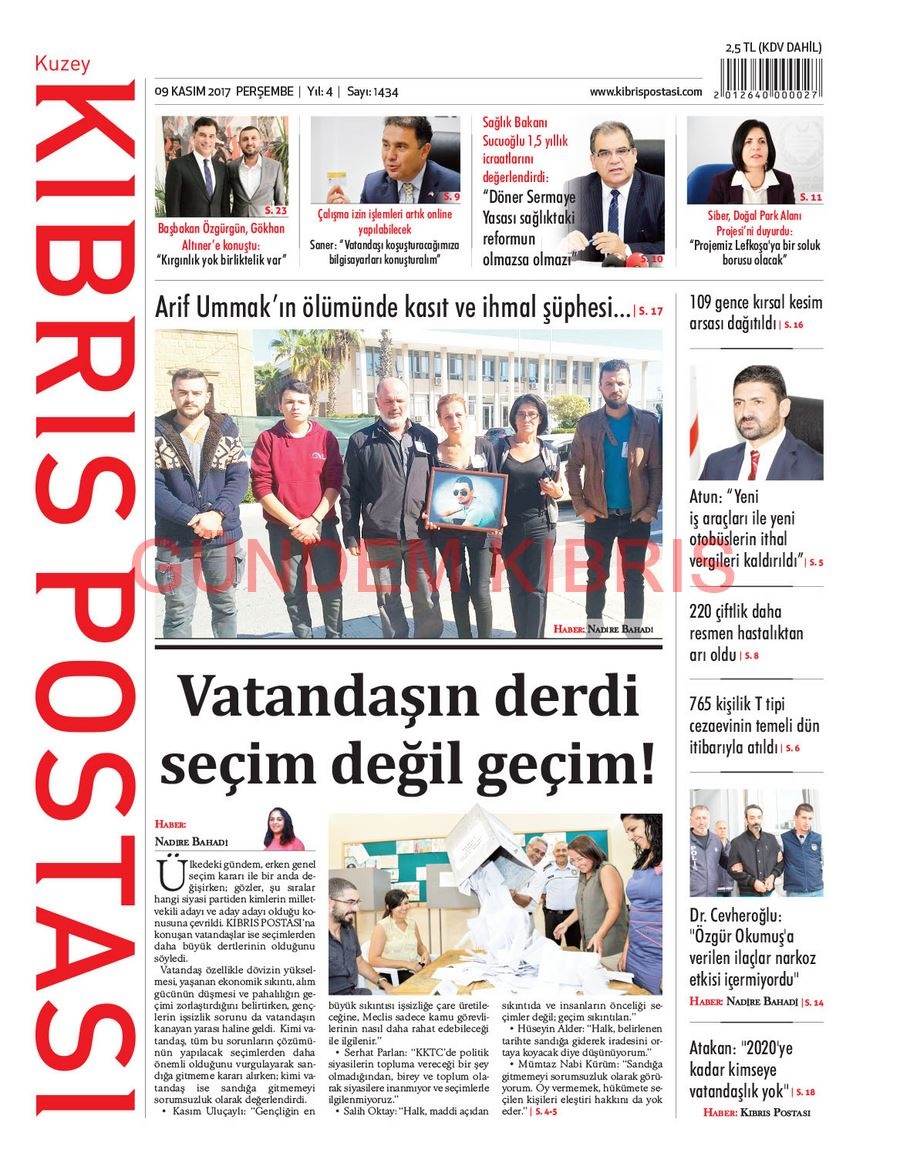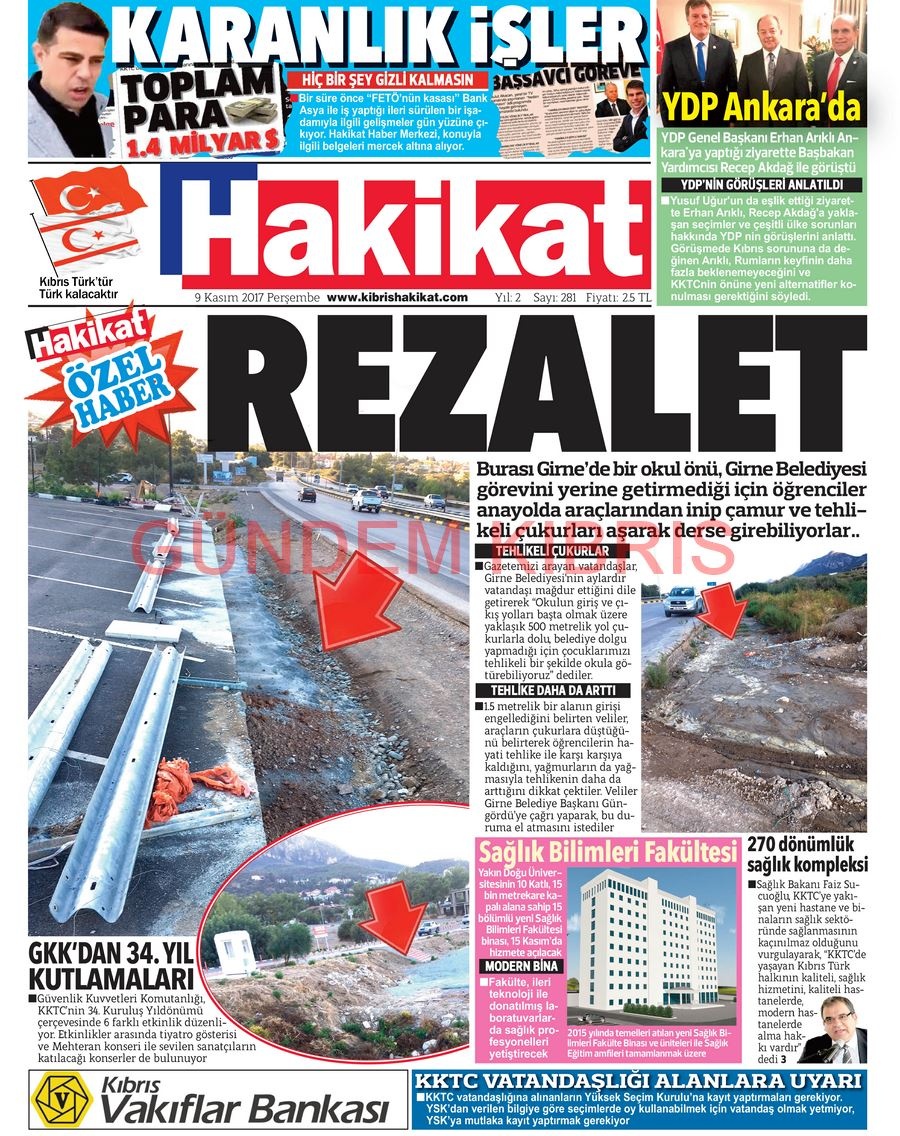 KKTC Gazete Manşetleri 9 Kasım 2017