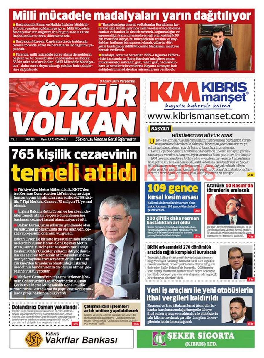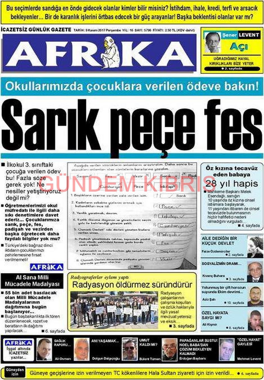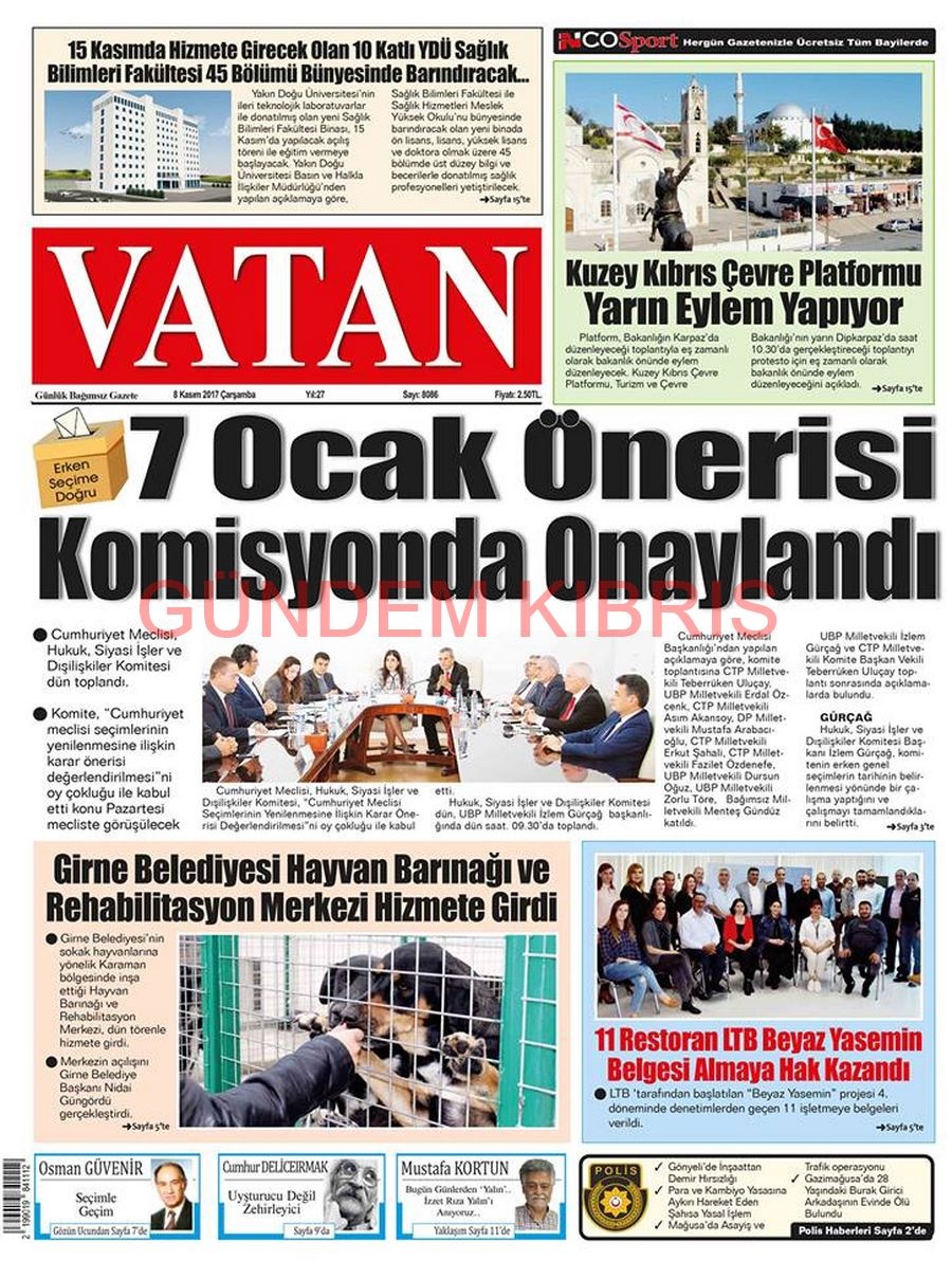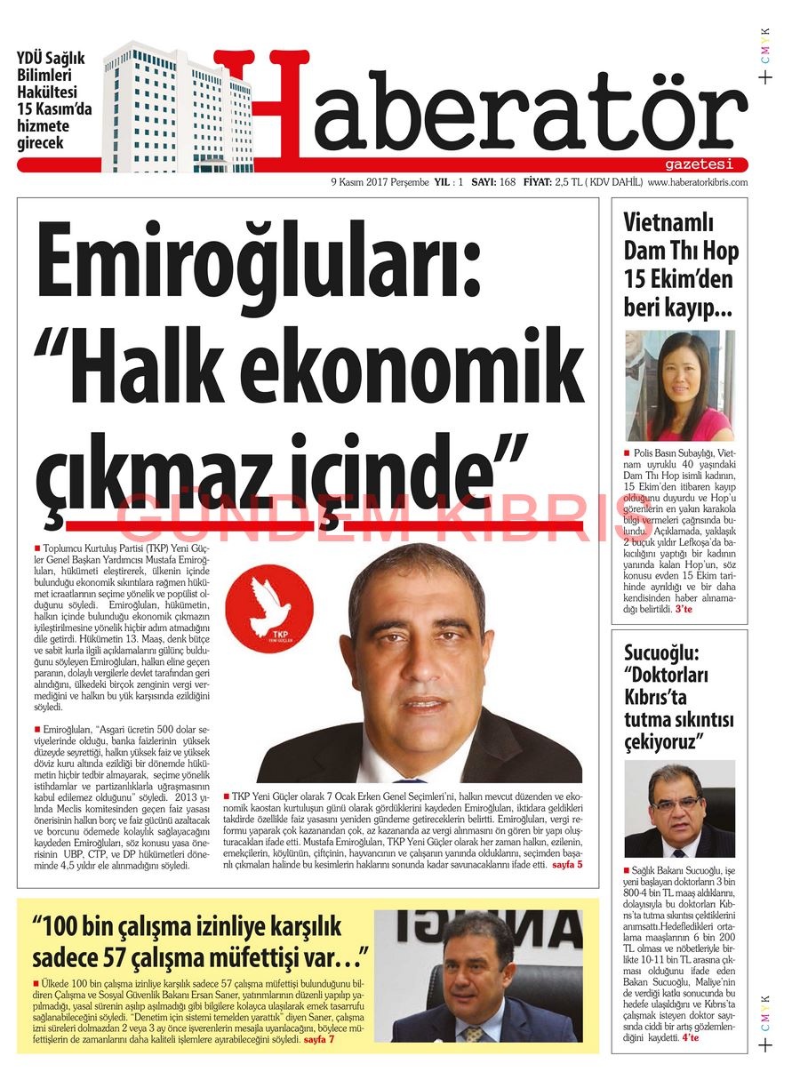 KKTC Gazete Manşetleri 9 Kasım 2017