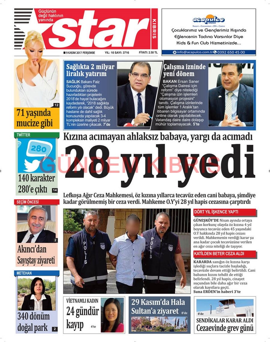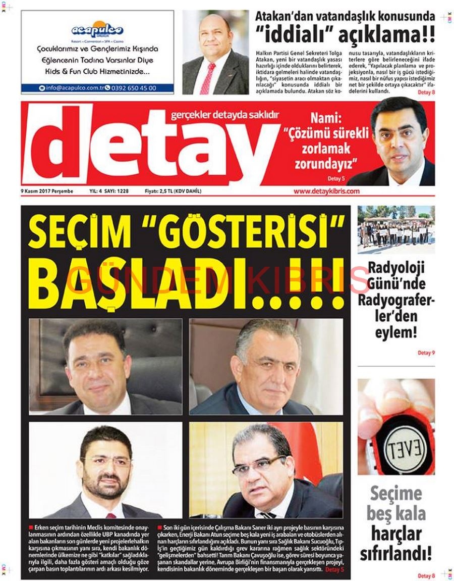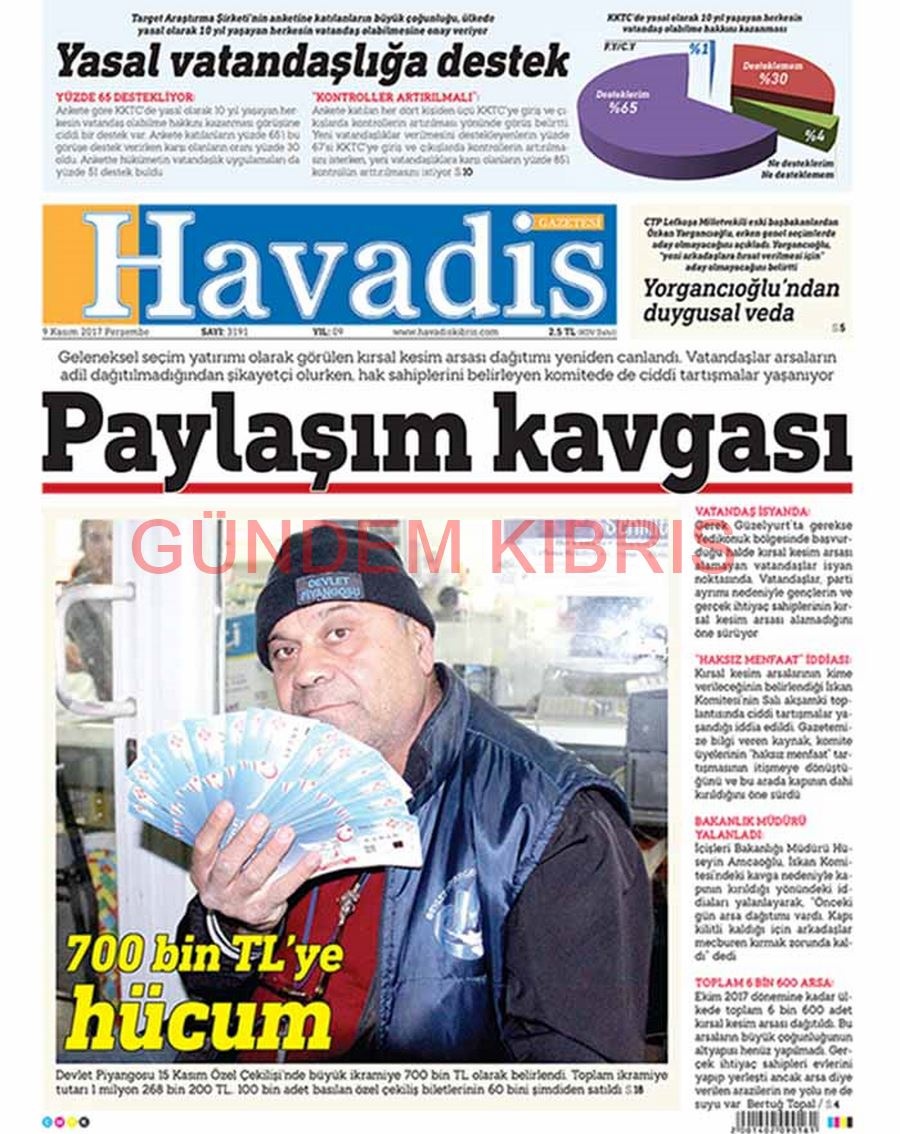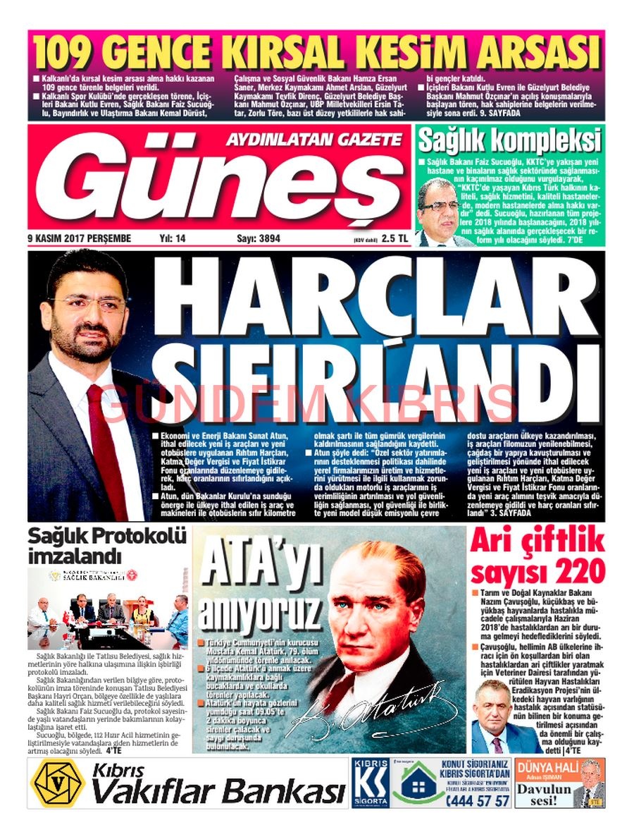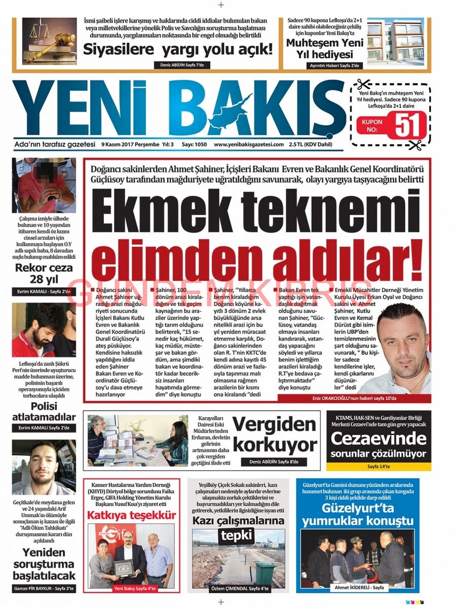 KKTC Gazete Manşetleri 9 Kasım 2017