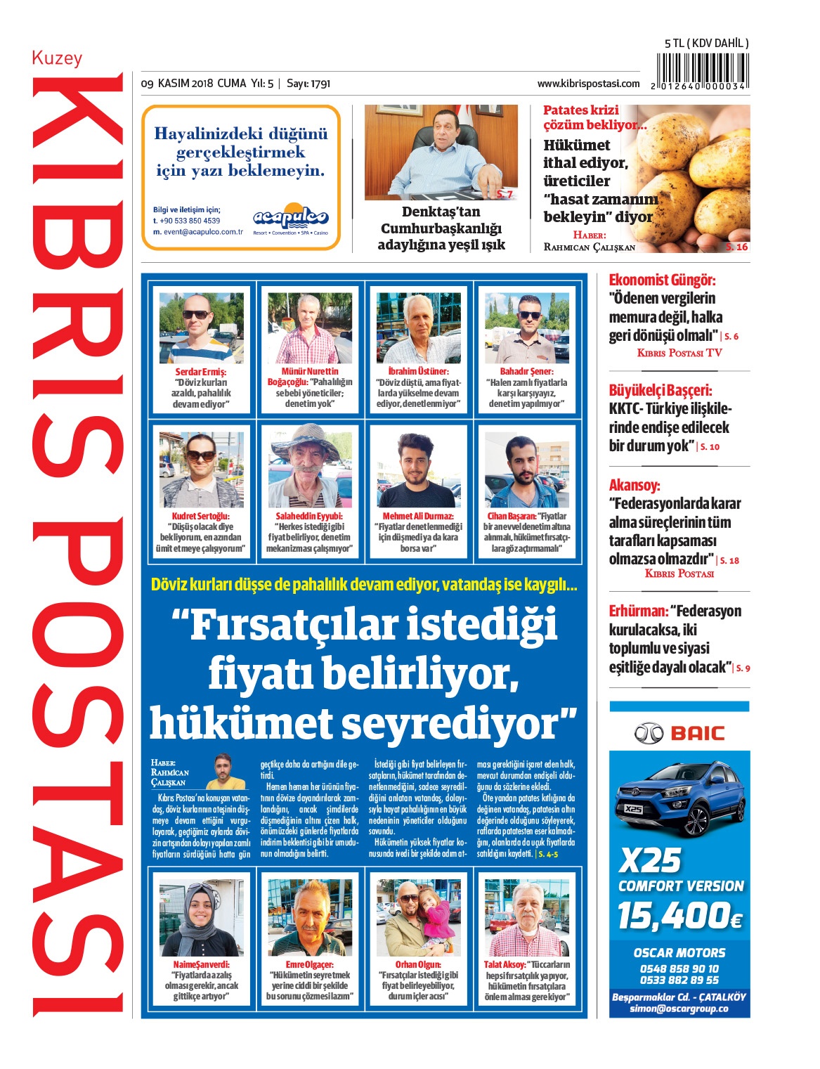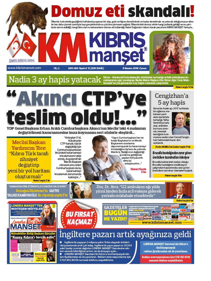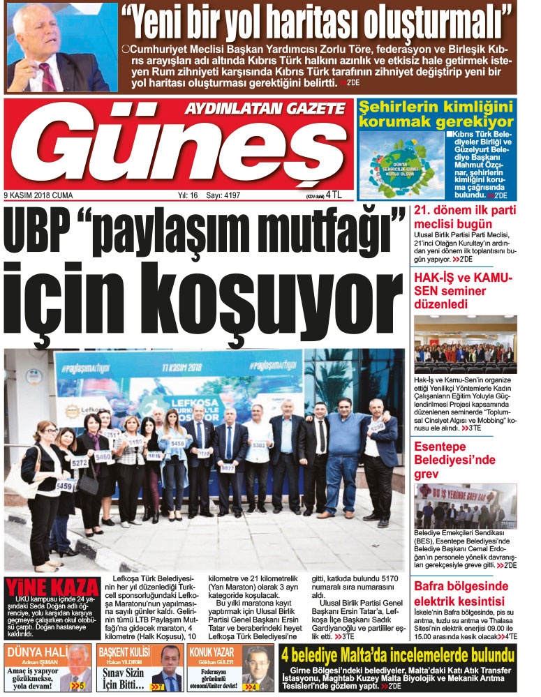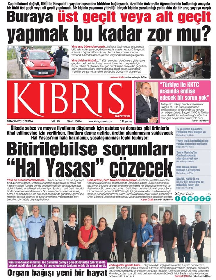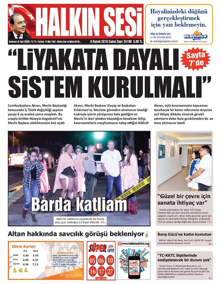 KKTC Gazete Manşetleri - 9 Kasım 2018