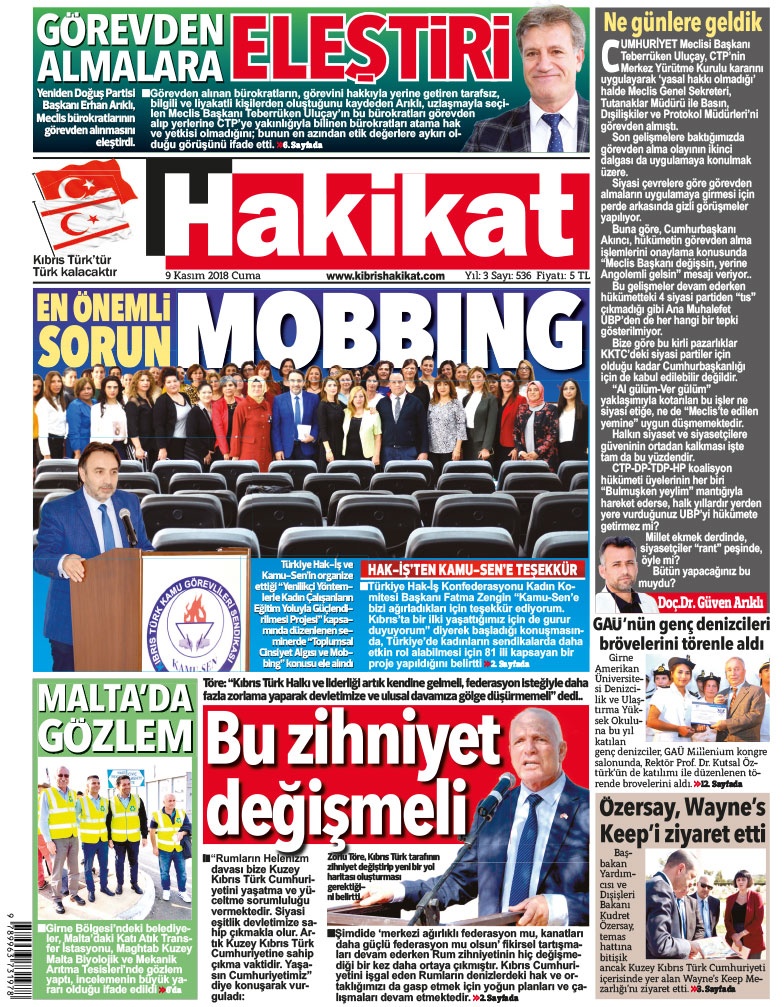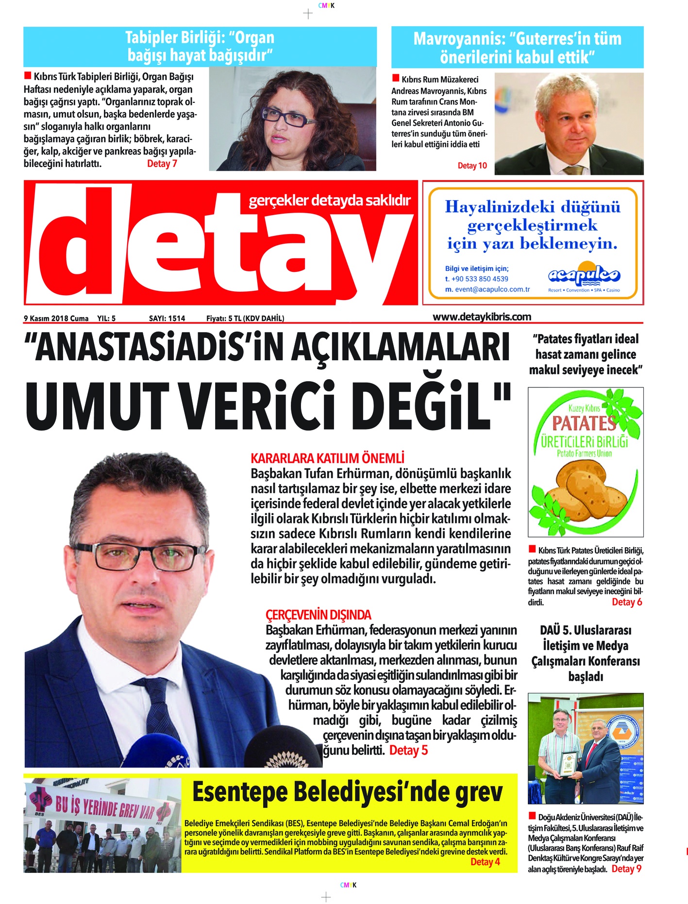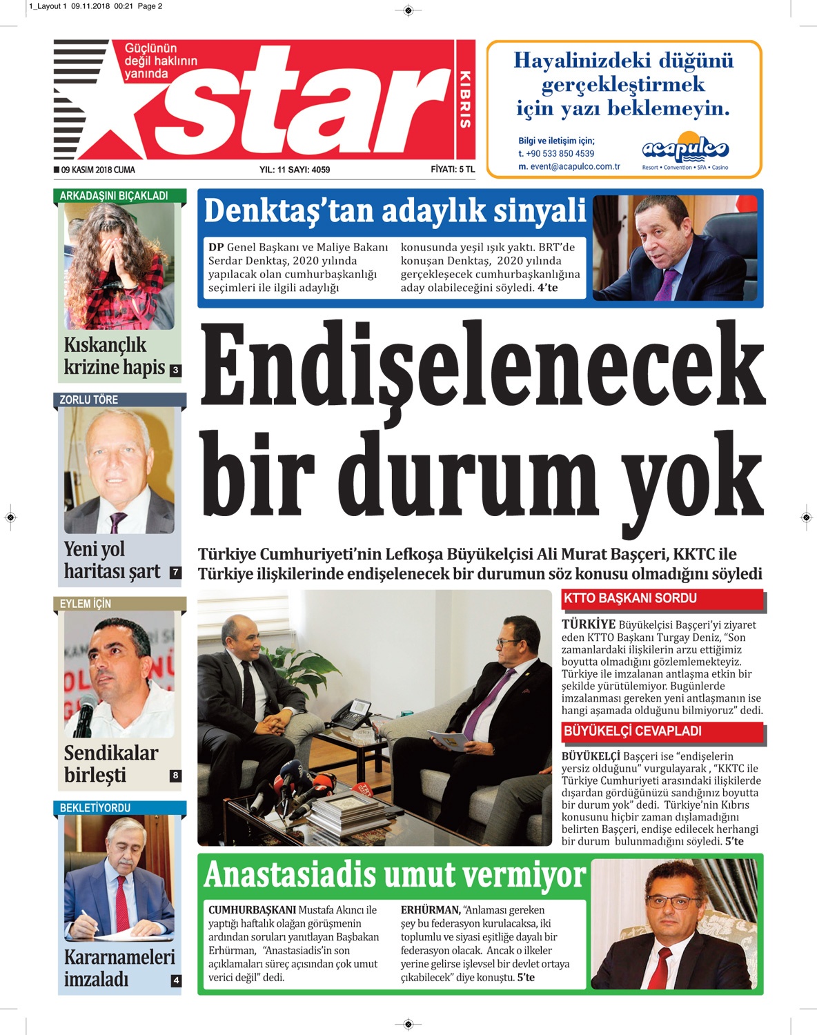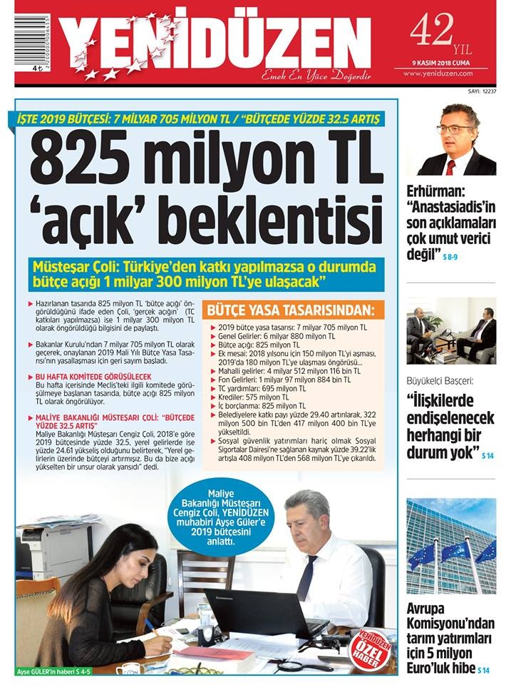 KKTC Gazete Manşetleri - 9 Kasım 2018