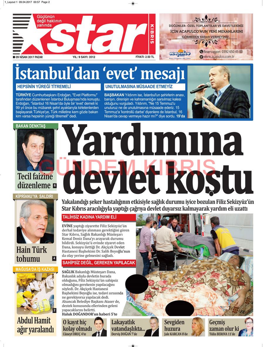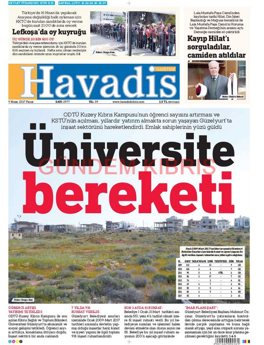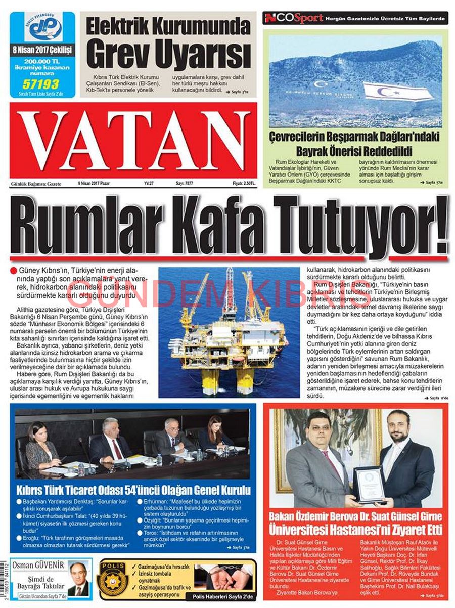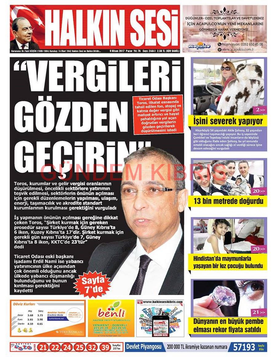 KKTC Gazete Manşetleri 9 Nisan 2017