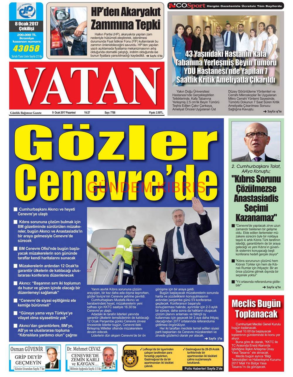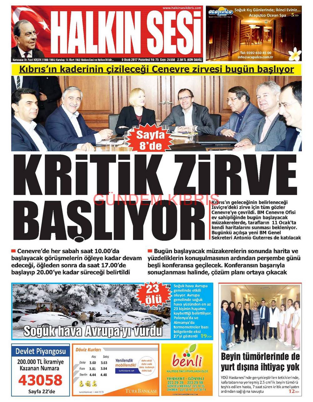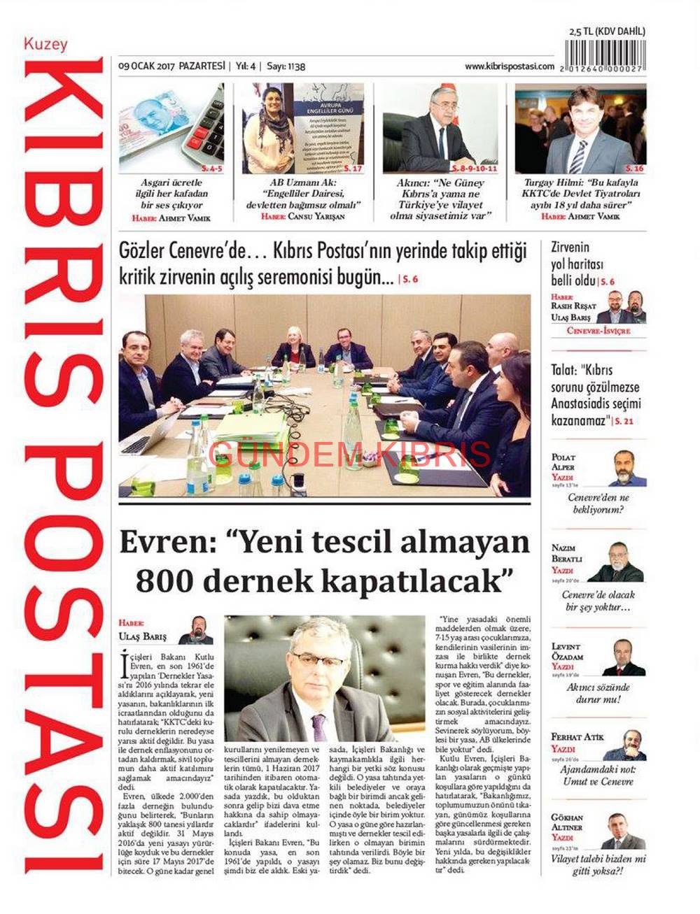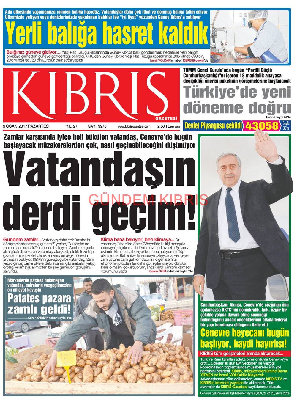 KKTC Gazete Manşetleri 9 Ocak 2017