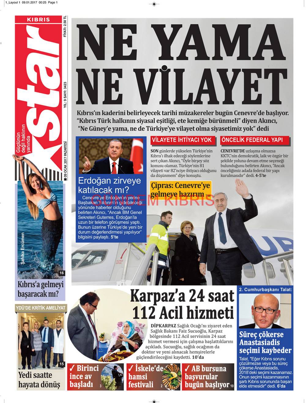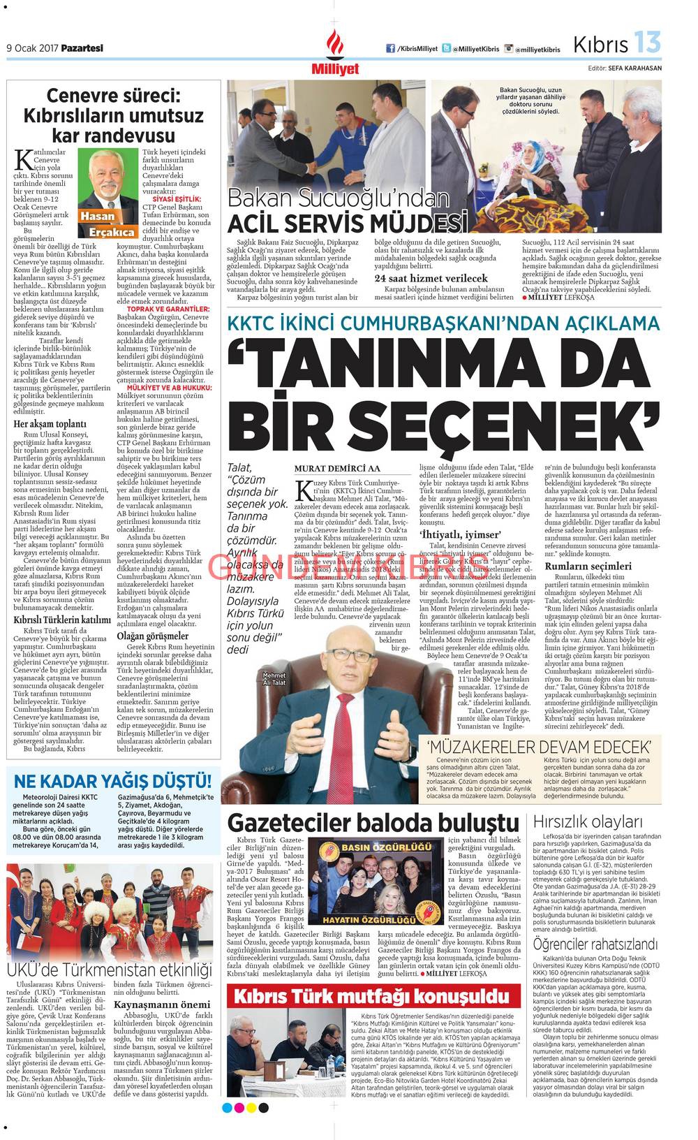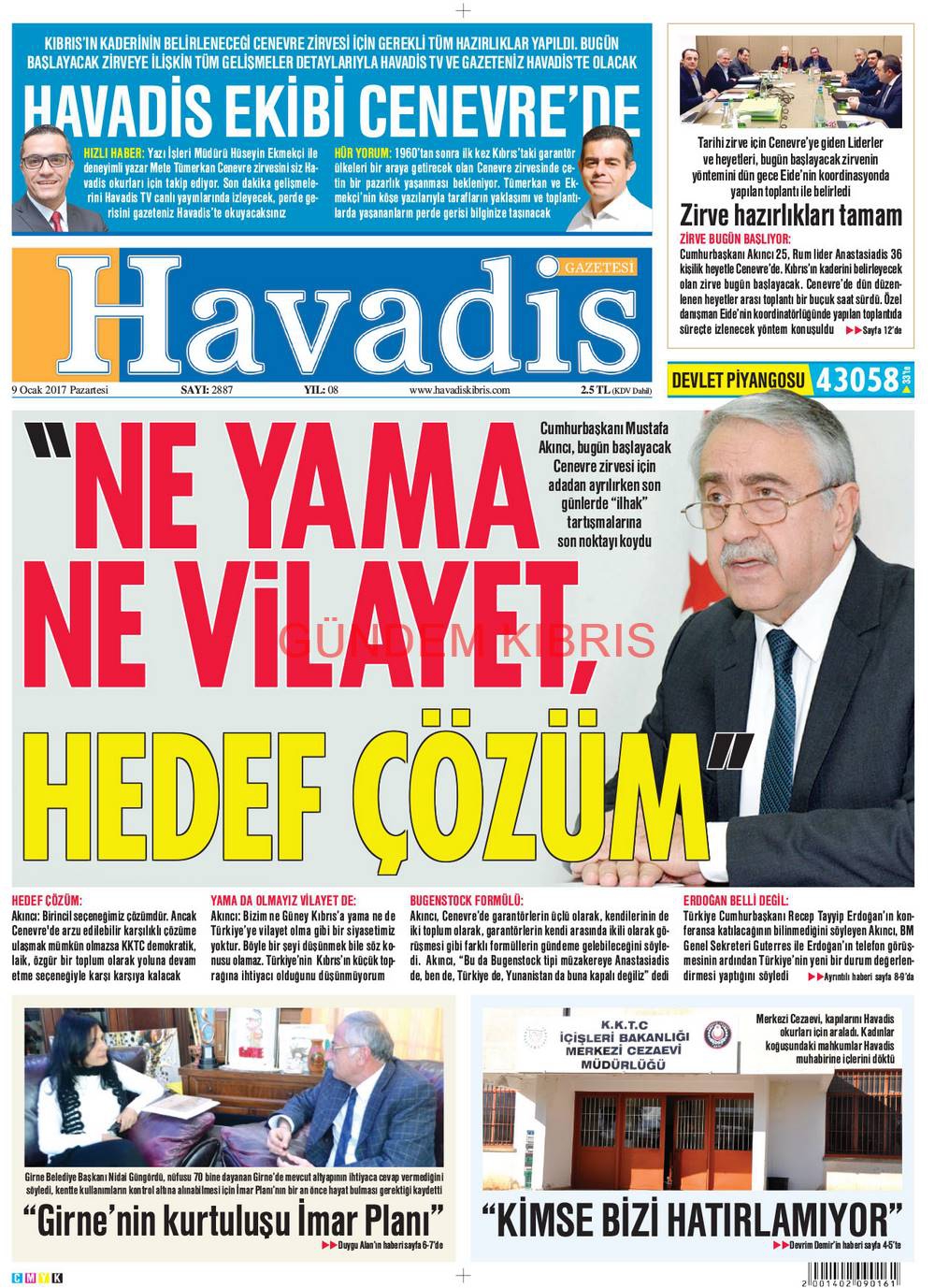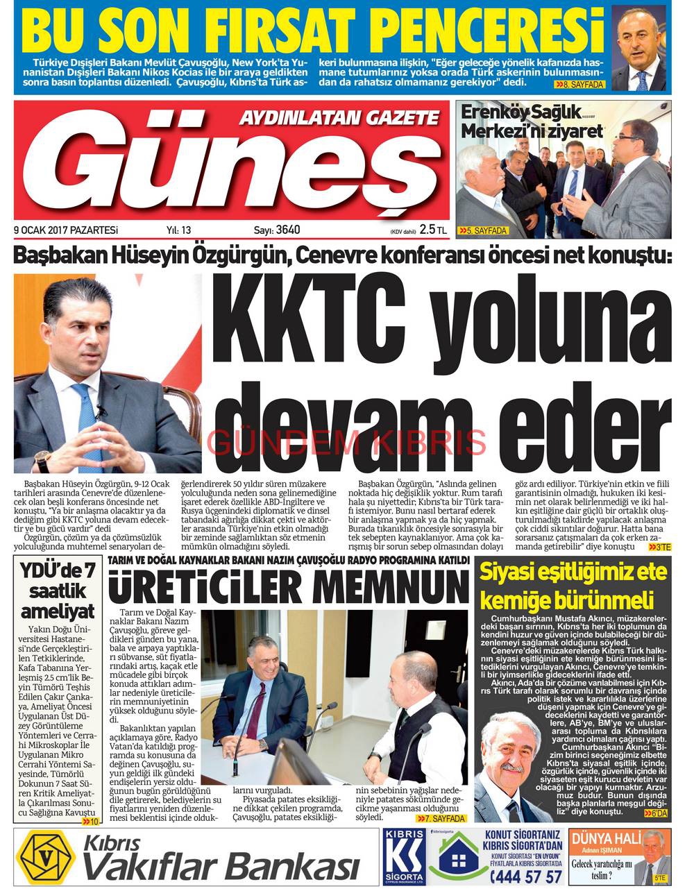 KKTC Gazete Manşetleri 9 Ocak 2017