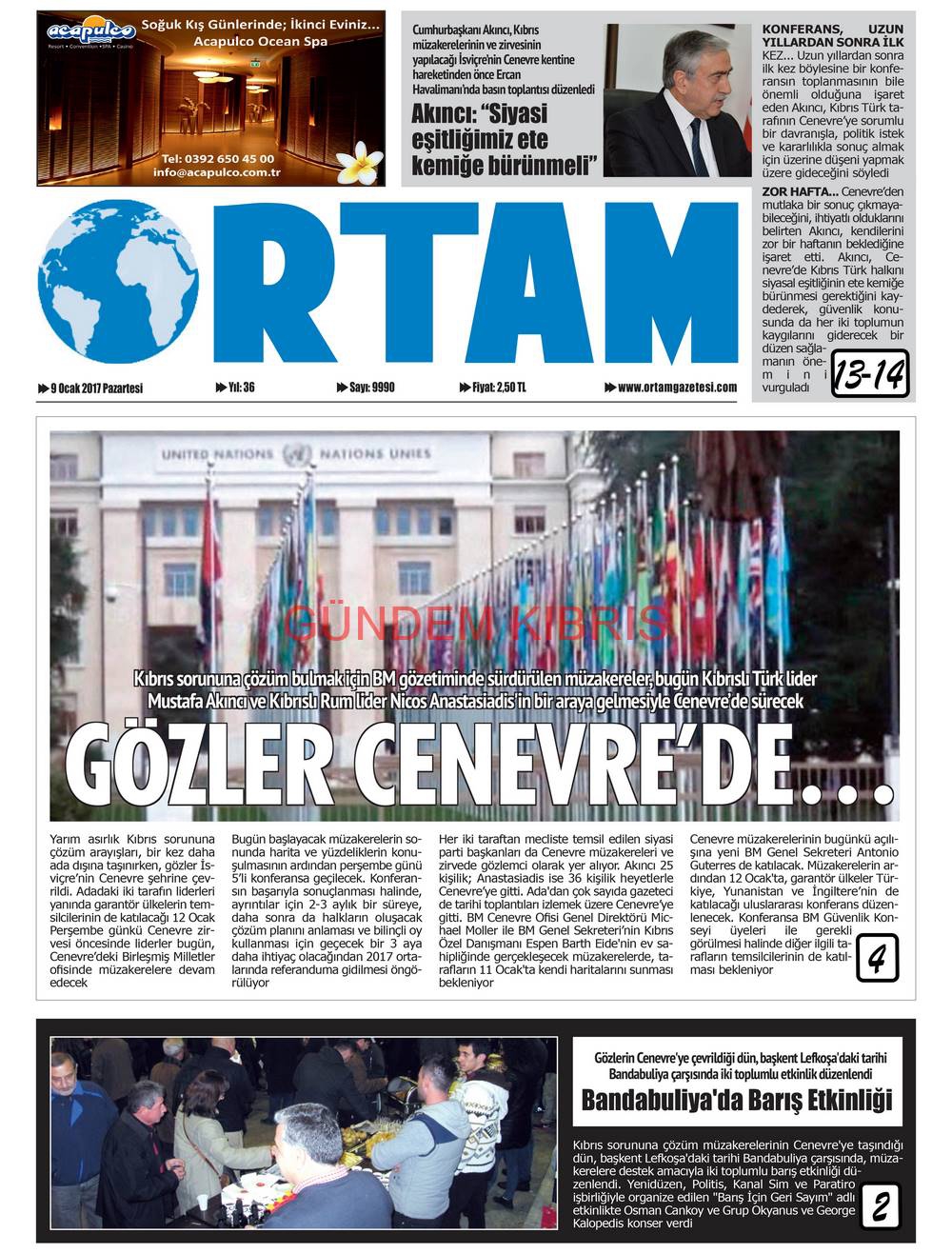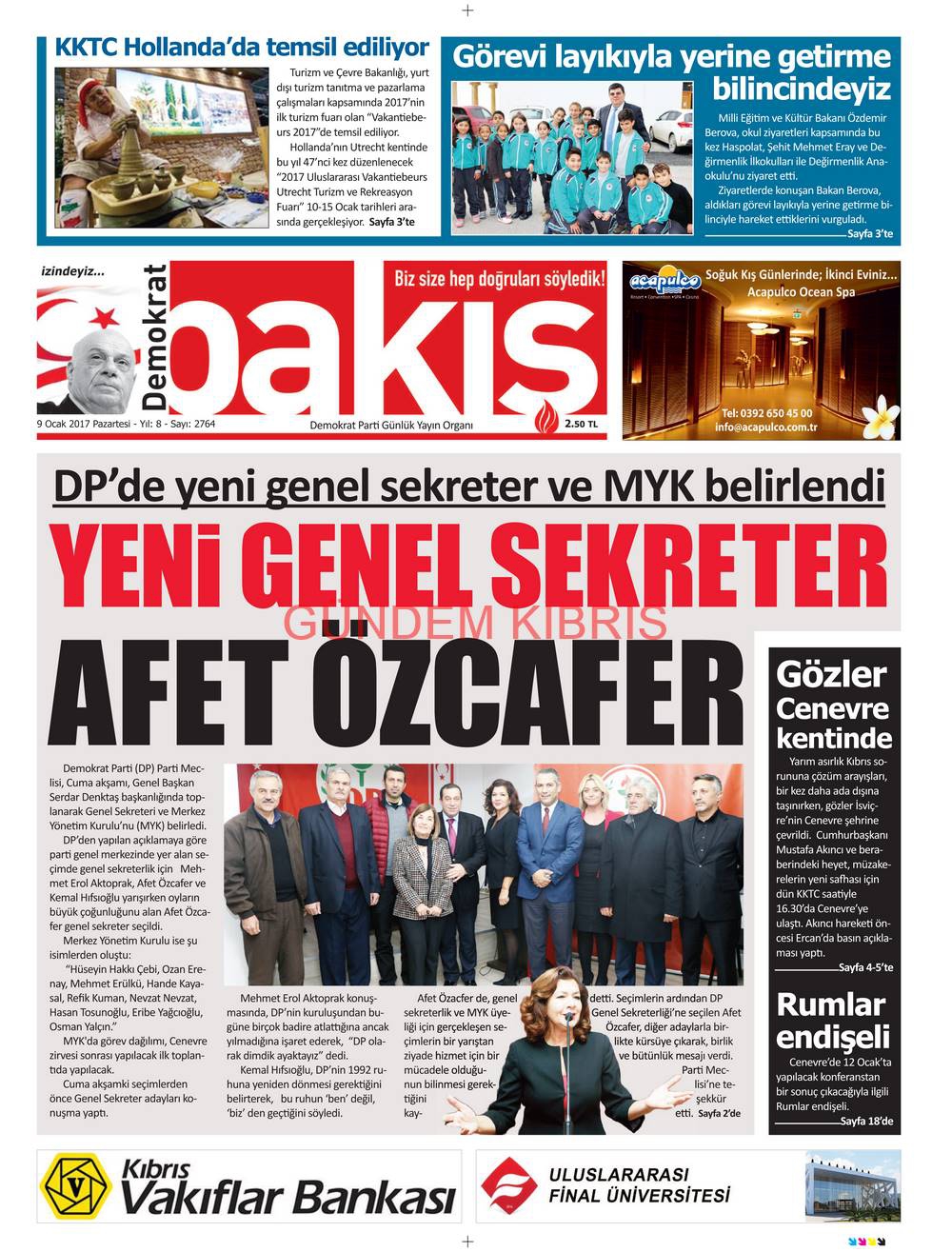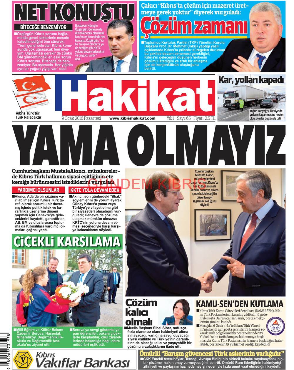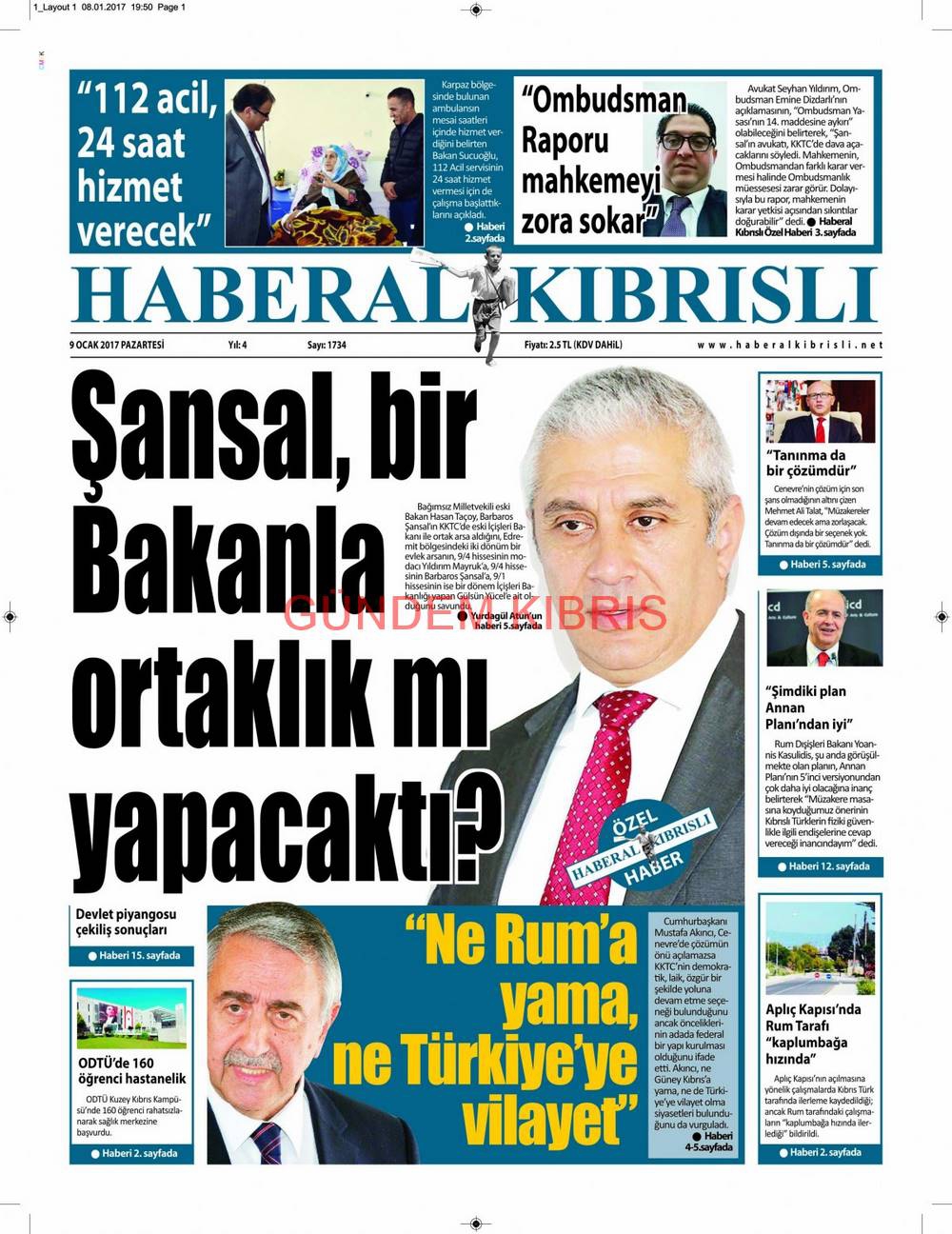 KKTC Gazete Manşetleri 9 Ocak 2017