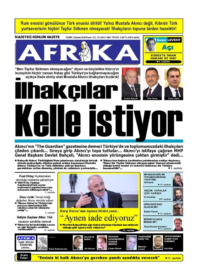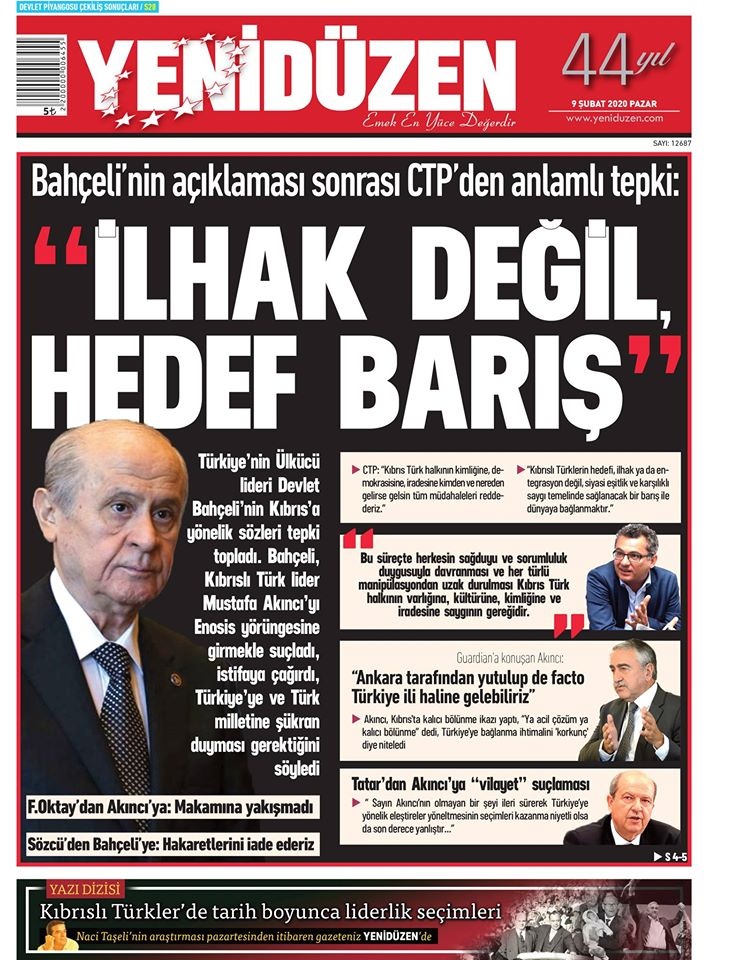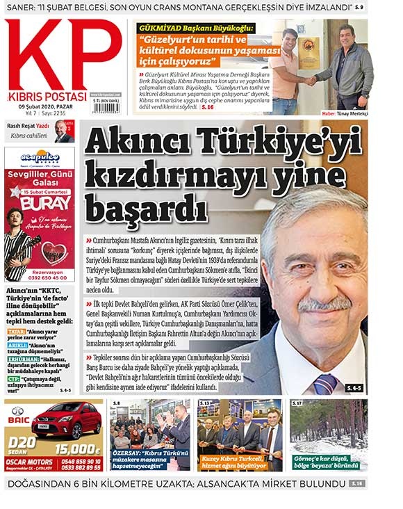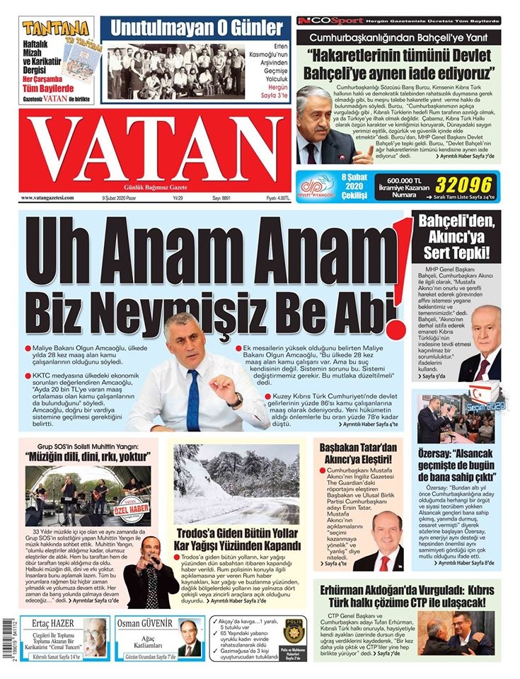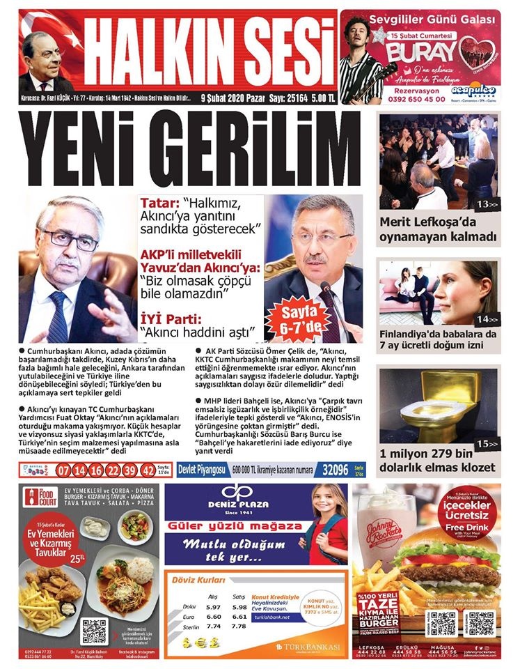 KKTC Gazete Manşetleri - 9 Şubat 2020