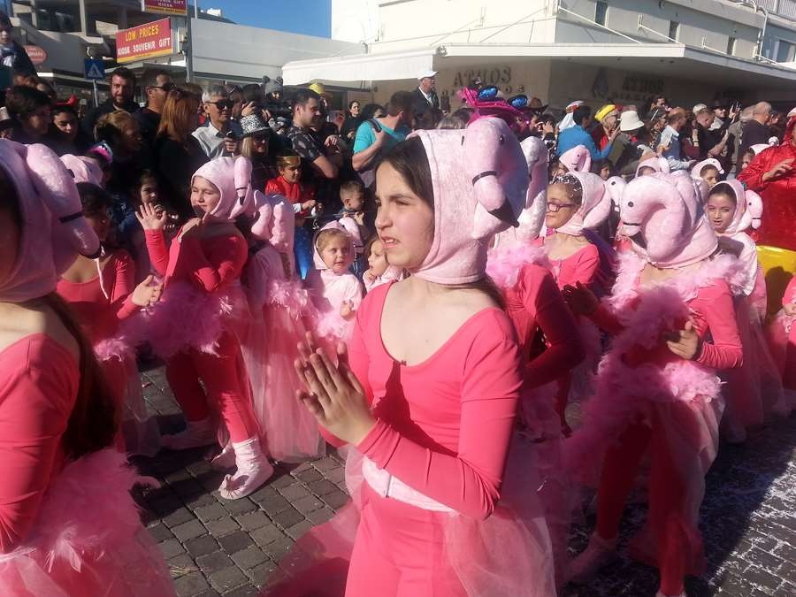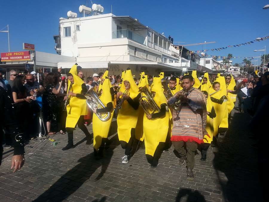 Limasol’daki büyük karnaval yürüyüşü kadar olmasa da, Avrupa’nın kültür başşehri Baf da karnaval kültürünü yaşadı.