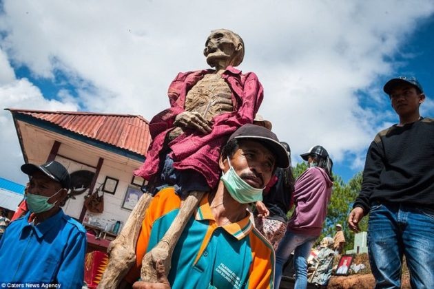 Ölülerini formaldehitle koruyan halk, yıllık ritüeli gerçekleştirmek için ölen yakınlarına elbise giydirip köyde dolaştırıyor.