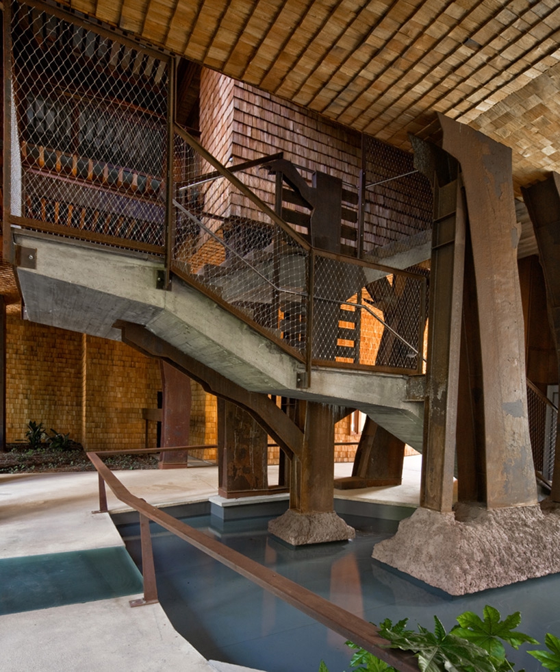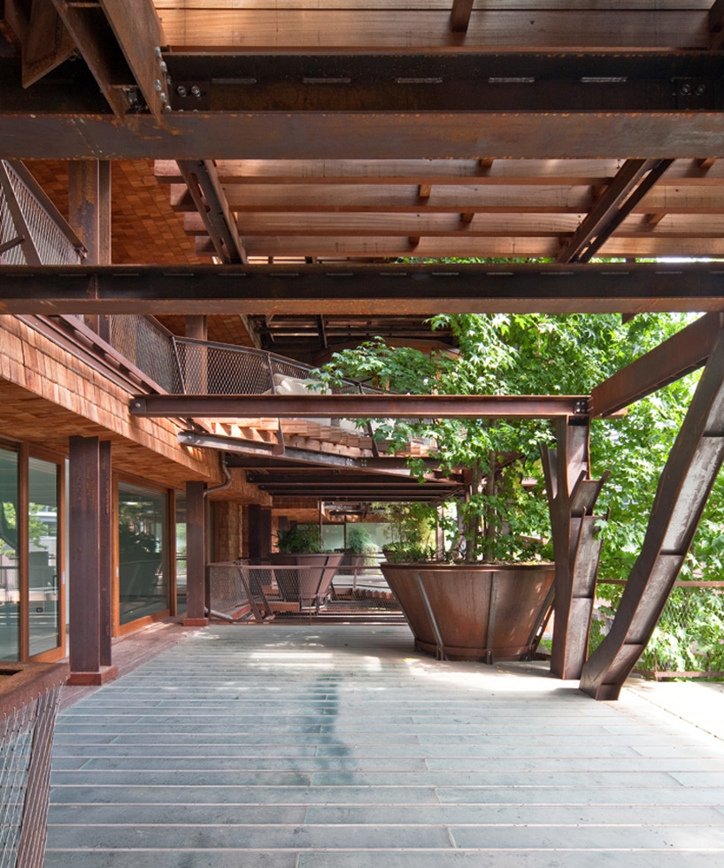 2012 yılında tamamlanan binanın avlu ve teras alanlarında bulunan göletler, yaz aylarında tam anlamıyla gölgelik kaçamakları için tasarlanmış.
