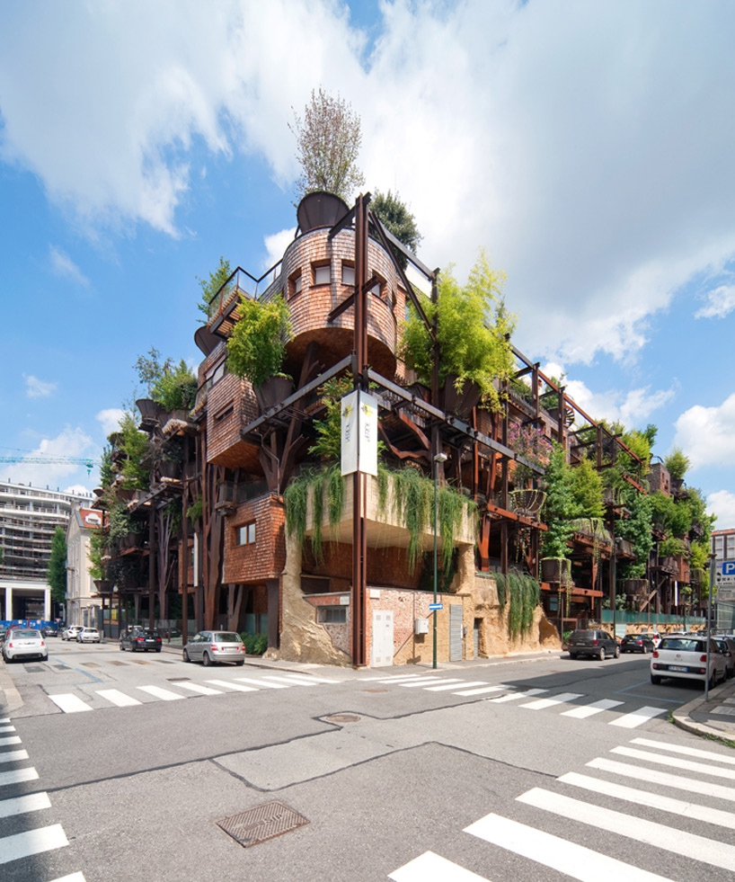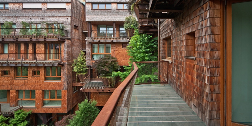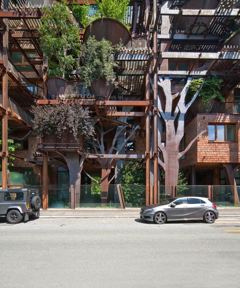 Apartman sakinlerinin hava ve gürültü kirliliğinden koruyan bu bina çelik konstrüksiyon ve doğal malzemelerle inşa edilmiş.